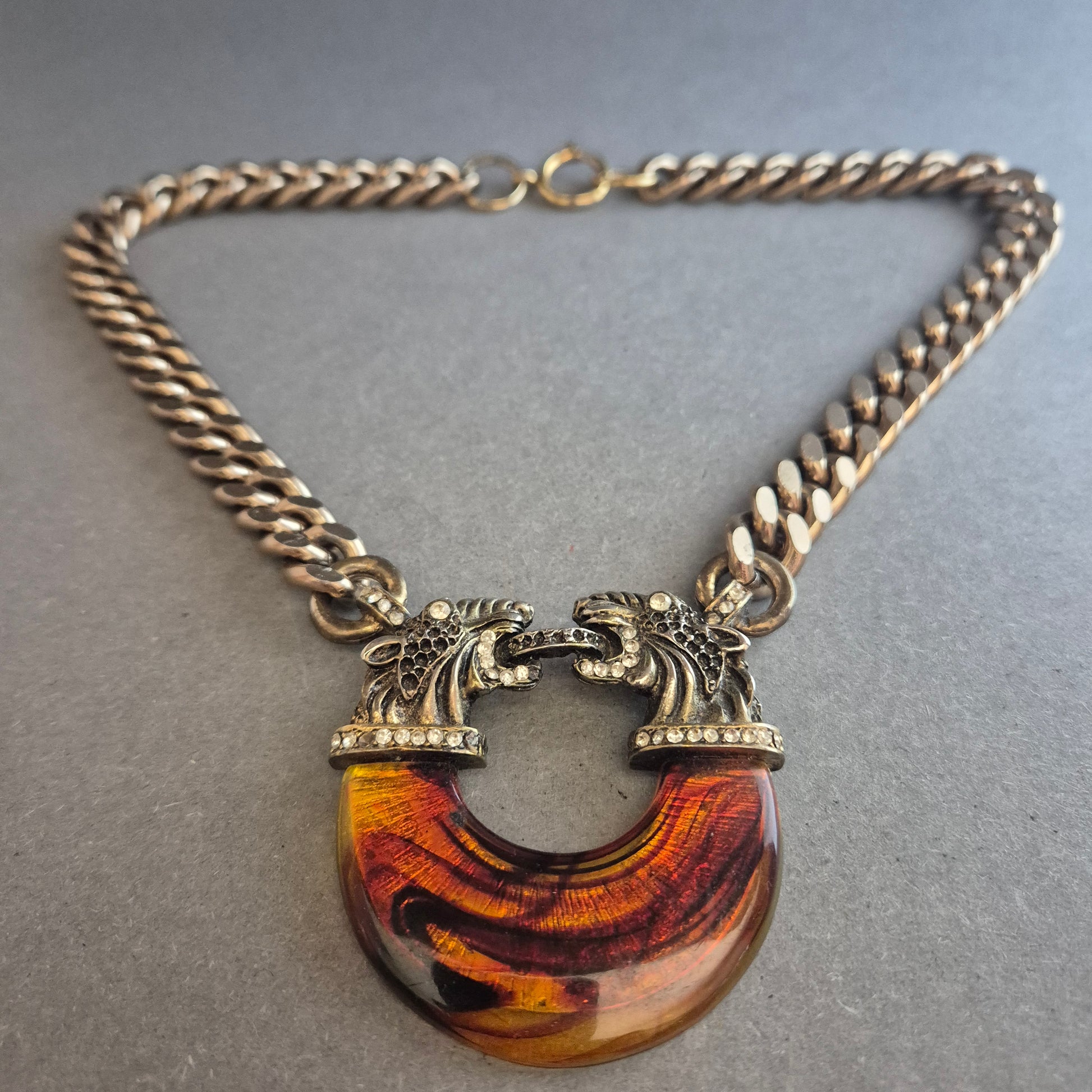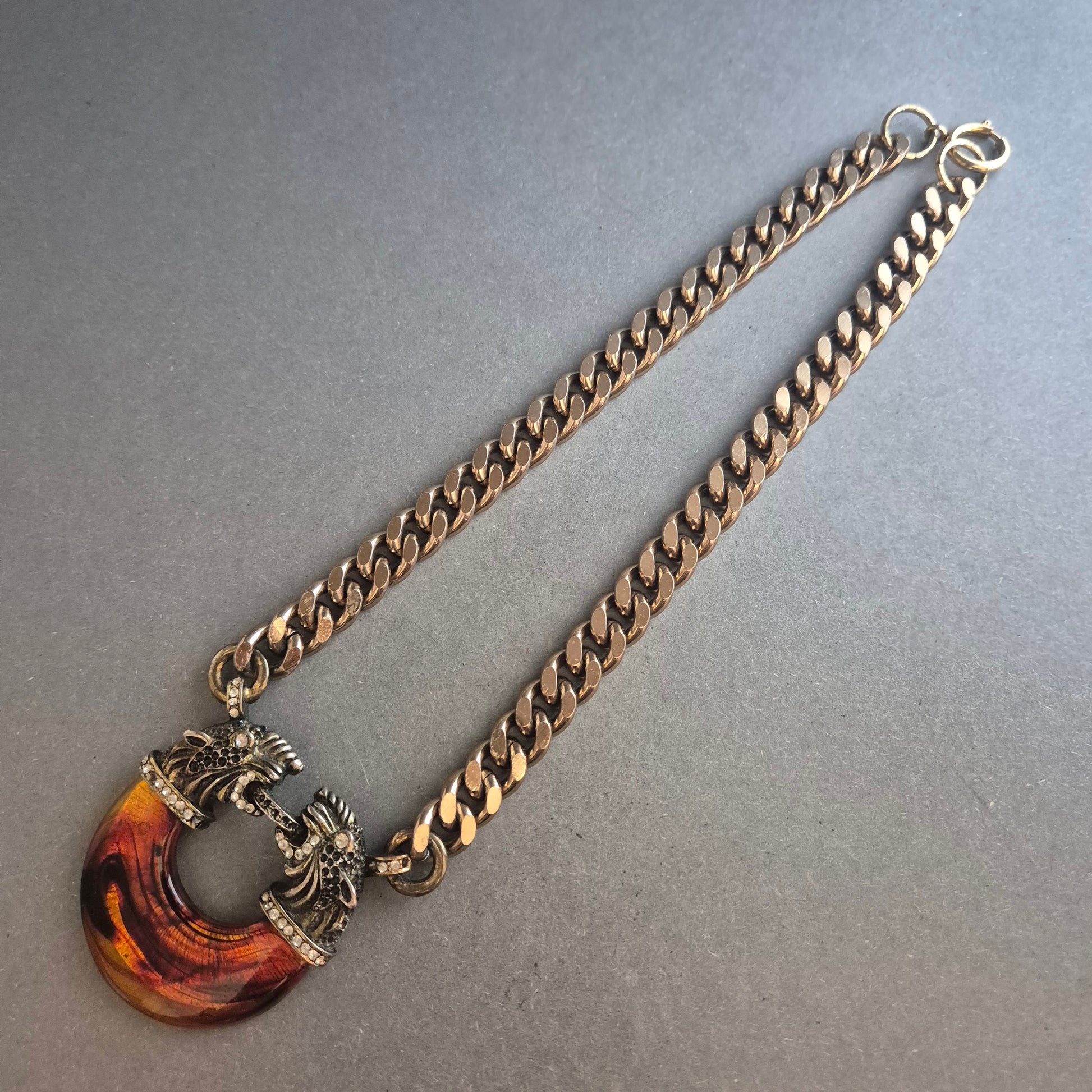 Statementkette mit Löwenköpfen und Bernsteinoptik – Extravaganz pur