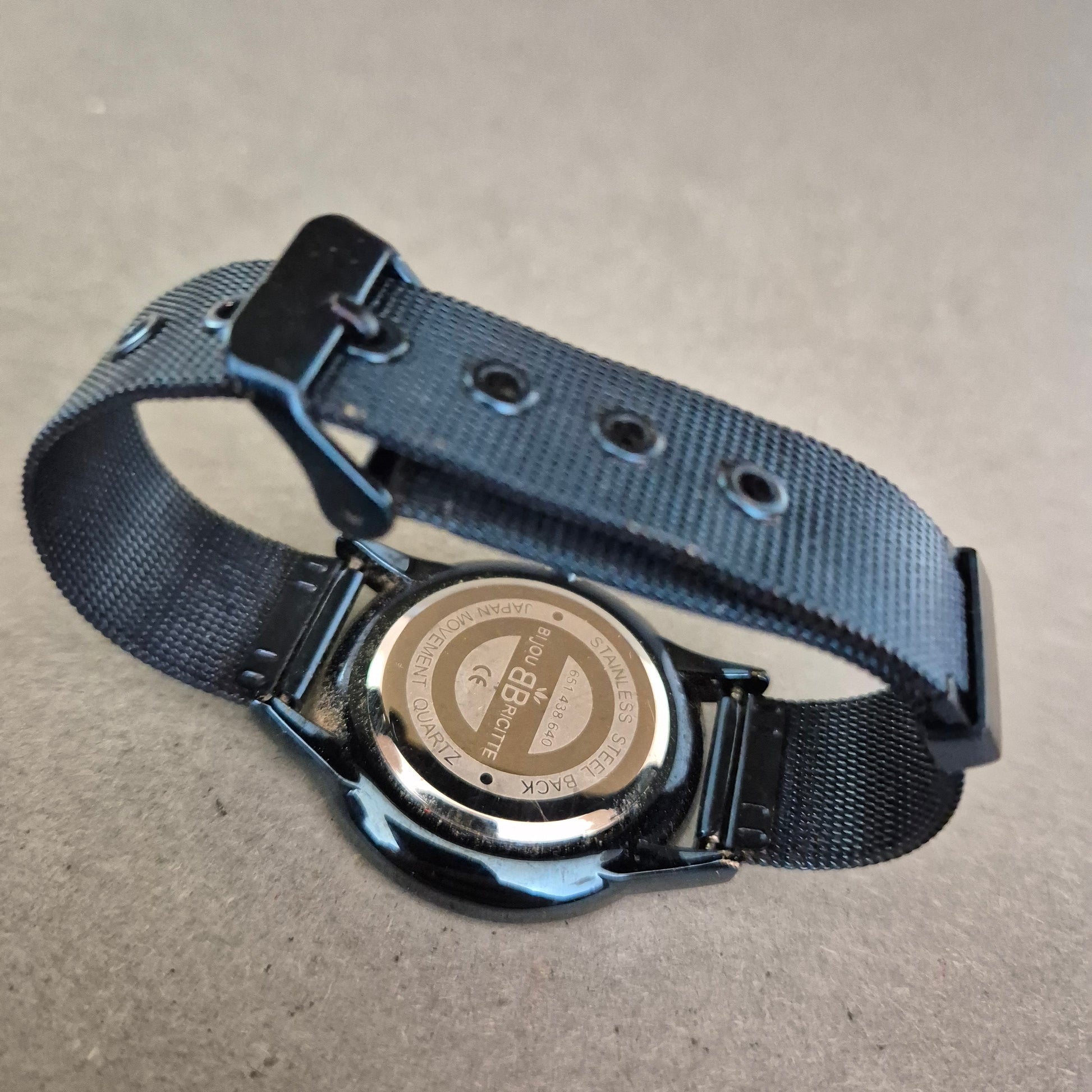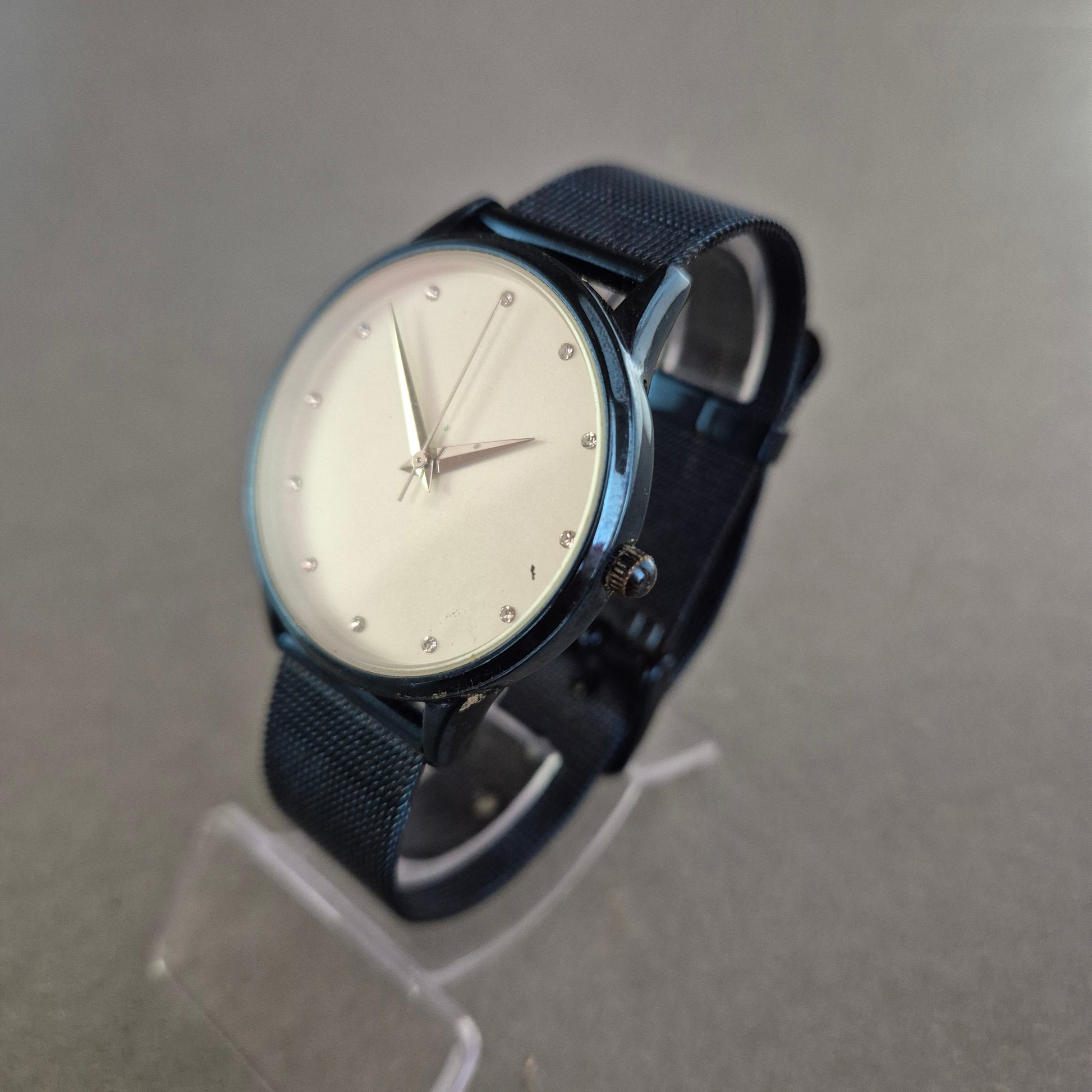 Diese elegante Damenarmbanduhr von Bijou Brigitte kombiniert schlichte Eleganz mit einem modernen Touch. Das silberne Zifferblatt ist mit zarten Glitzerpunkten anstelle von Ziffern verziert und wird von einem minimalistischen schwarzen Gehäuse und feinem Mesh-Armband abgerundet. Ideal für modebewusste Frauen, die ein dezentes, aber ausdrucksstarkes Accessoire suchen.