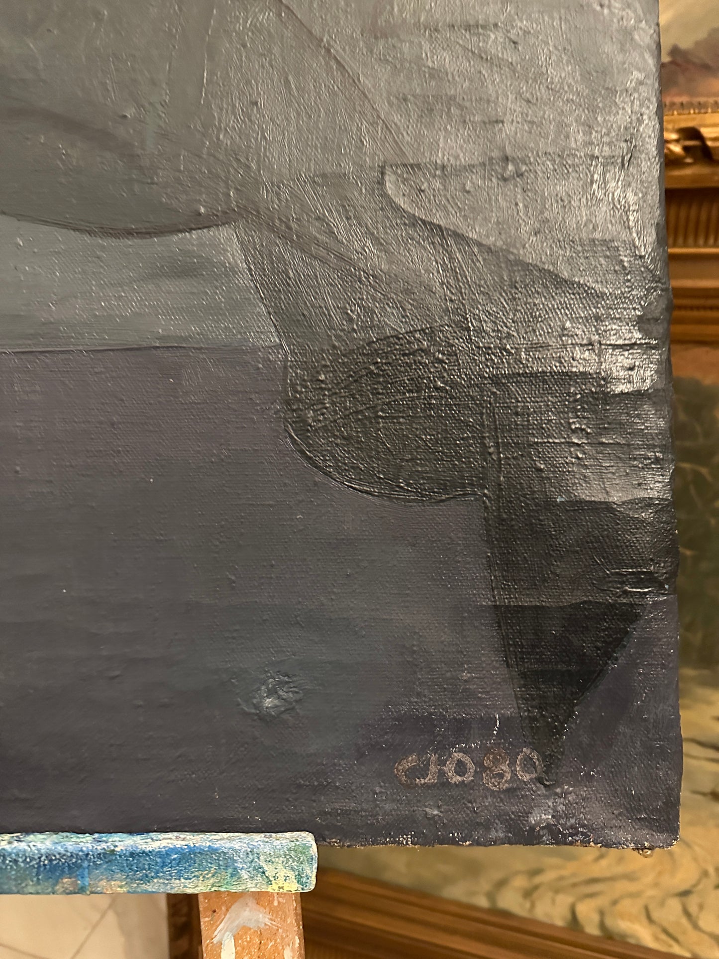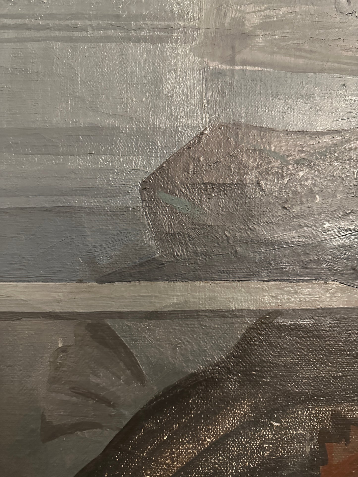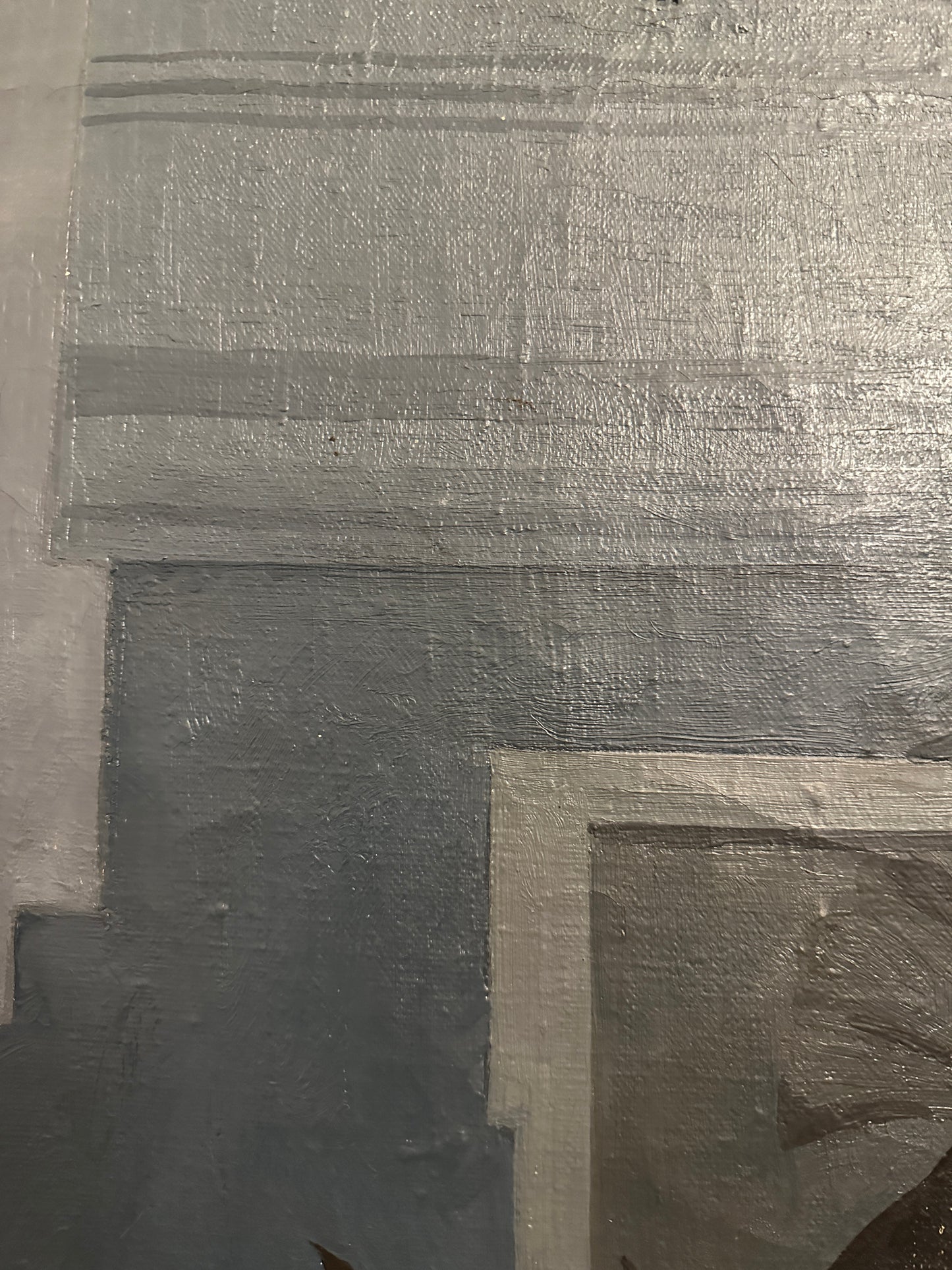 Die abstrakte Darstellung, die dominierenden Blau- und Grautöne sowie die gekonnte Ausführung verleihen diesem Gemälde eine einzigartige Ausdruckskraft. Ein ideales Stück für Kunstliebhaber, die zeitgenössische Kunst mit einer besonderen Atmosphäre schätzen.