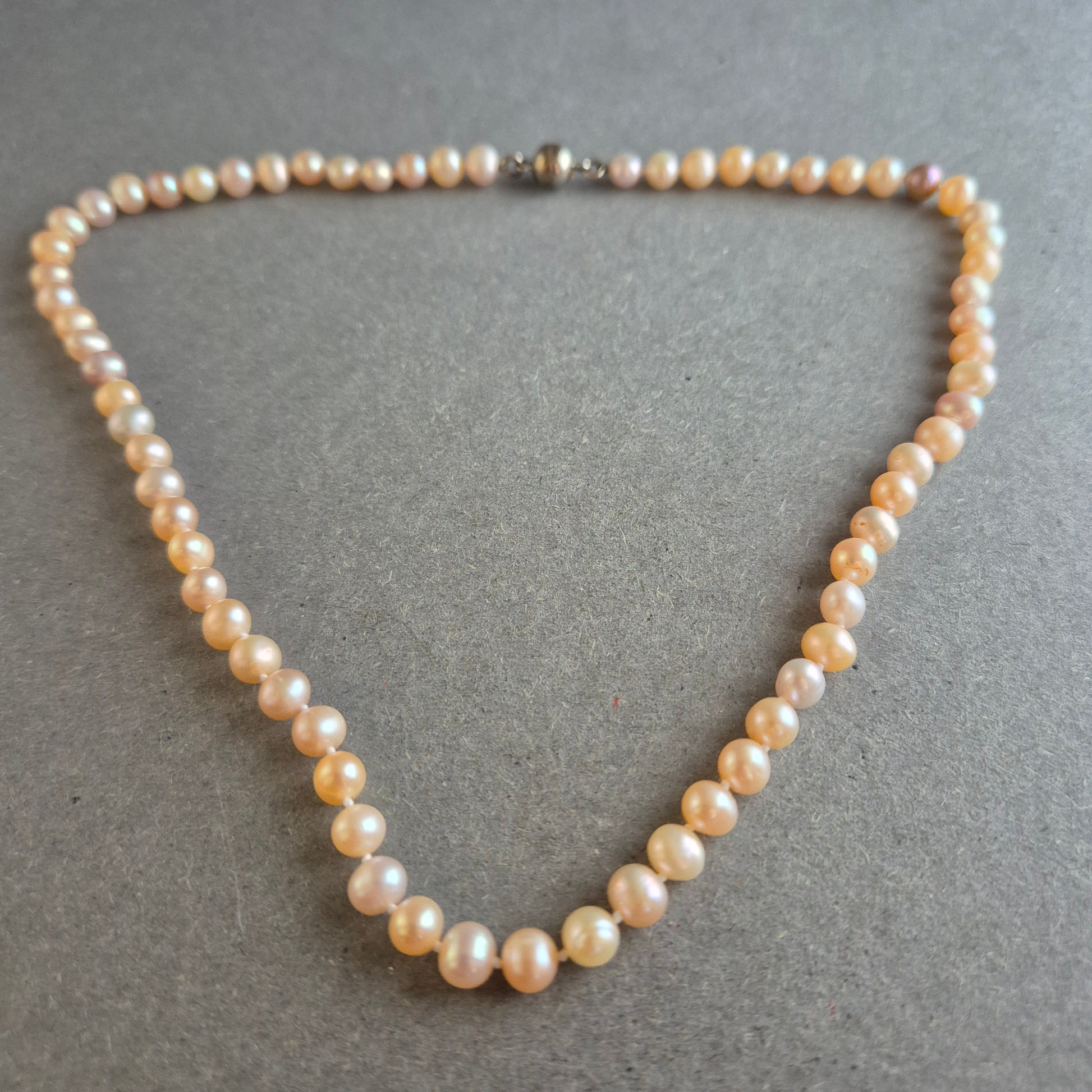 Diese stilvolle Kette aus echten Süßwasserperlen überzeugt durch ihren sanften Roséton und natürlichen Glanz. Die leicht unregelmäßige Form der Perlen unterstreicht den handgearbeiteten Charakter. Ideal für elegante Outfits, Hochzeiten oder als edles Geschenk – ein zeitloser Klassiker in zarter Farbgebung.