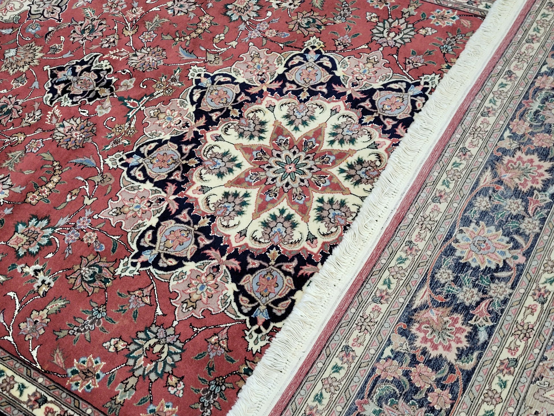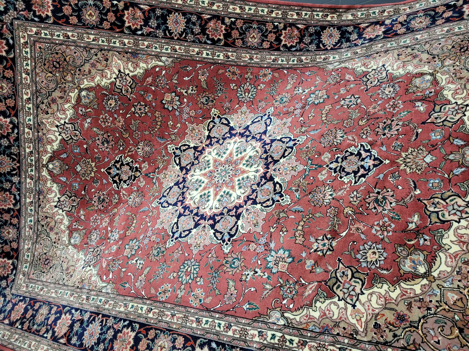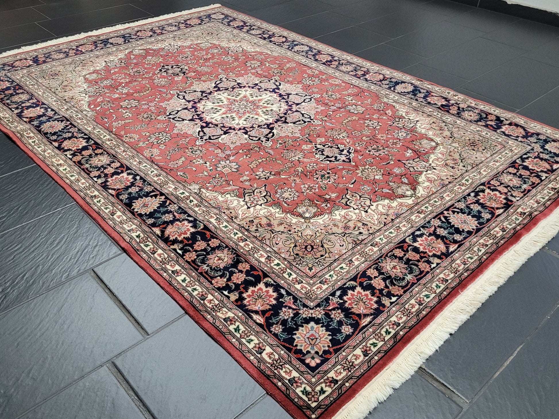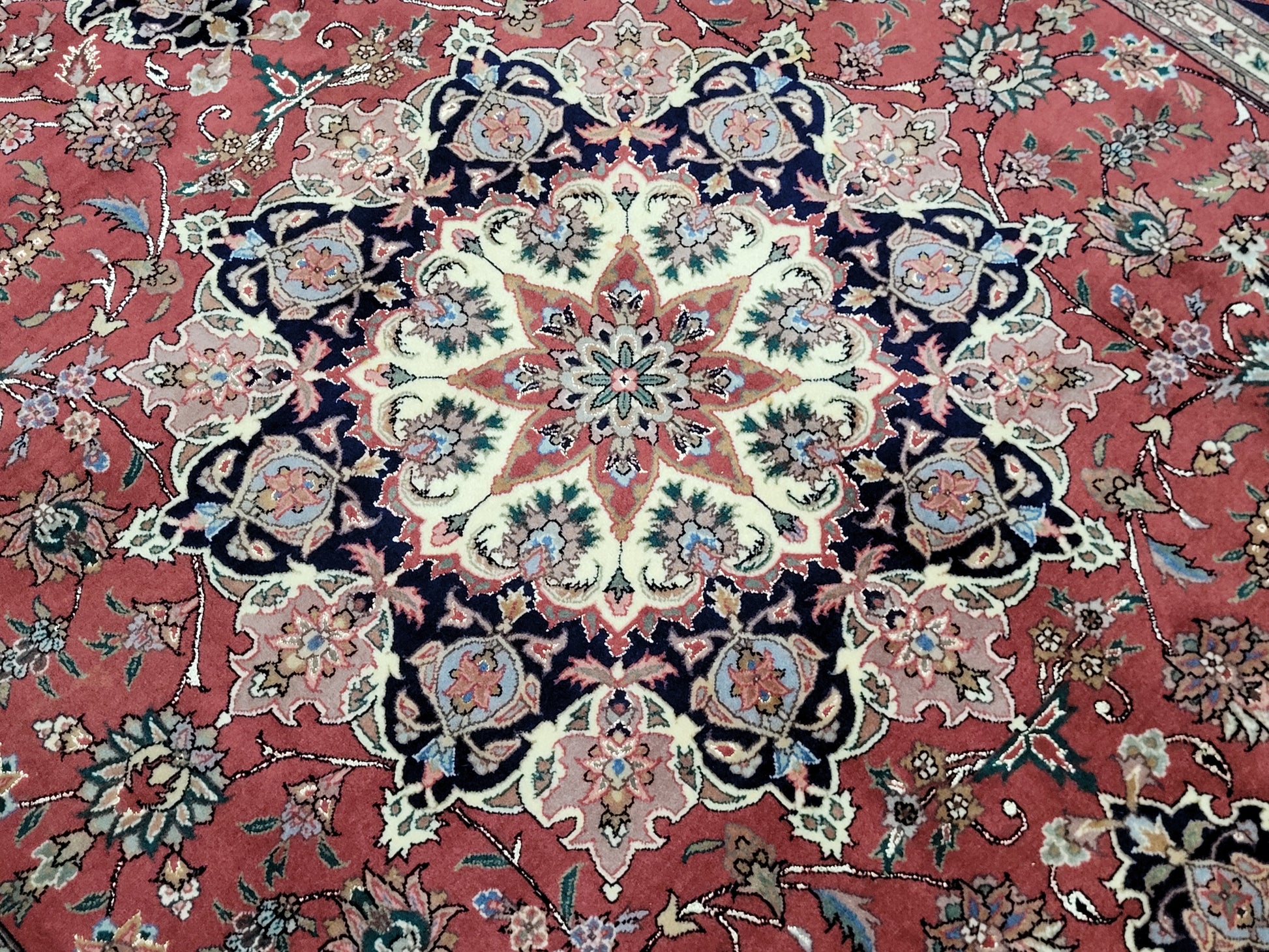 Täbriz Teppich 250x170 cm feine Korkwolle mit Seide Medaillonmuster