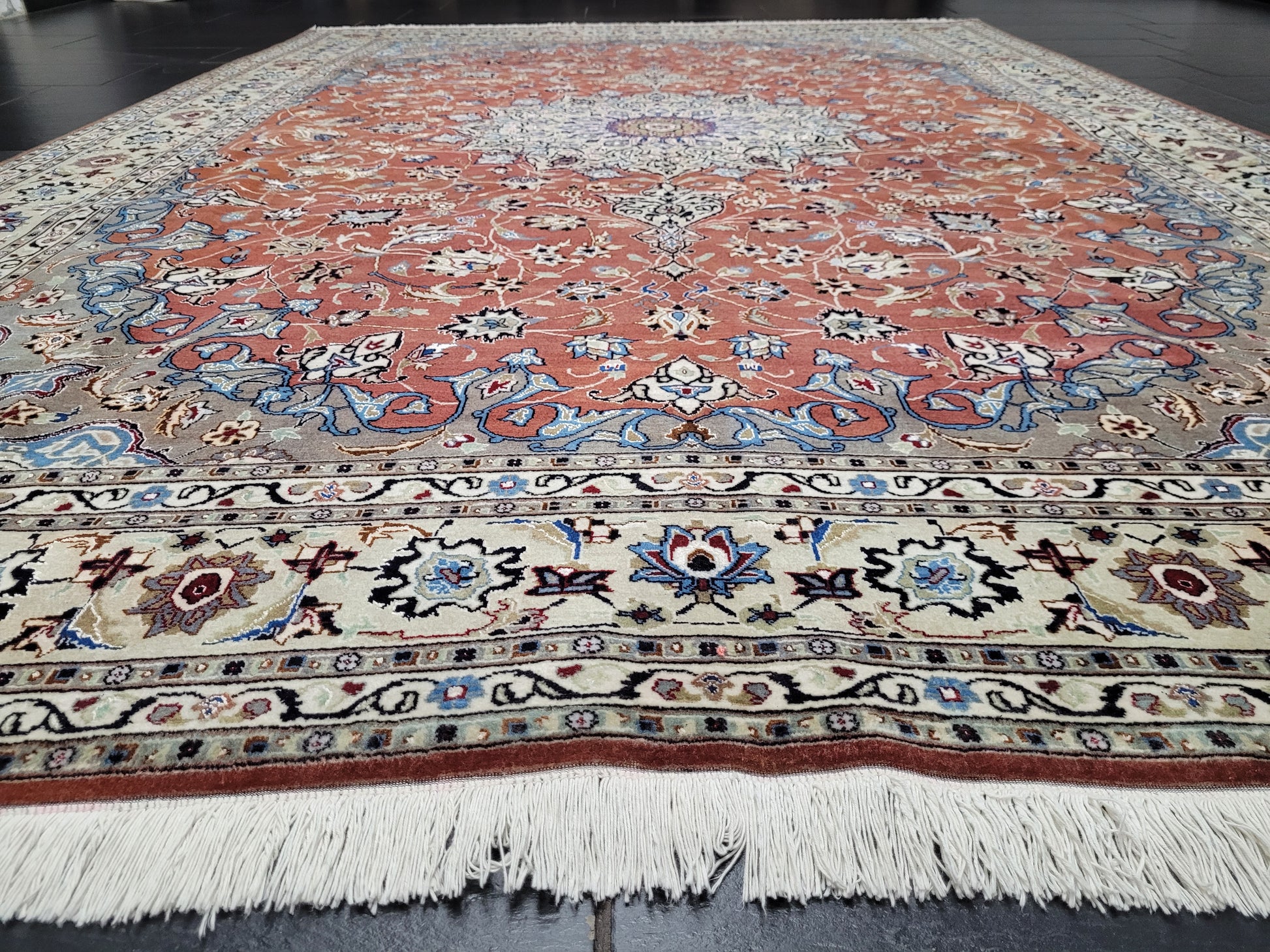 Täbriz Teppich 298x203 cm feine Korkwolle mit Seidenanteil klassische Knüpfkunst