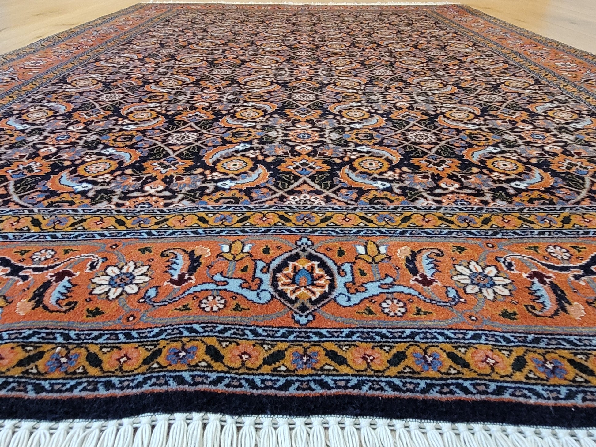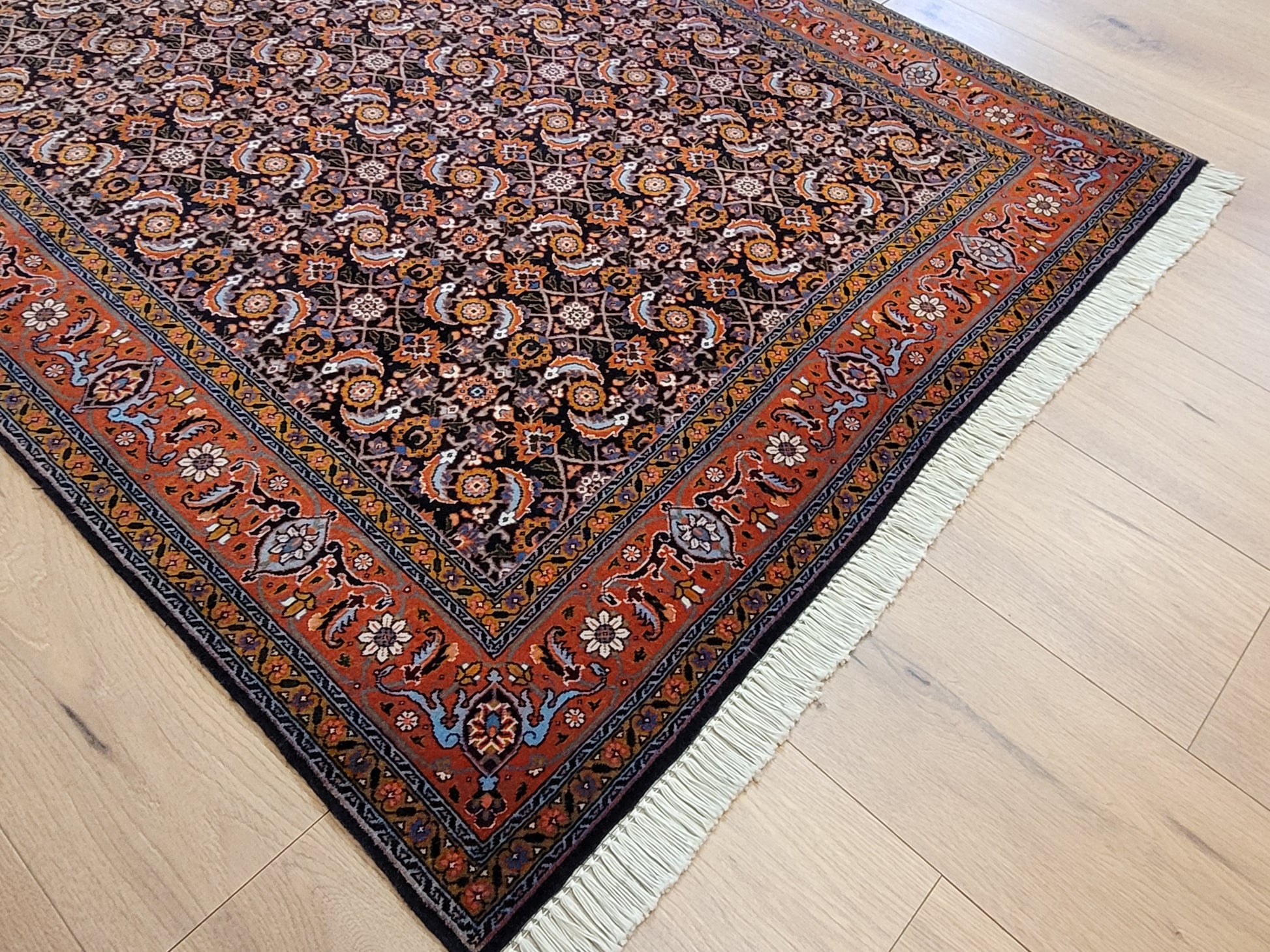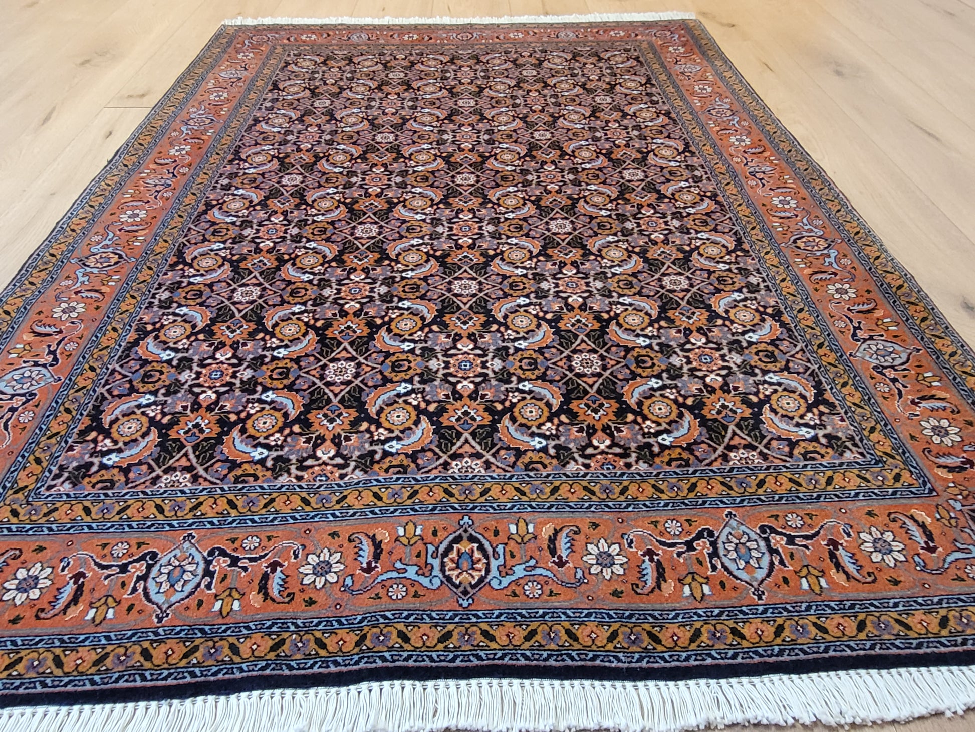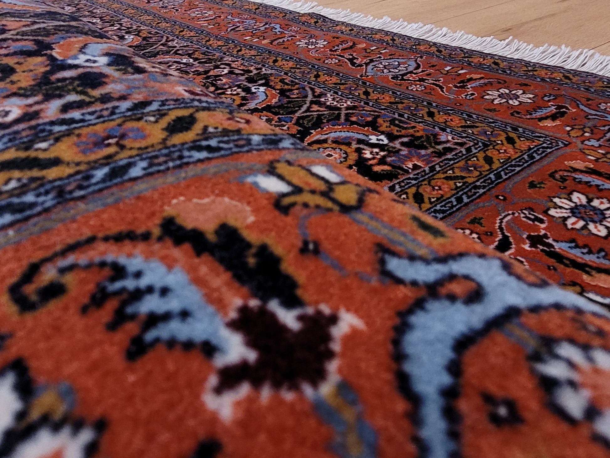 • Knüpfung: fein, detailreich und dicht gearbeitet