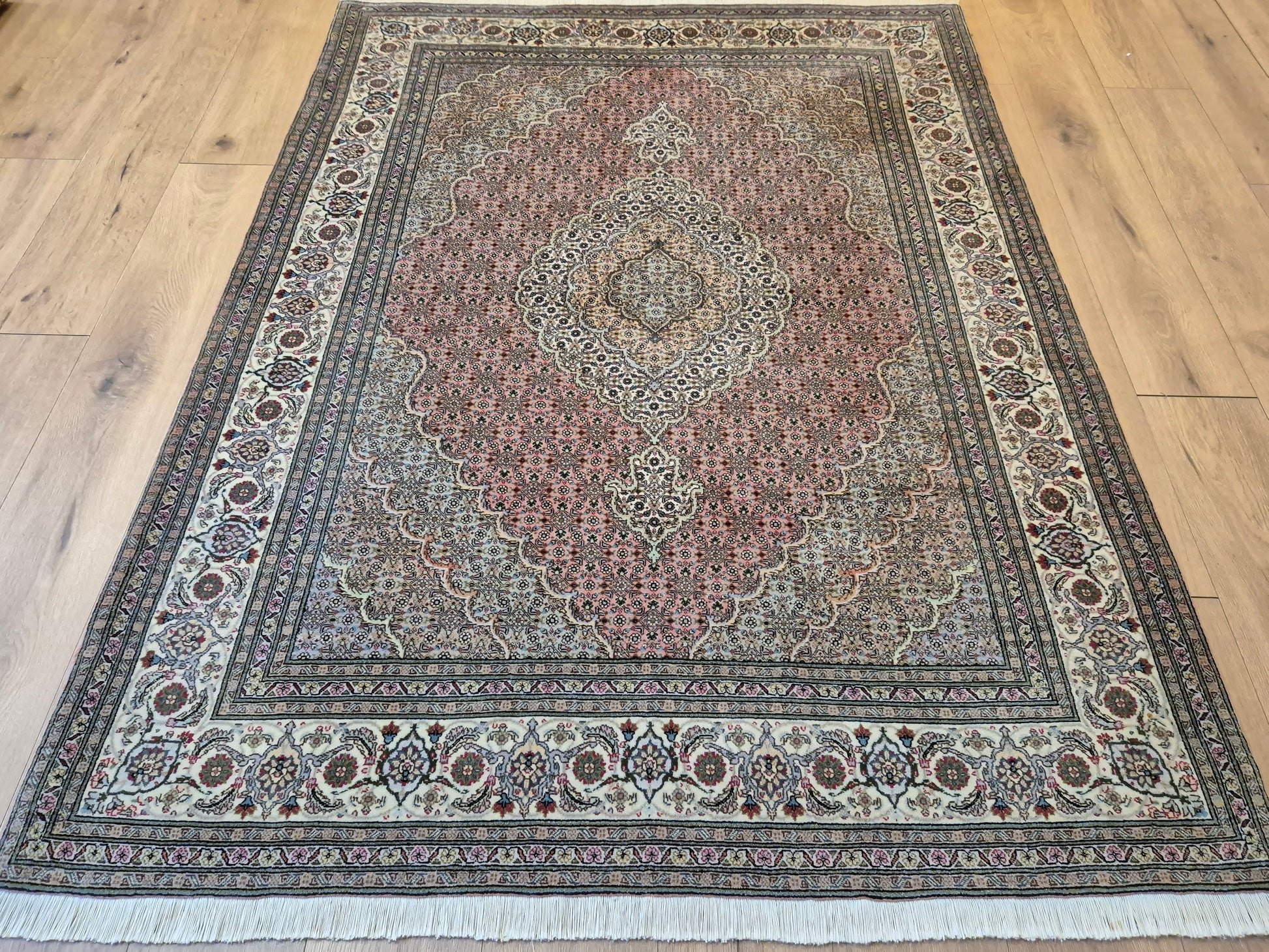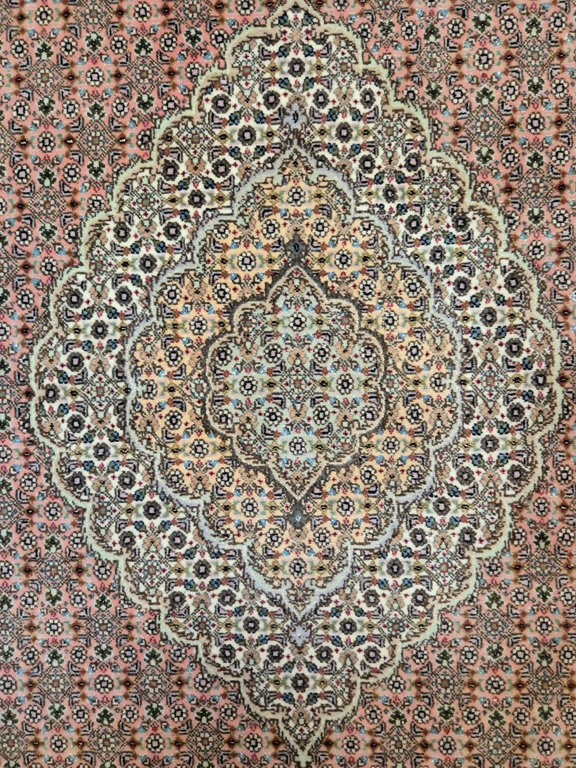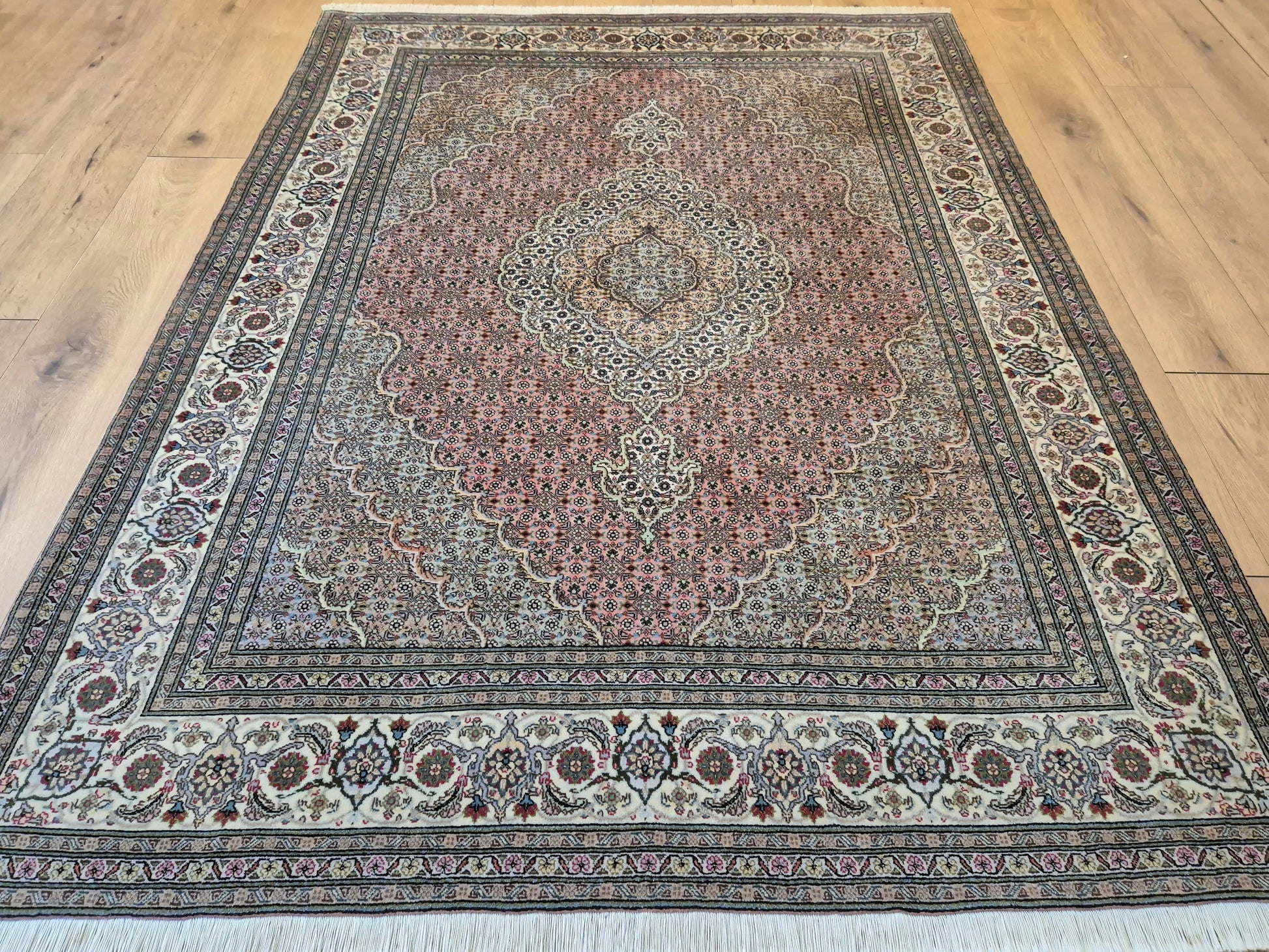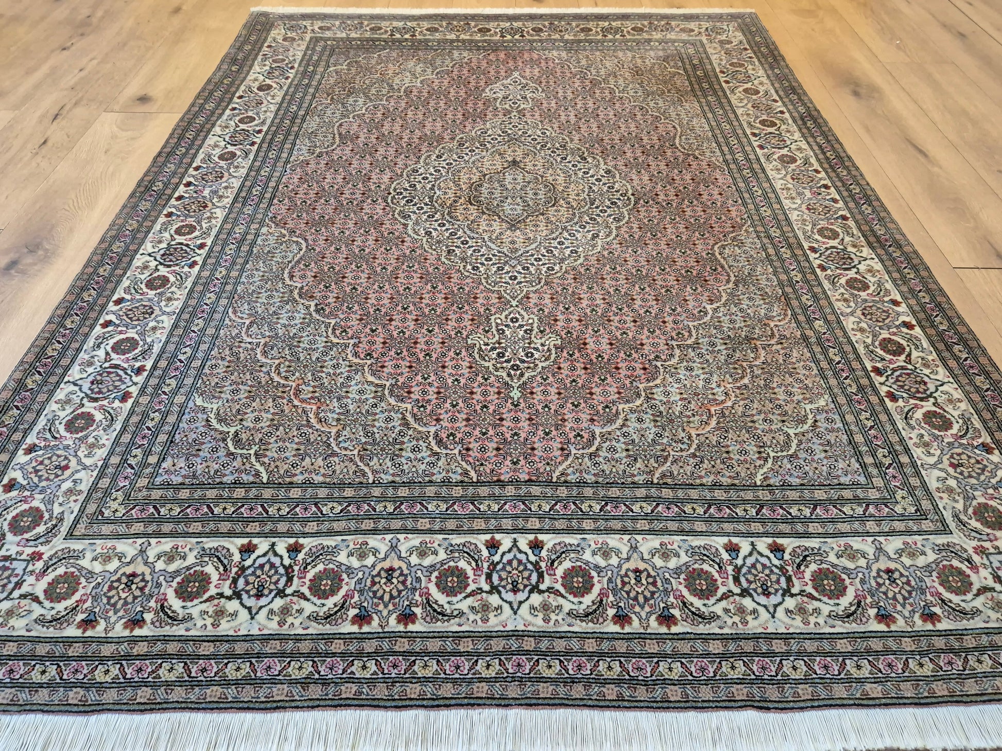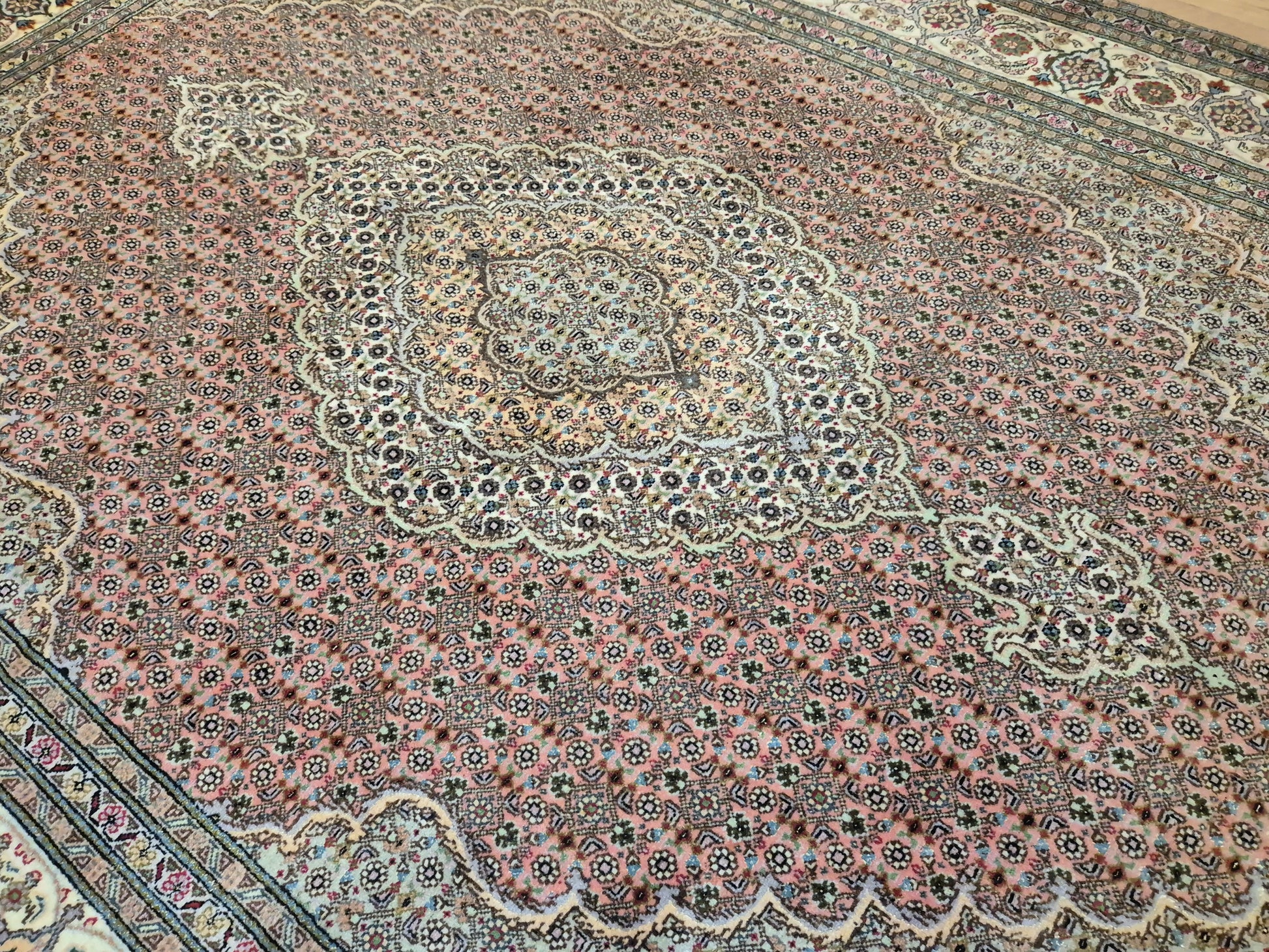 Täbriz Teppich Korkwolle mit Seide feine Knüpfung florales Medaillon