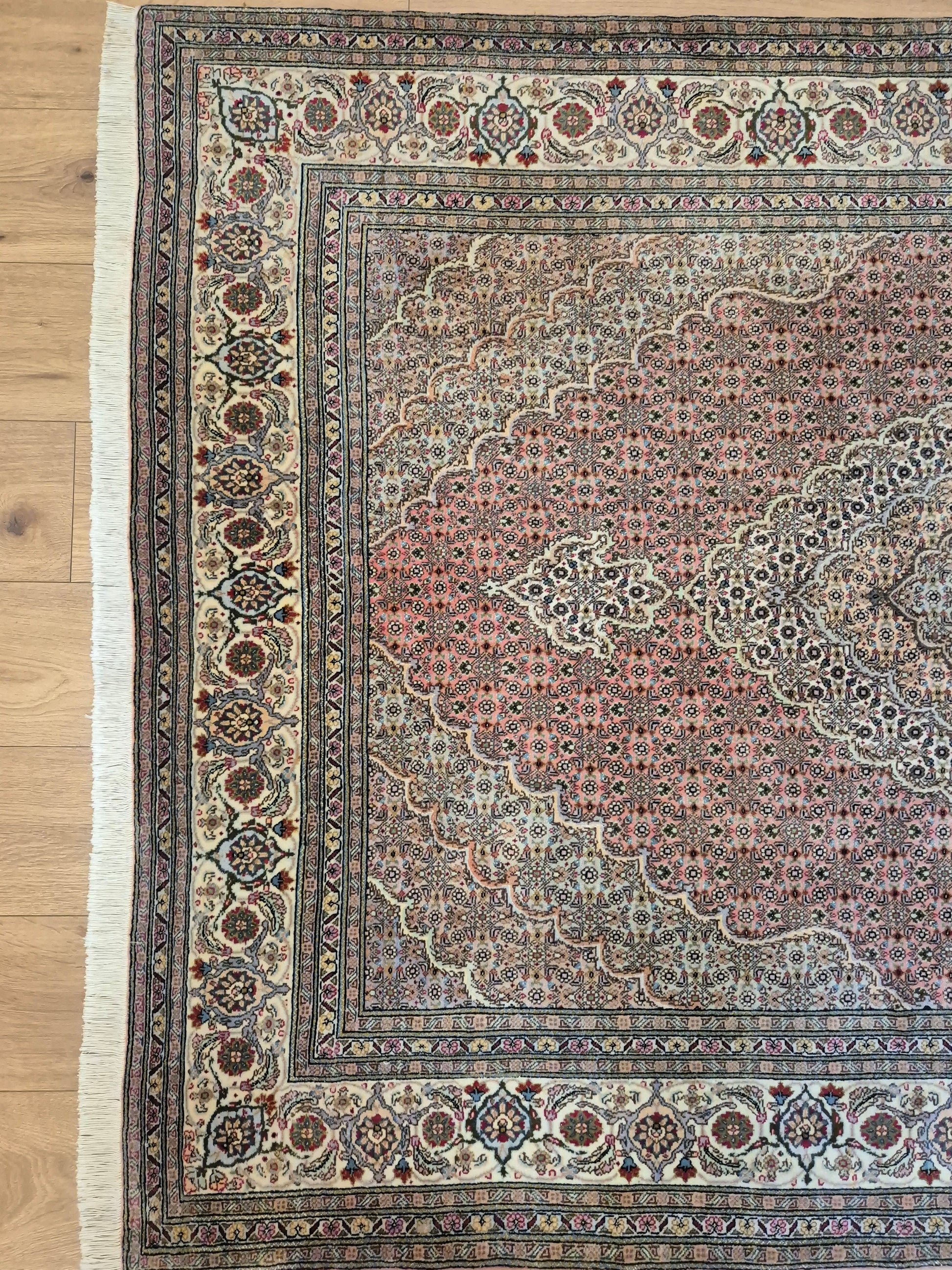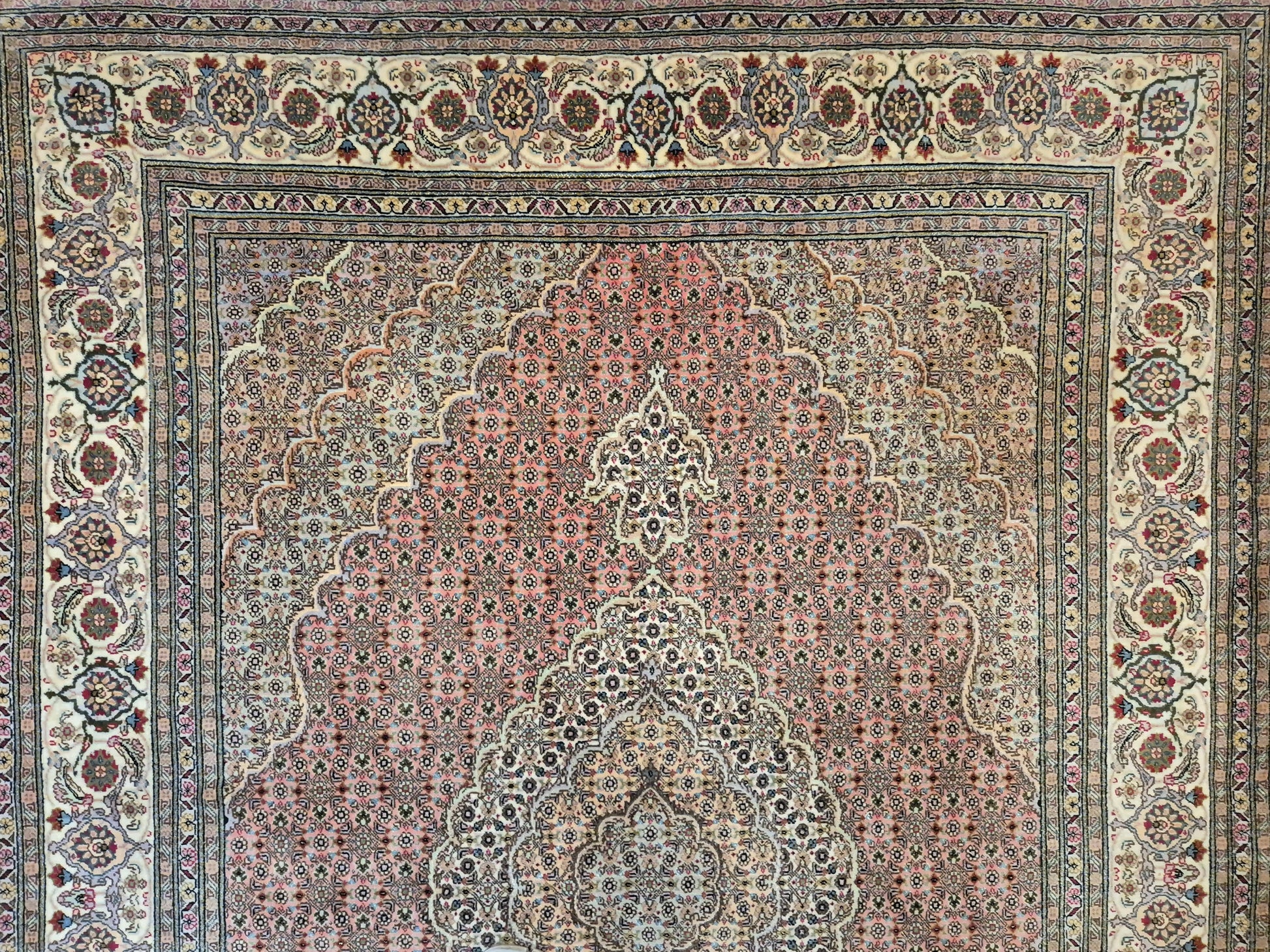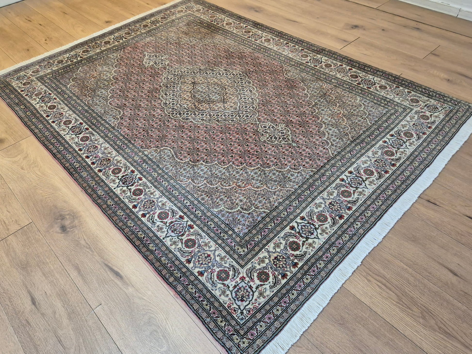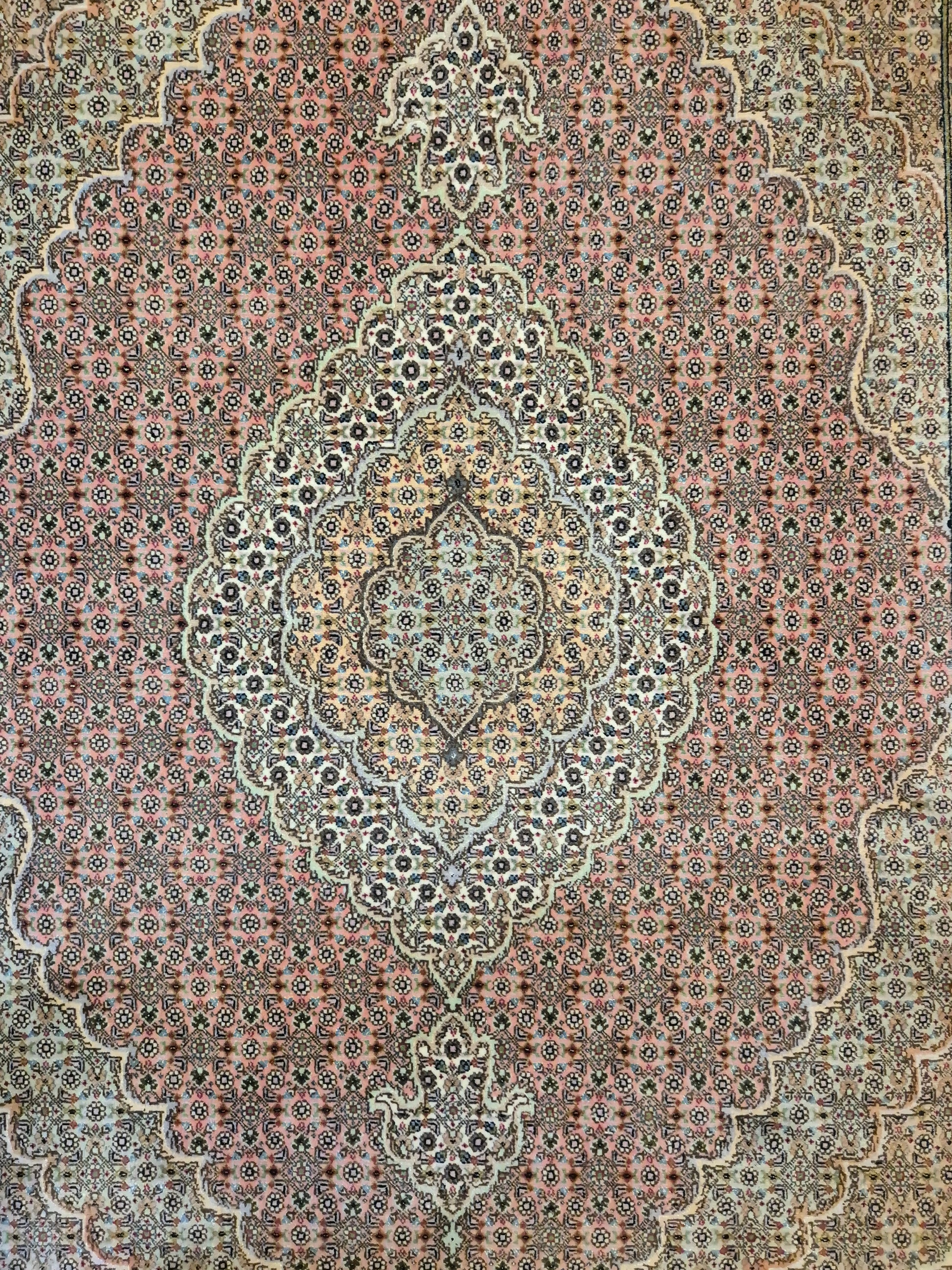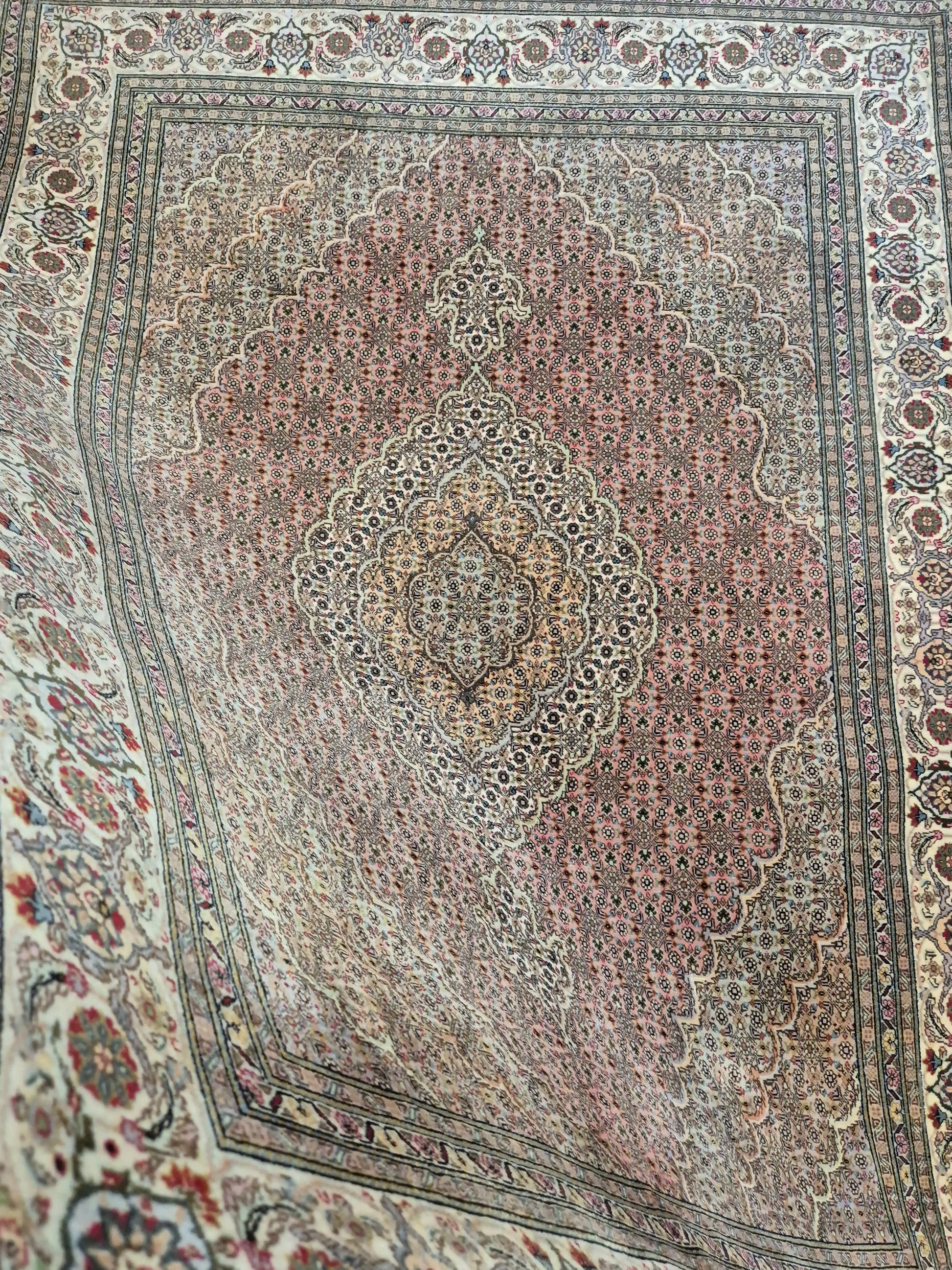 Täbriz Teppich Korkwolle mit Seide feine Knüpfung florales Medaillon
