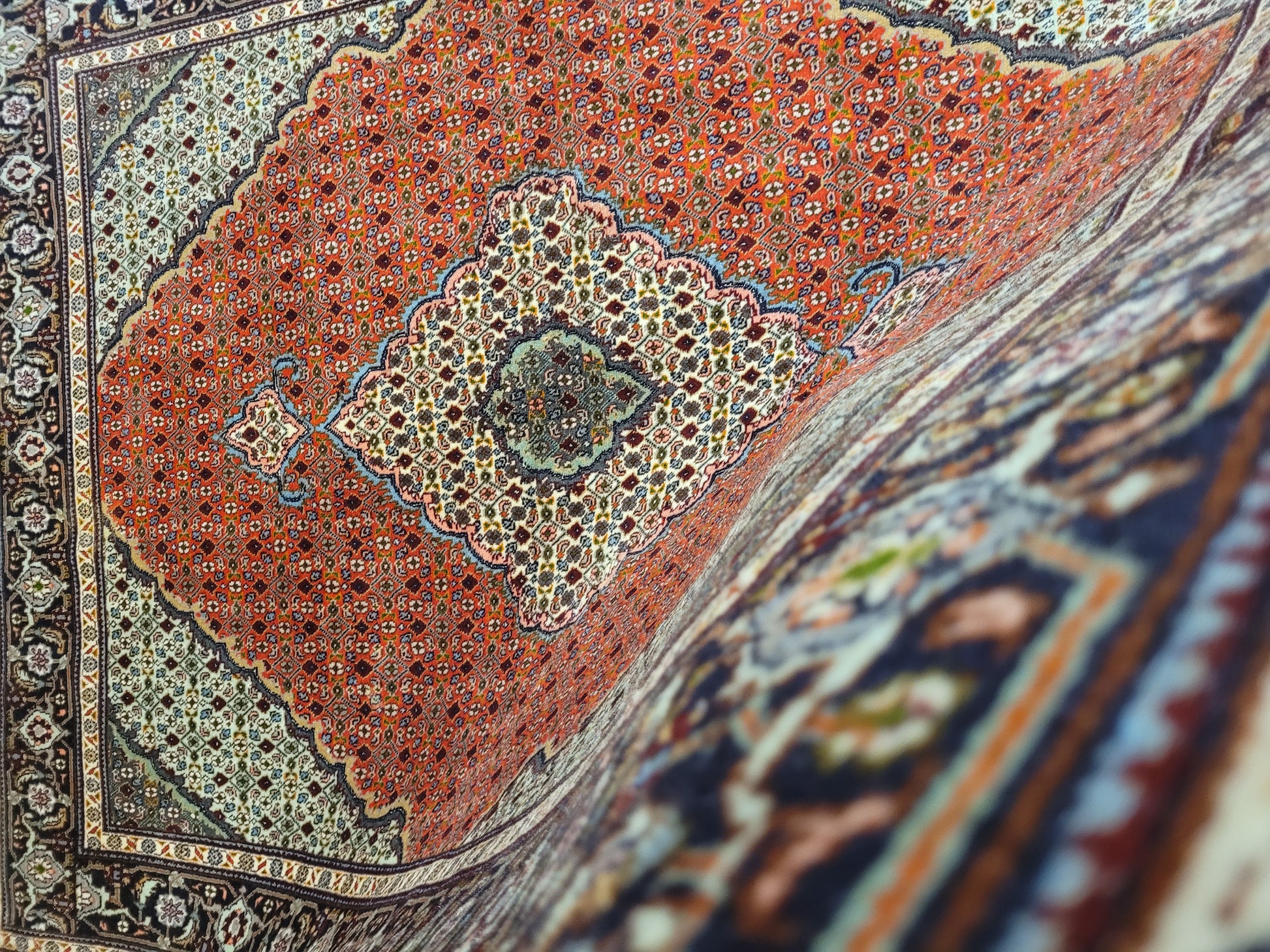 Täbriz Teppich Wolle Medaillon Mauerfeld fein geknüpft