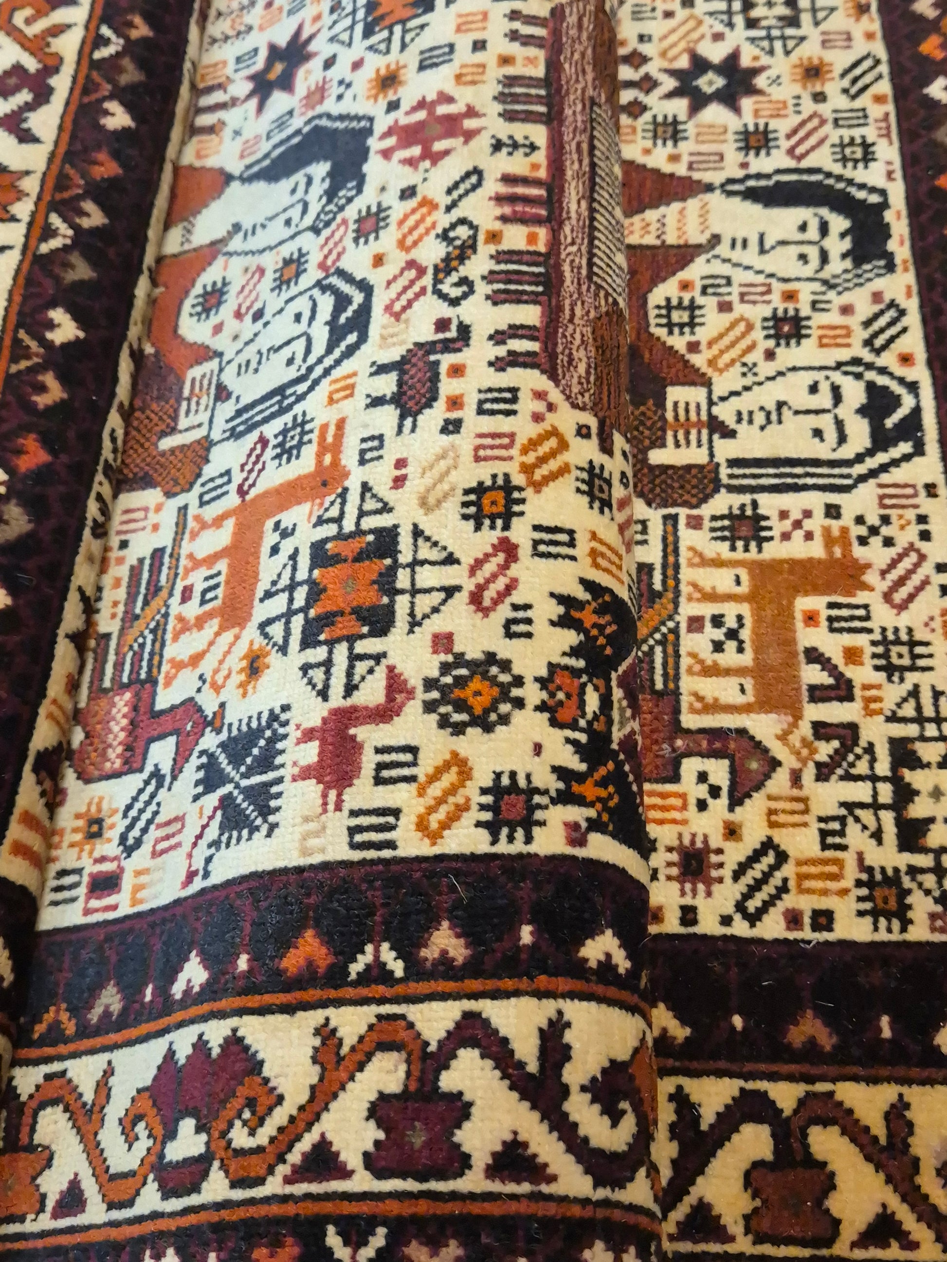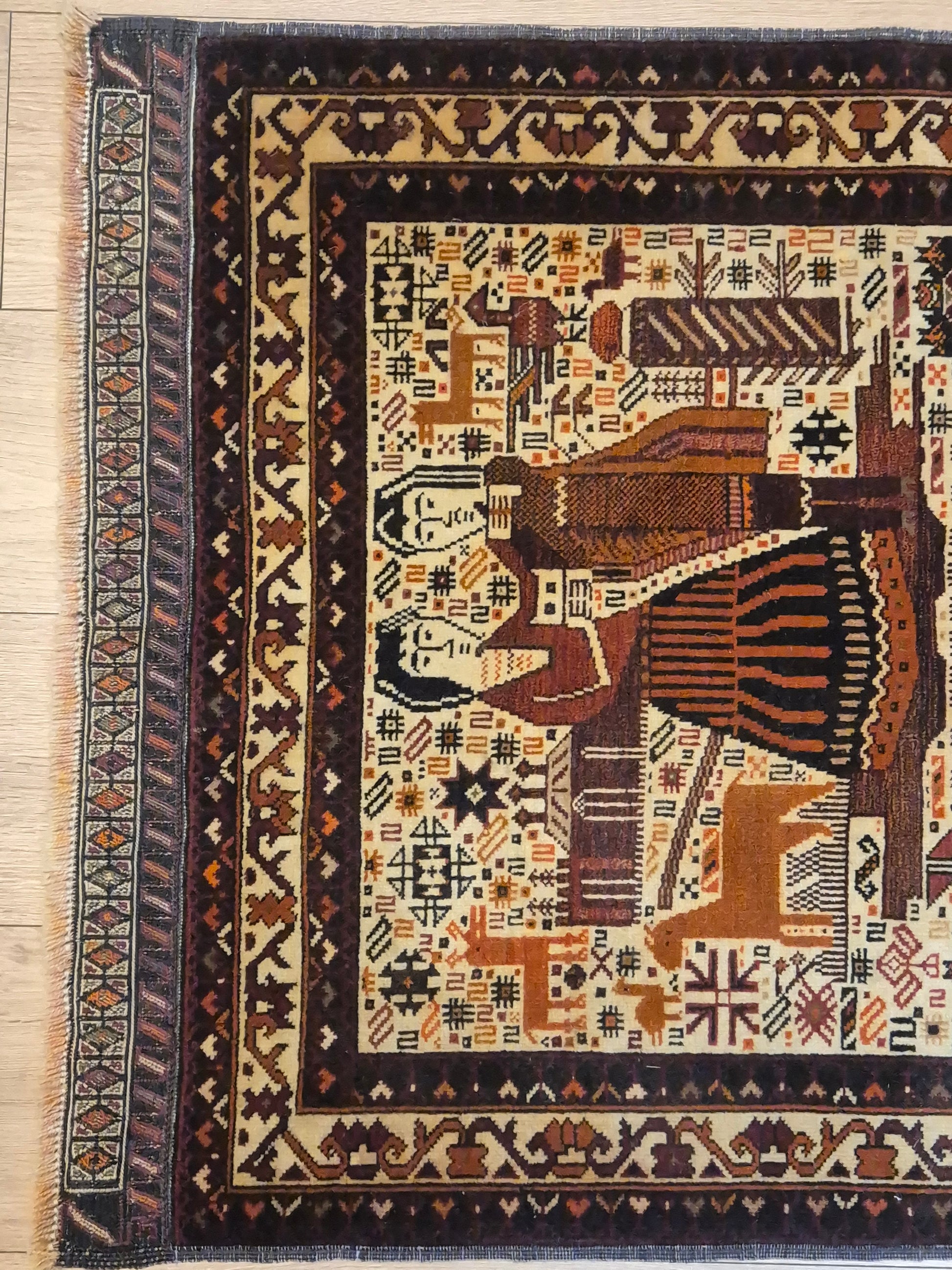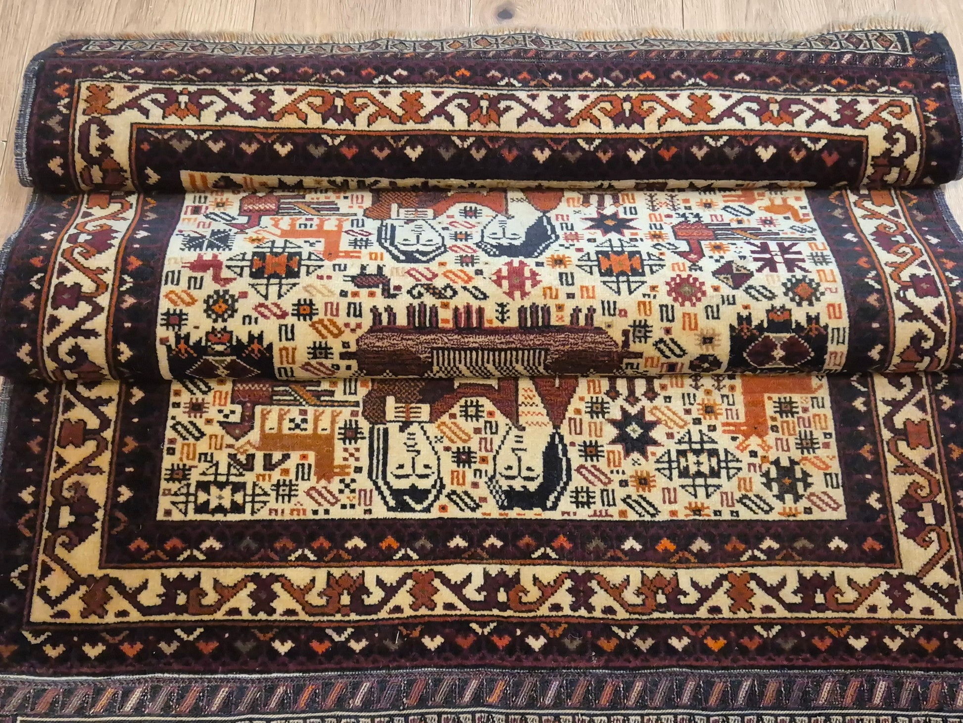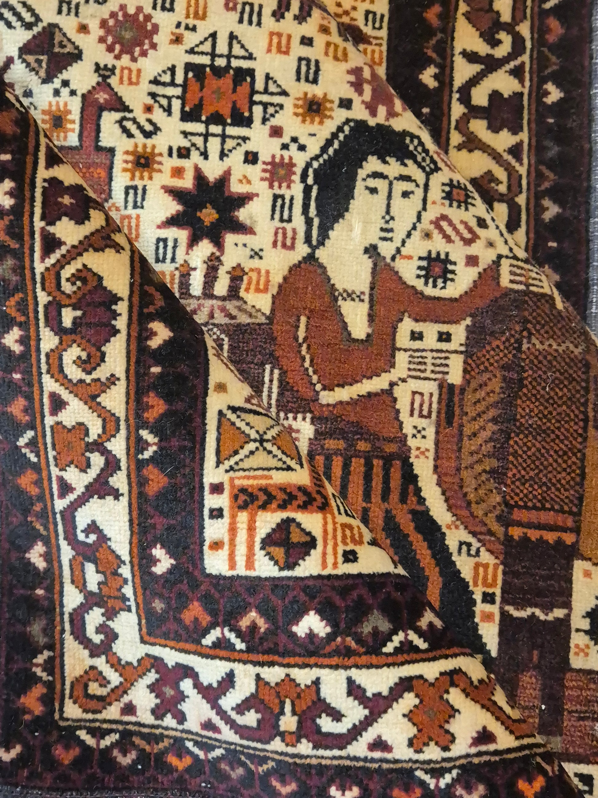 Torbat Belutsch Teppich Wolle figürliche Darstellung handgeknüpft
