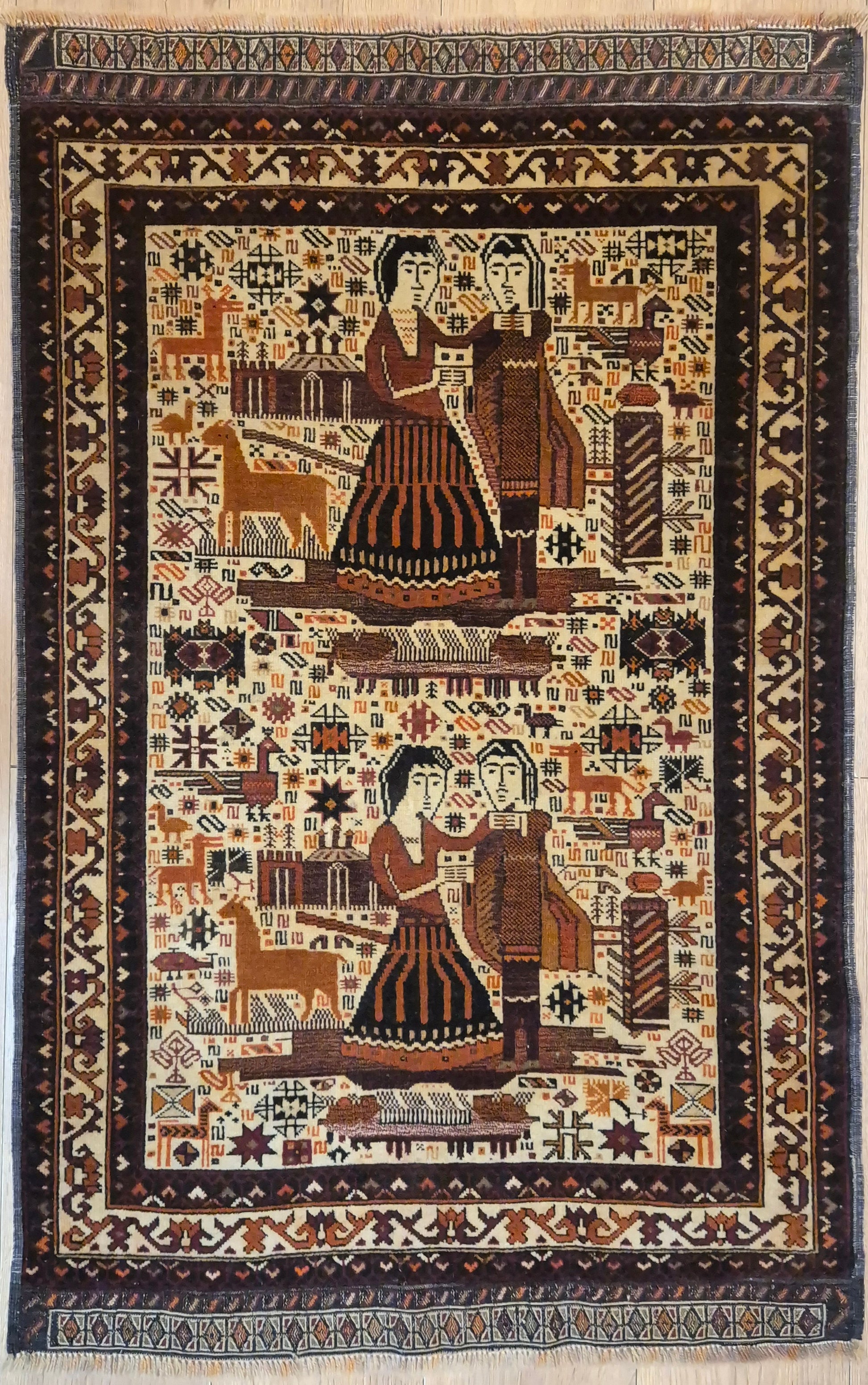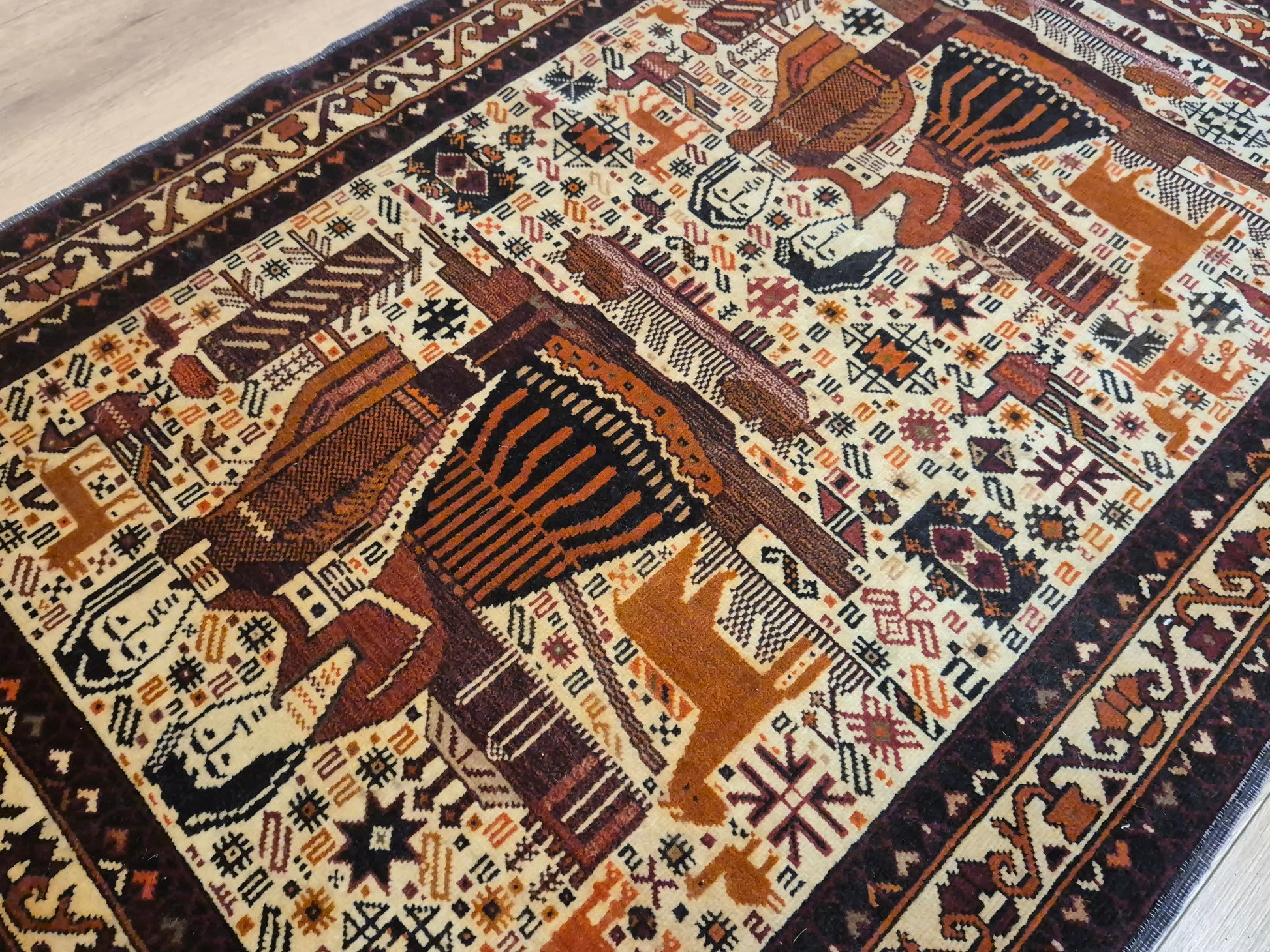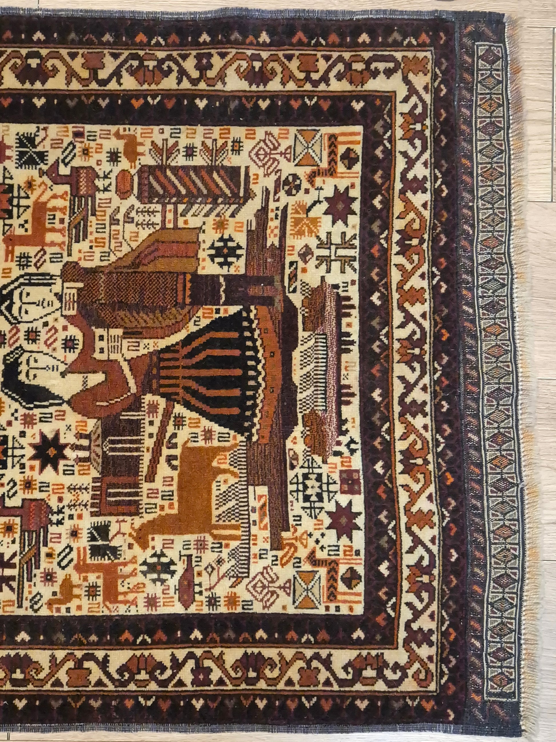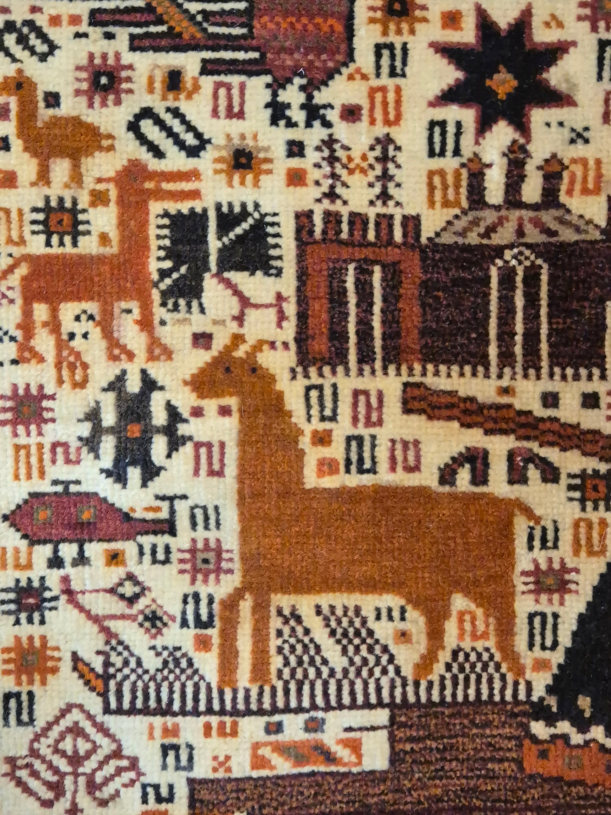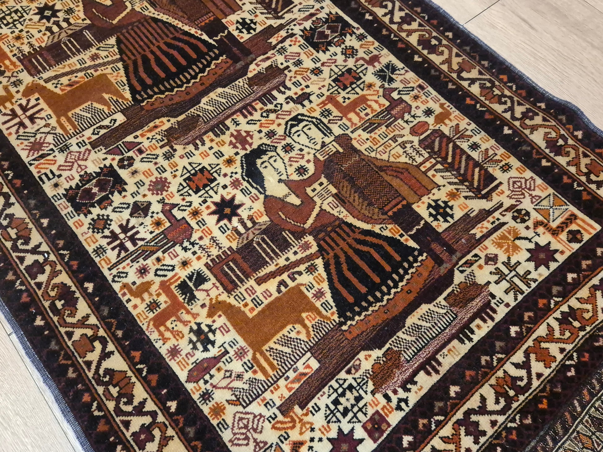 Torbat Belutsch Teppich Wolle figürliche Darstellung handgeknüpft