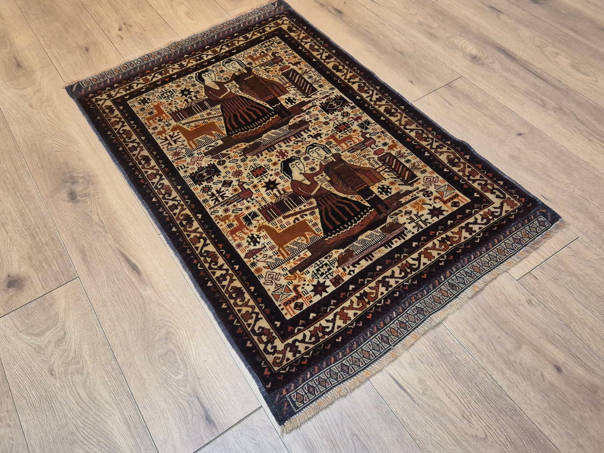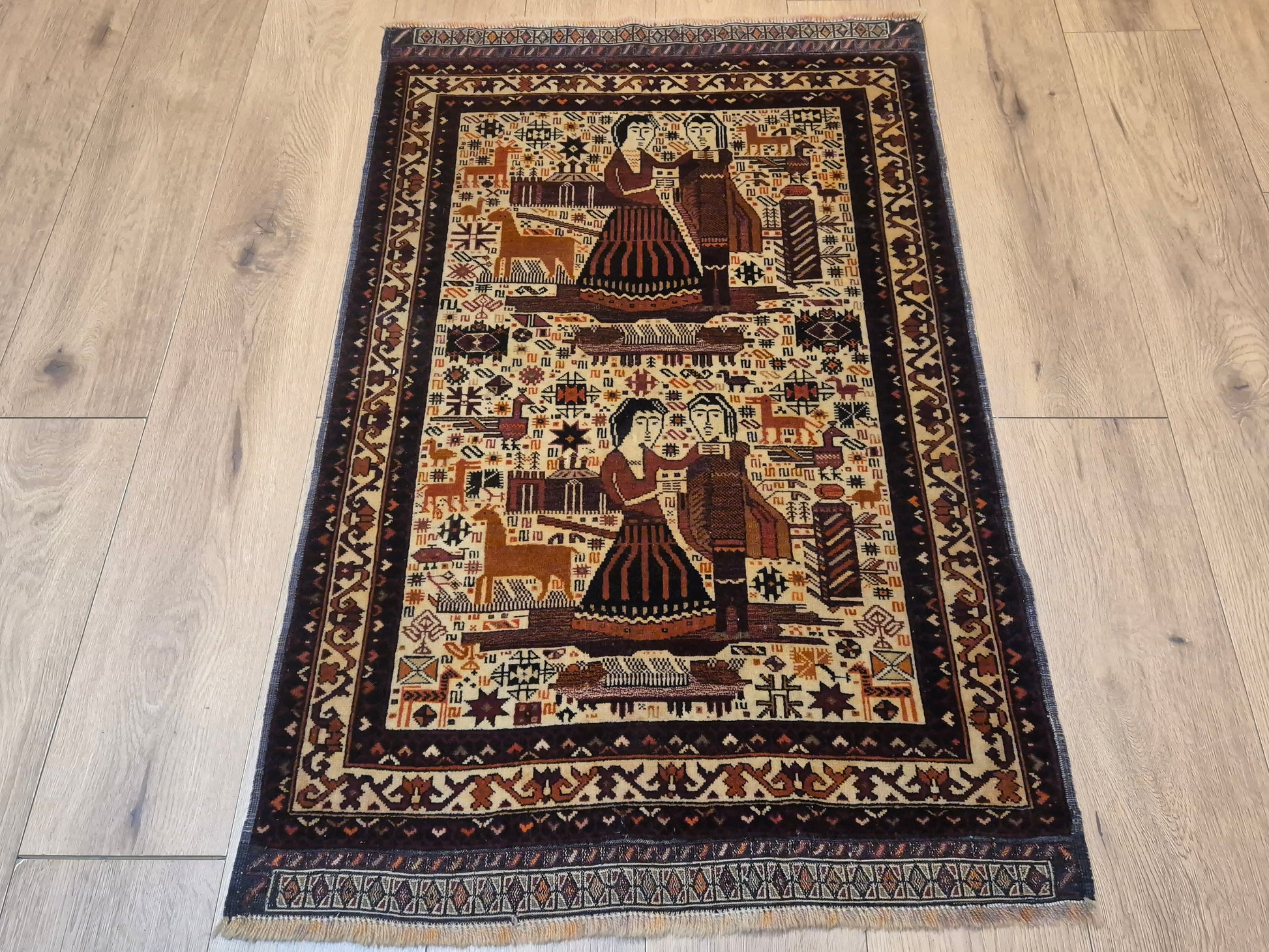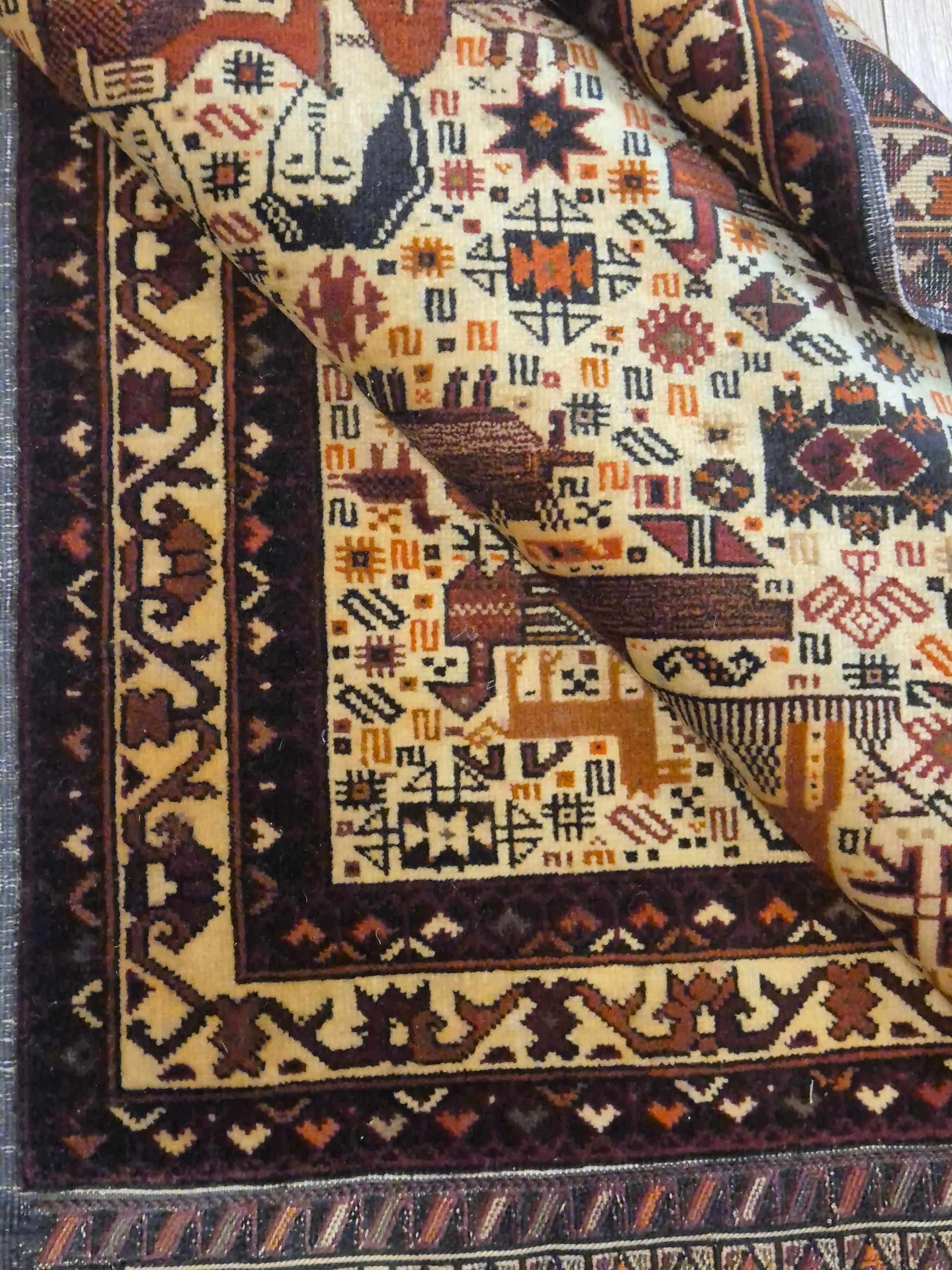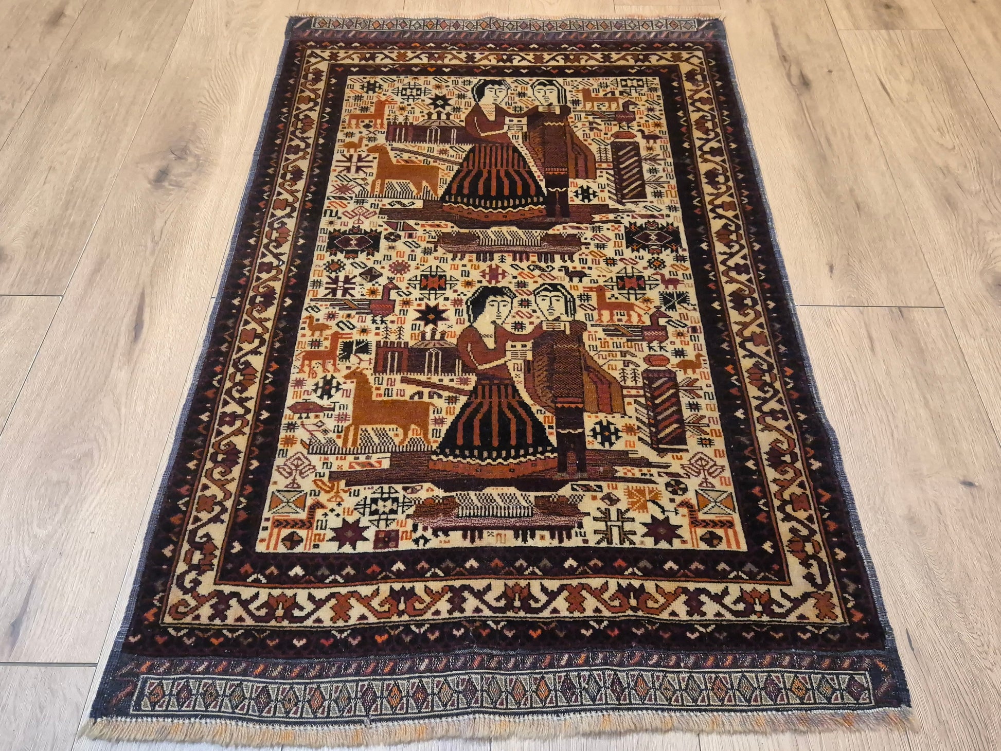 Torbat Belutsch Teppich Wolle figürliche Darstellung handgeknüpft