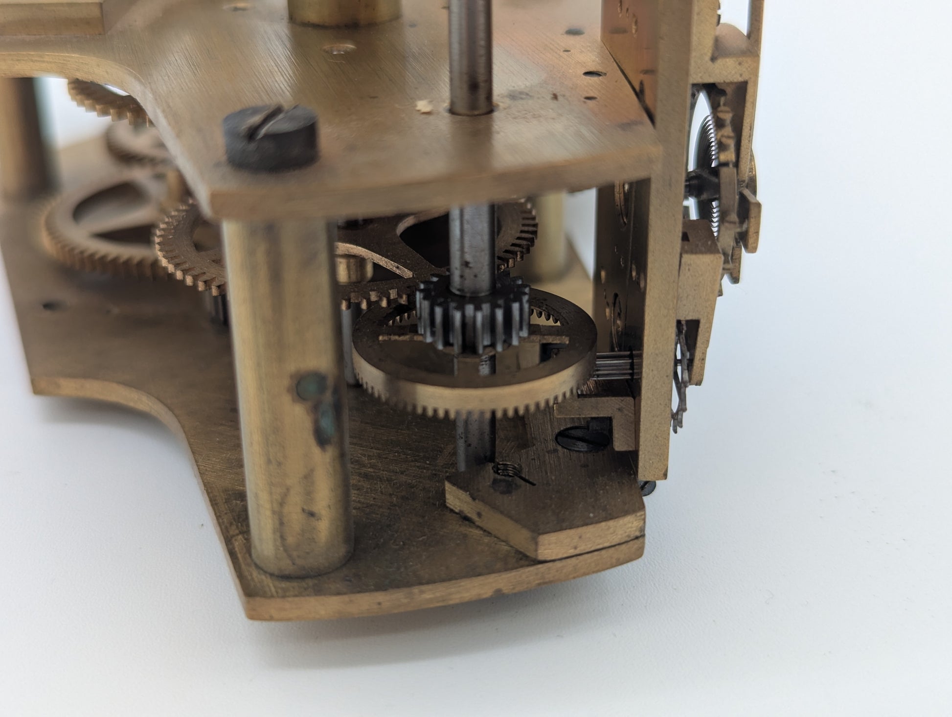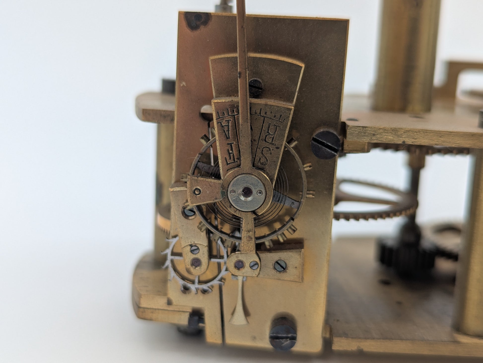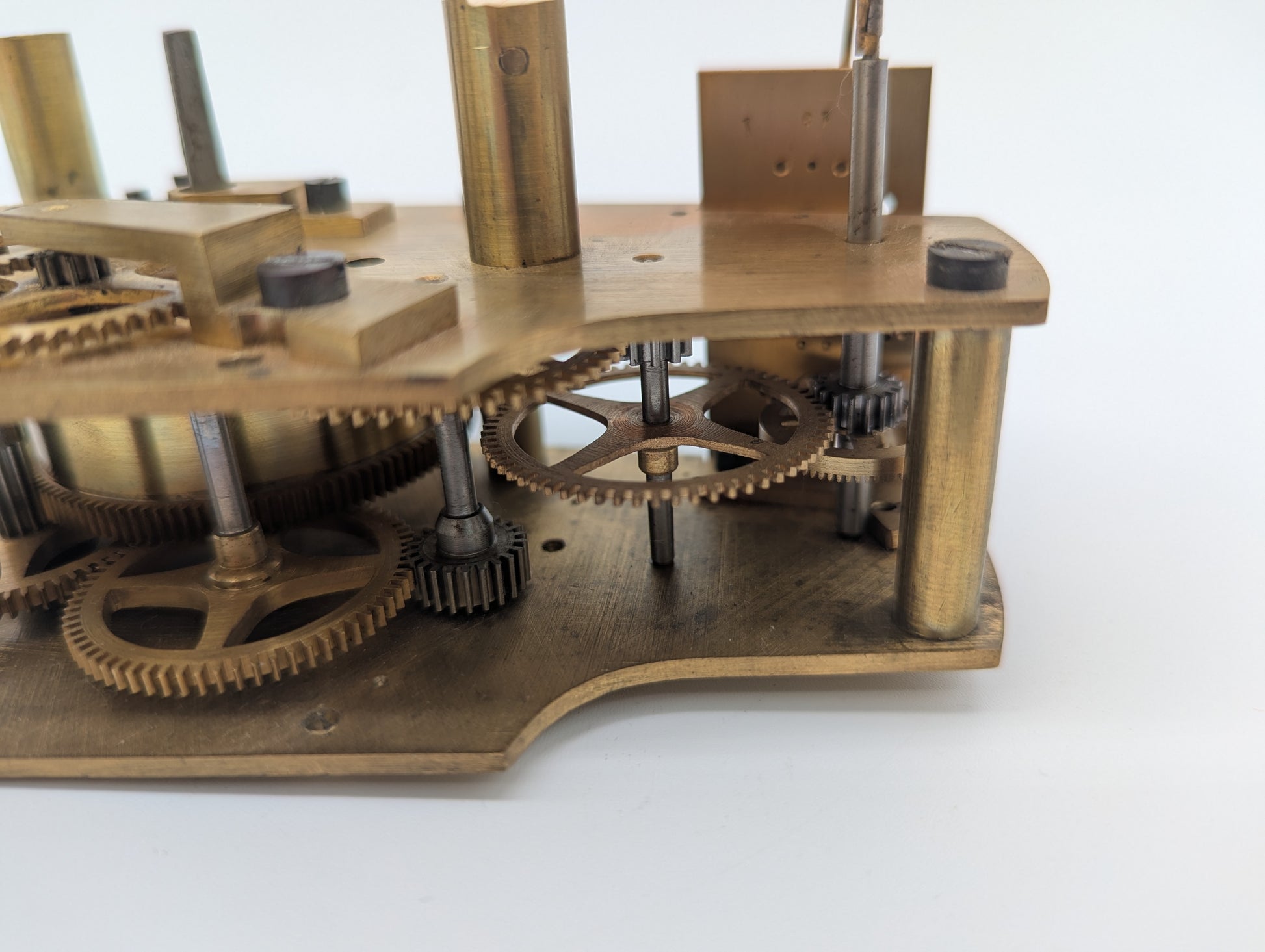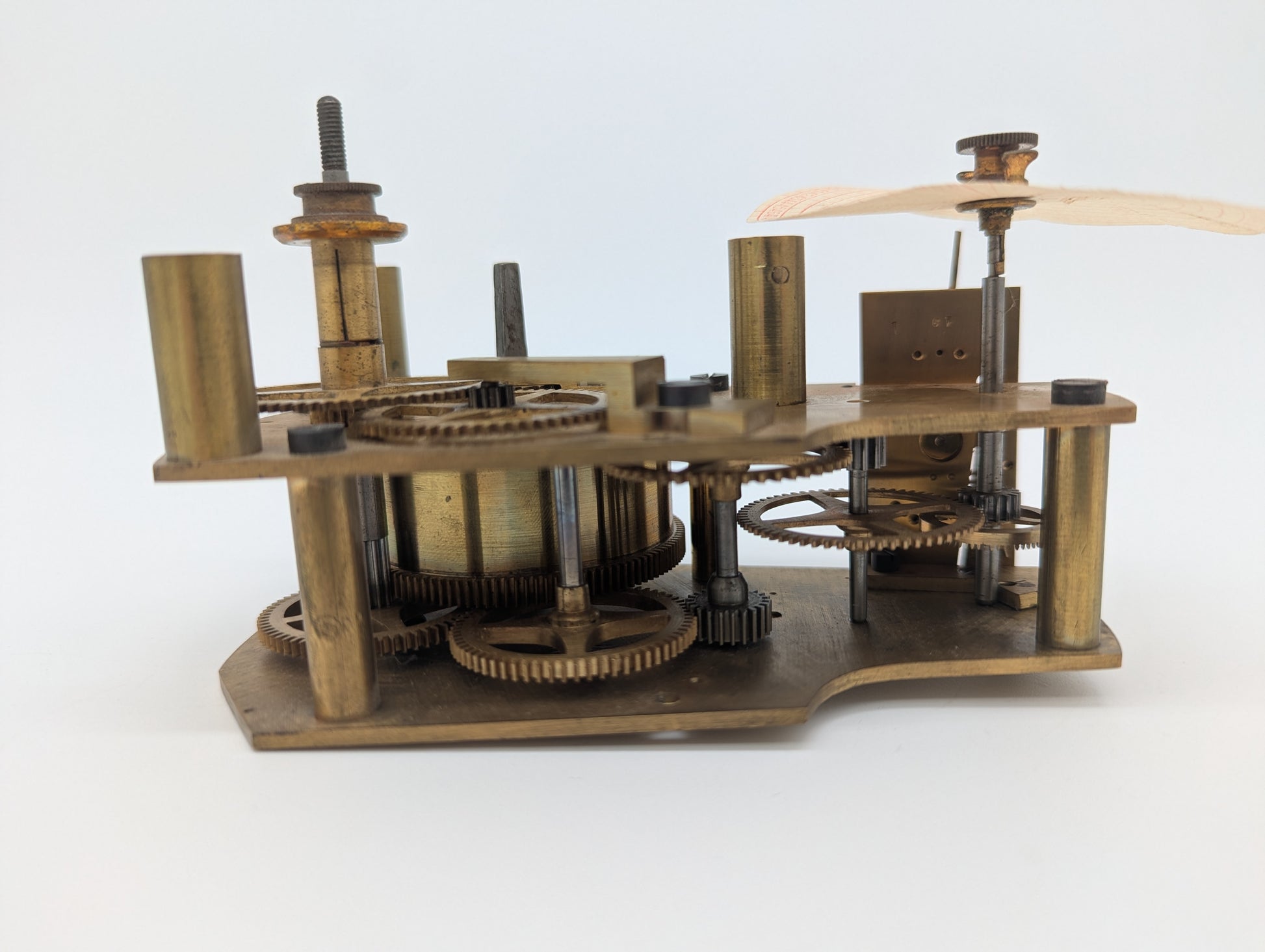Das Werk besitzt eine klassische Konstruktion mit Federhaus, Zahnrädern, Unruh und Regulierskala („Fast / Slow“). Auffällig ist die aufgesetzte Diagrammscheibe, die in Sekunden und Minuten unterteilt ist. Während das Werk läuft, konnte ein Schreibstift oder Hebel Markierungen auf die Scheibe setzen, sodass sich zeitliche Abläufe oder Messwerte nachvollziehen ließen.