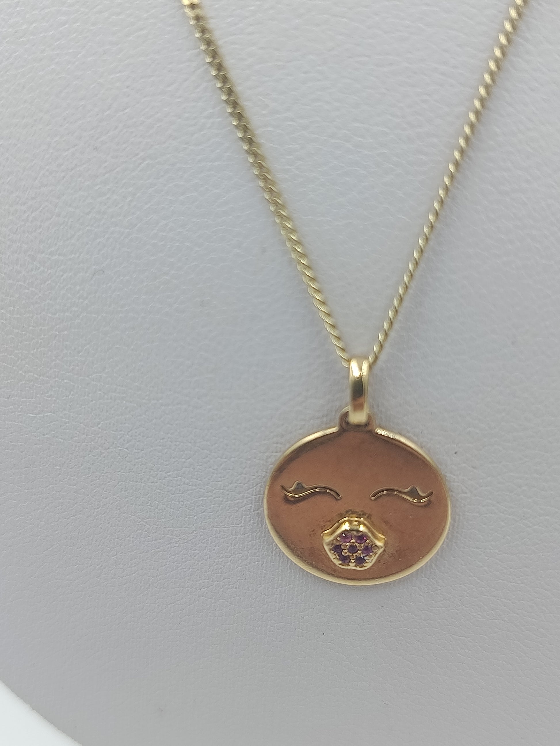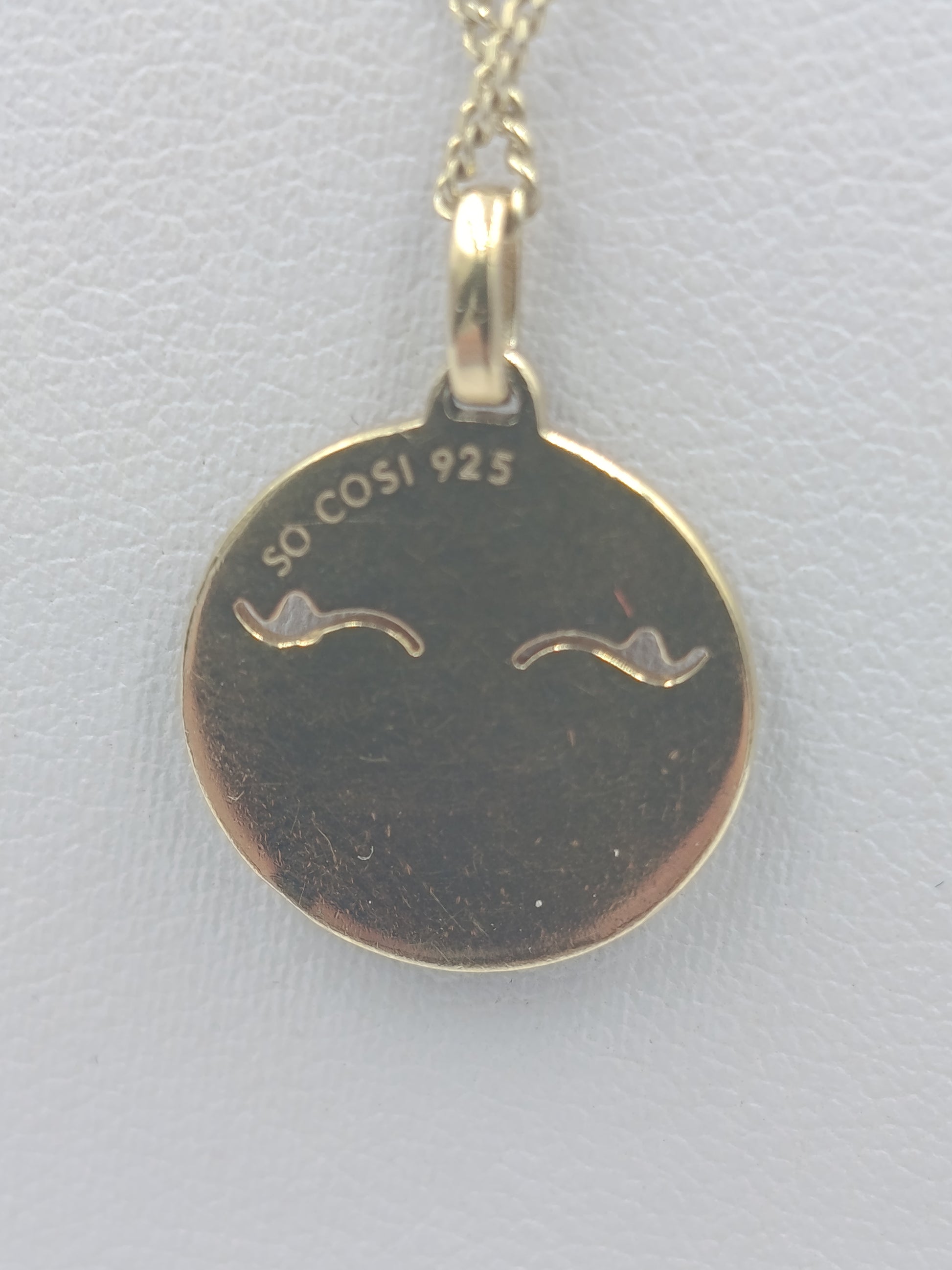 Vergoldete 925 Silberkette mit rundem Emoji Anhänger