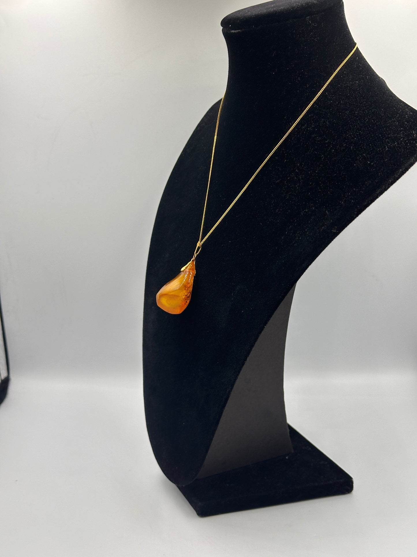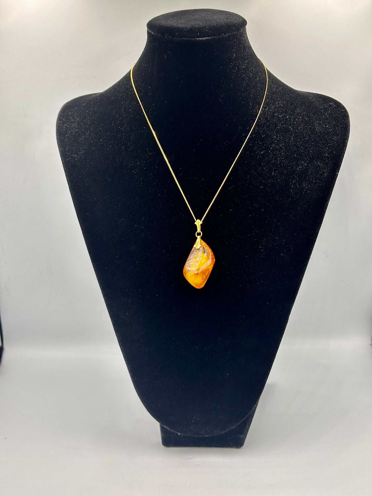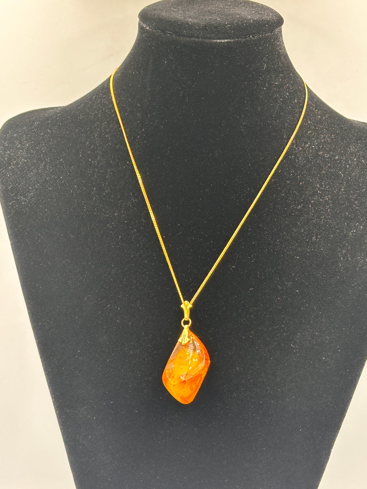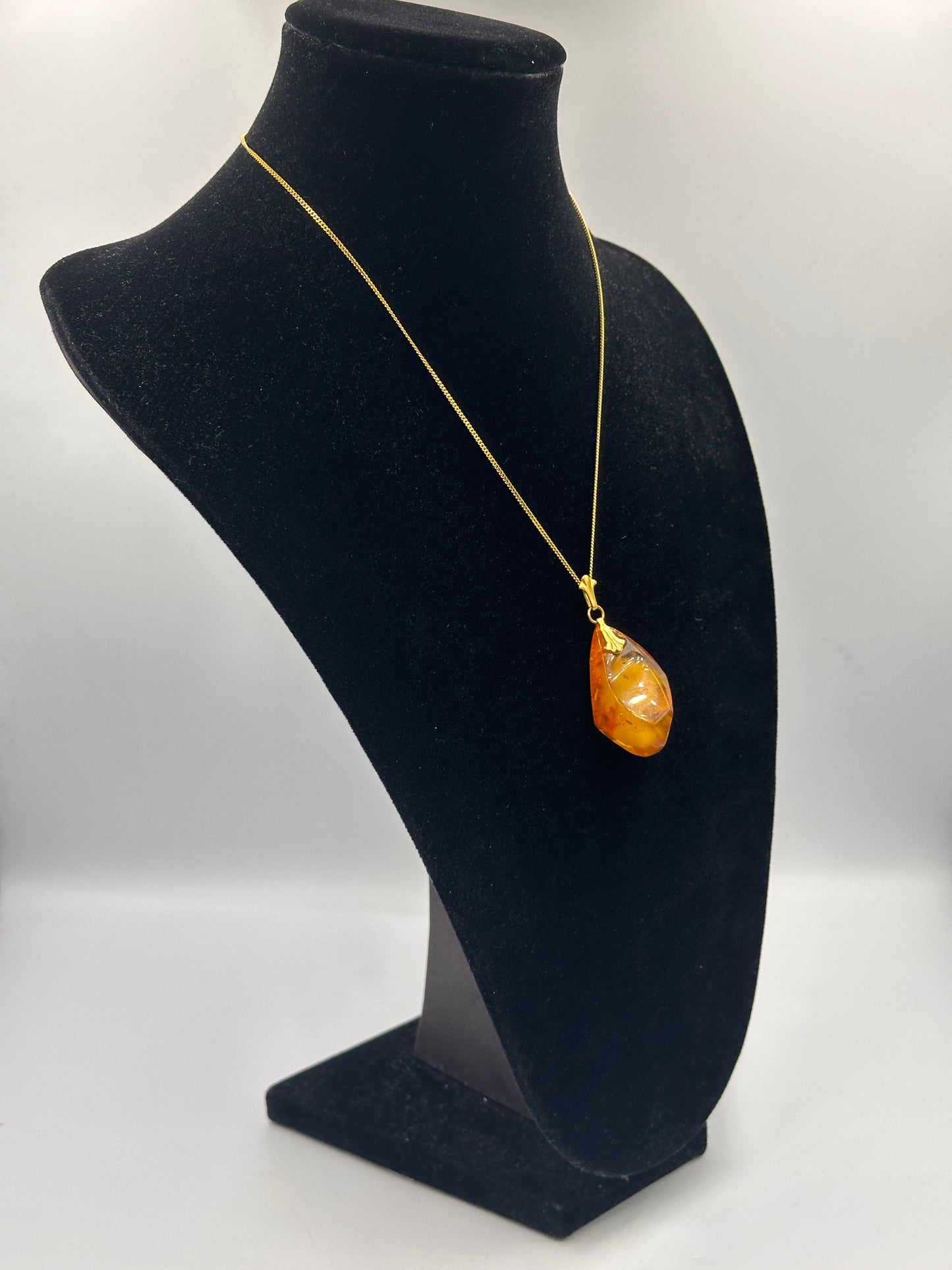 Diese elegante vergoldete Halskette ist mit einem wunderschönen Bernstein-Anhänger versehen und verleiht Ihrem Look einen Hauch von Raffinesse und Natürlichkeit.