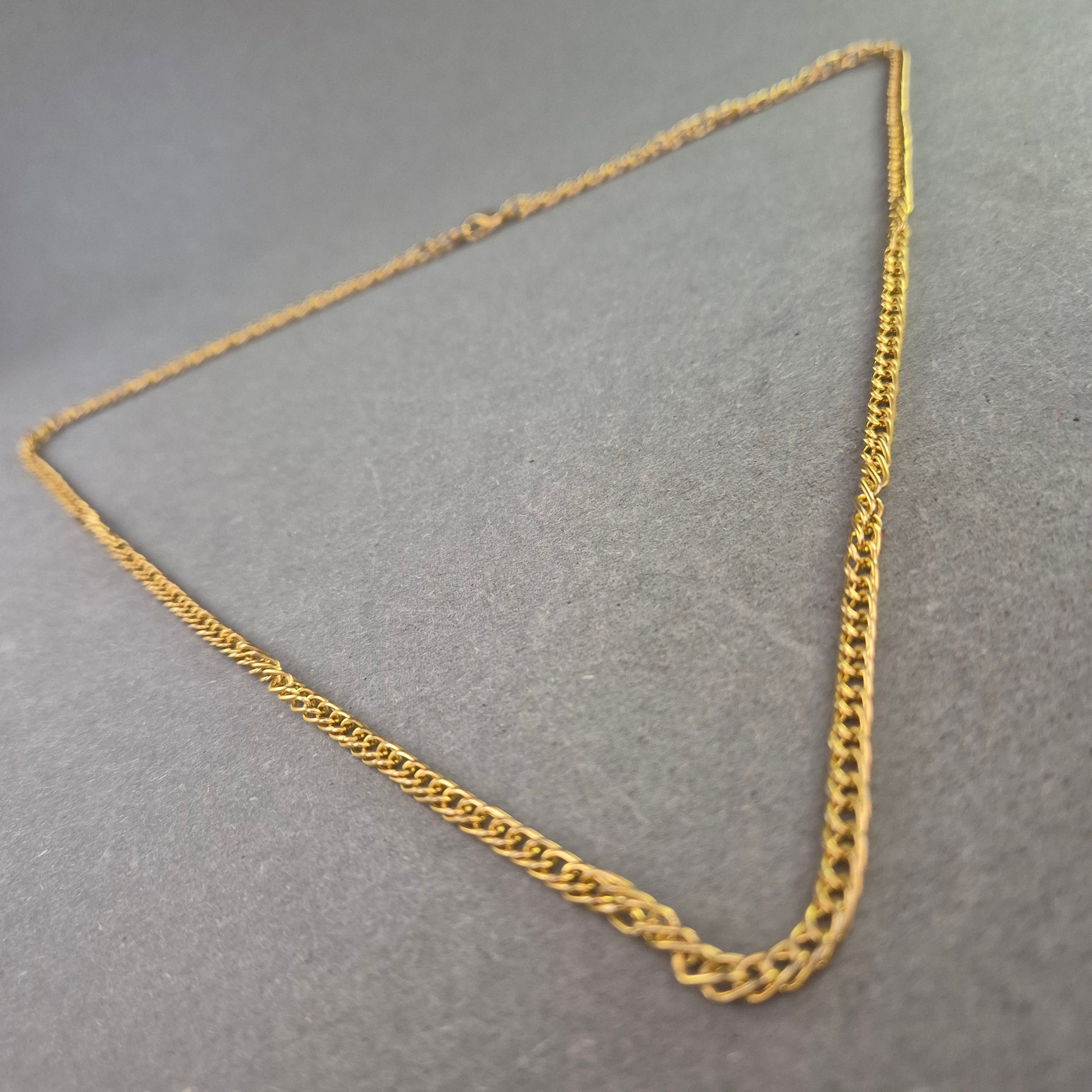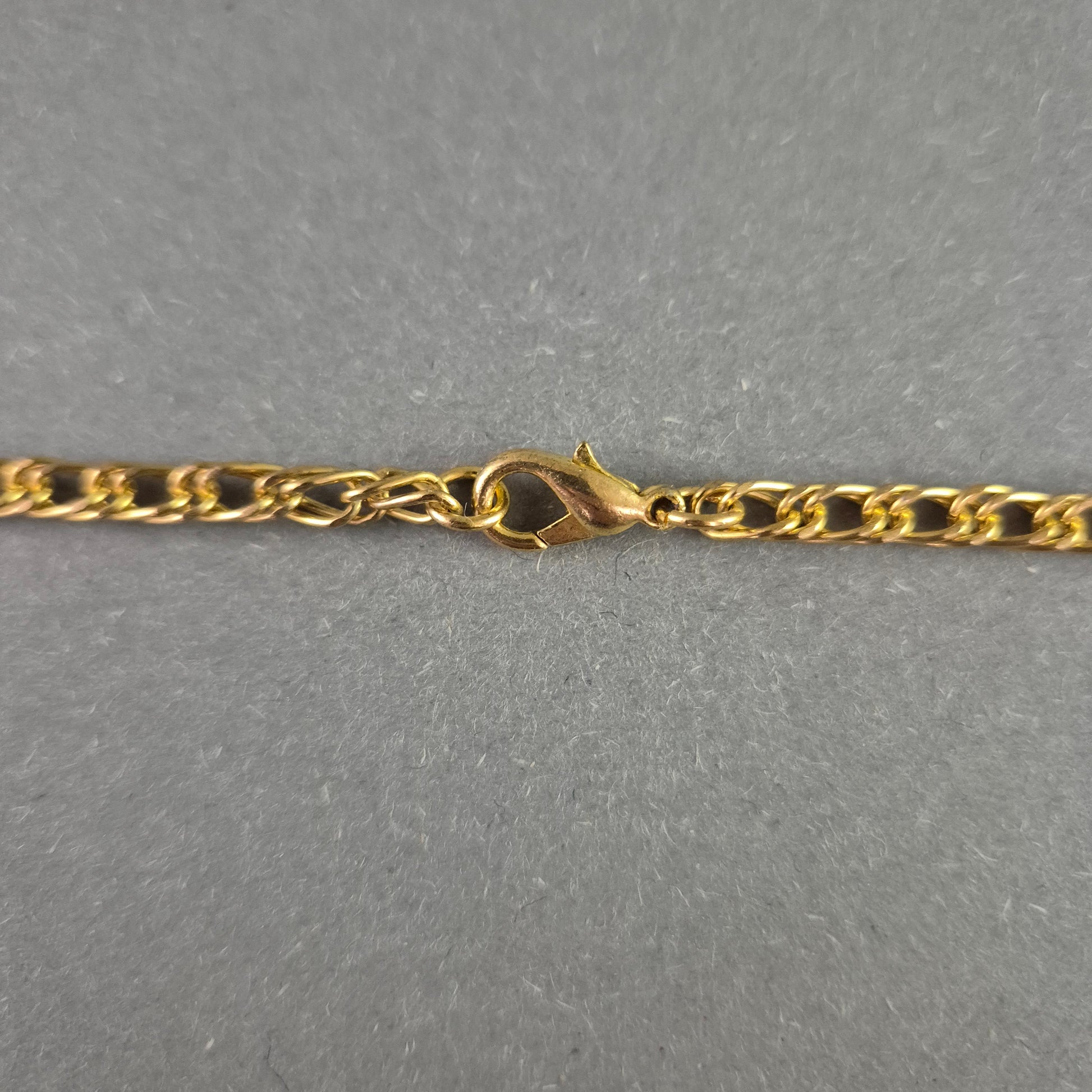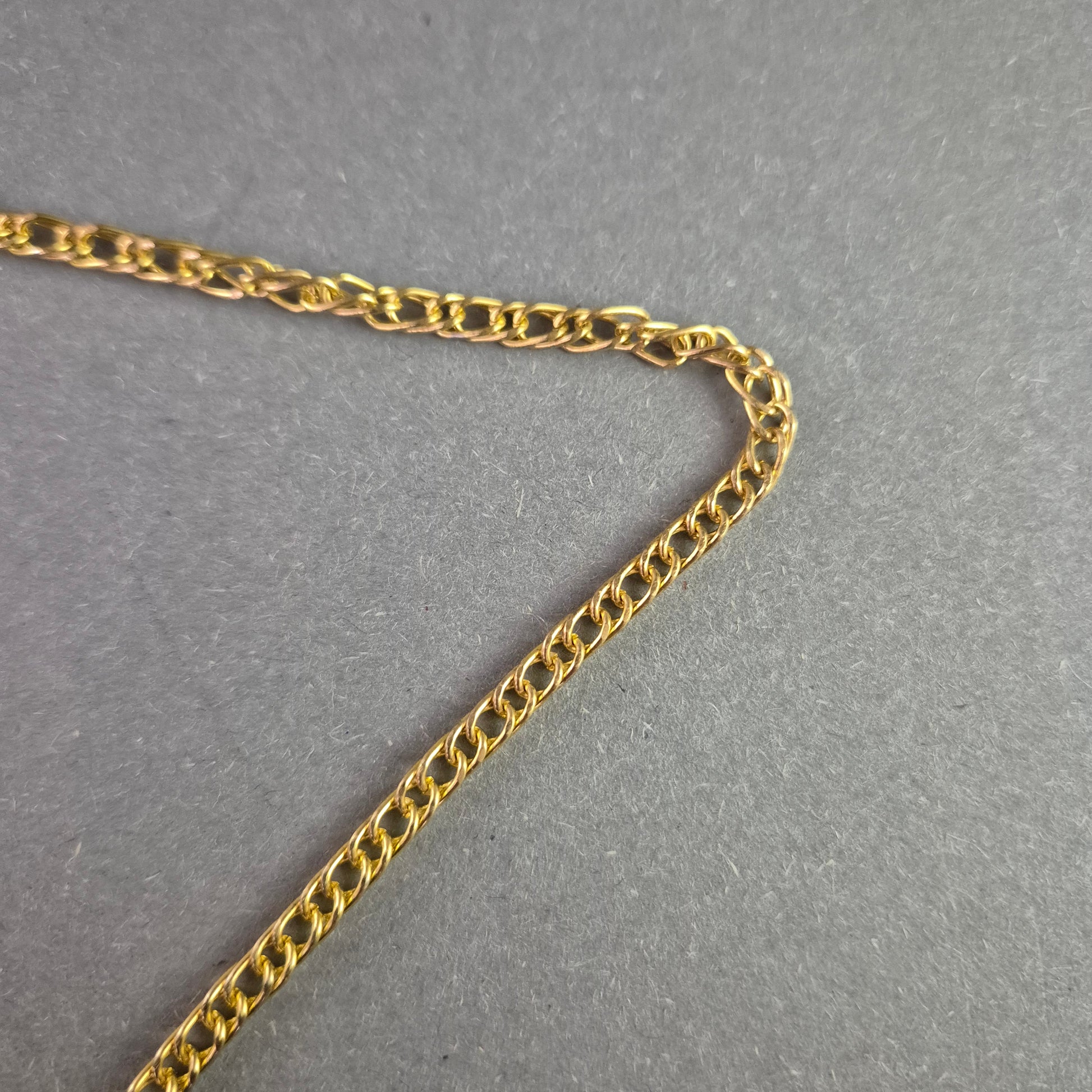 Diese Panzerkette überzeugt mit ihrem klassischen Look und einer glänzenden goldfarbenen Oberfläche. Die dichte Gliederstruktur sorgt für einen maskulinen, aber dennoch eleganten Stil, der sich sowohl solo als auch mit einem Anhänger tragen lässt. Dank des stabilen Karabinerverschlusses sitzt die Kette sicher am Hals.
