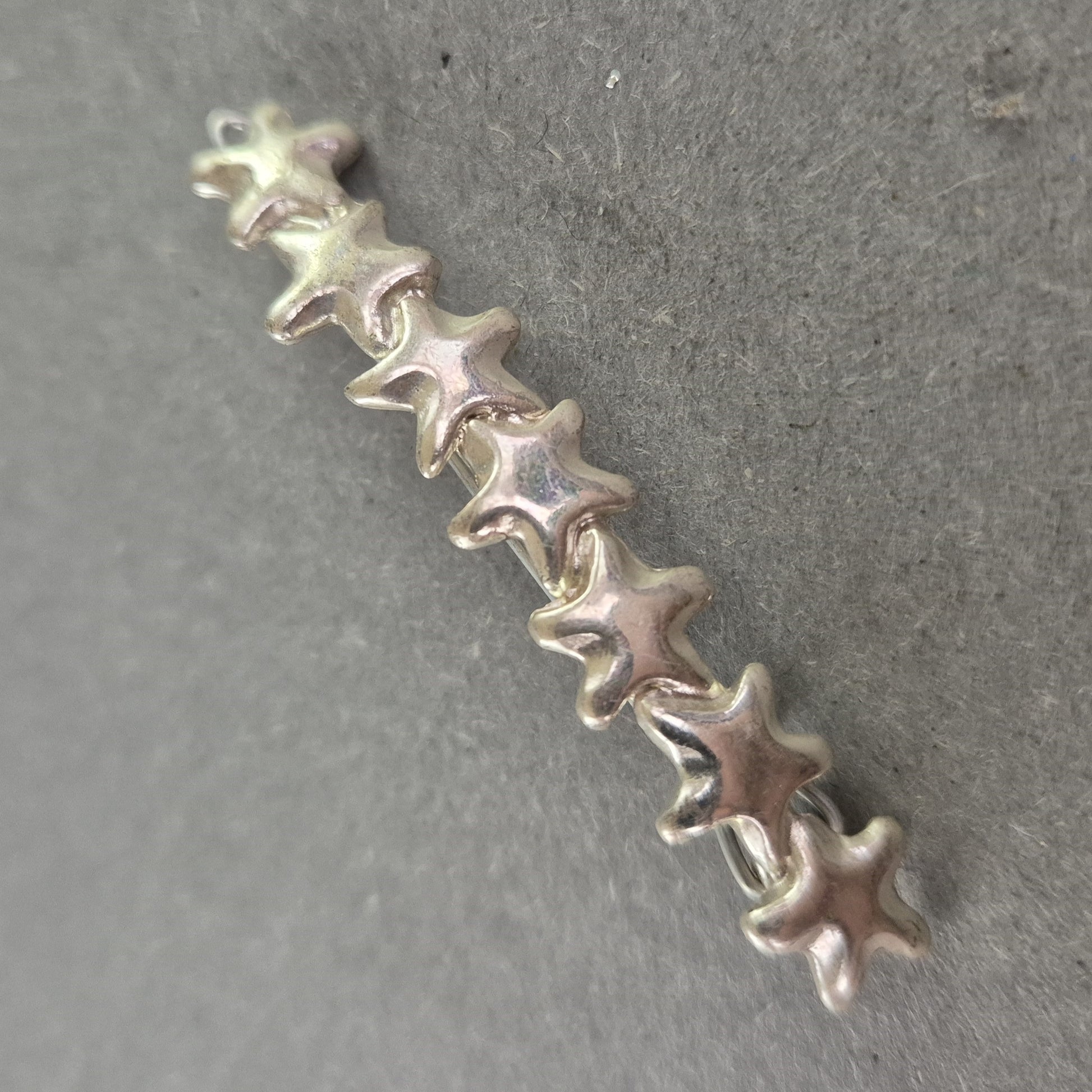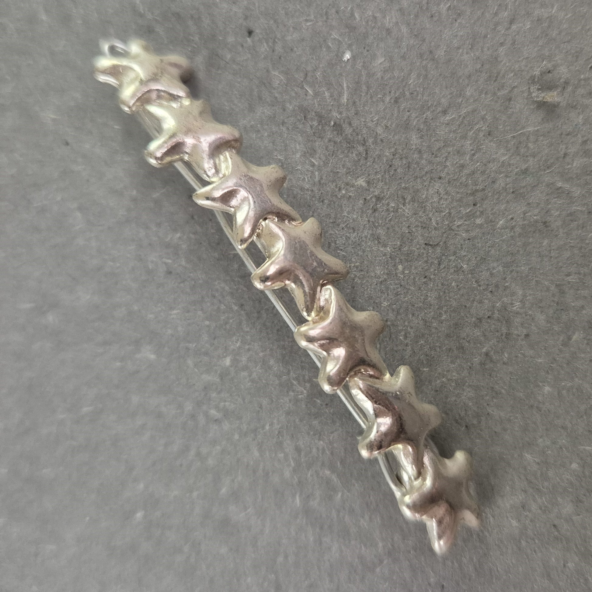 Dieser kreative Anhänger in Sternform überzeugt durch sein modernes, verspieltes Design. Die kleine Sternreihe ist an einem silberfarbenen Draht befestigt, der als Öse dient – ideal zur Befestigung an Reißverschlüssen, Taschen, Schlüsselringen oder als dekoratives Element an Halsketten. Die glänzende Oberfläche verleiht dem Stück einen charmanten Look.