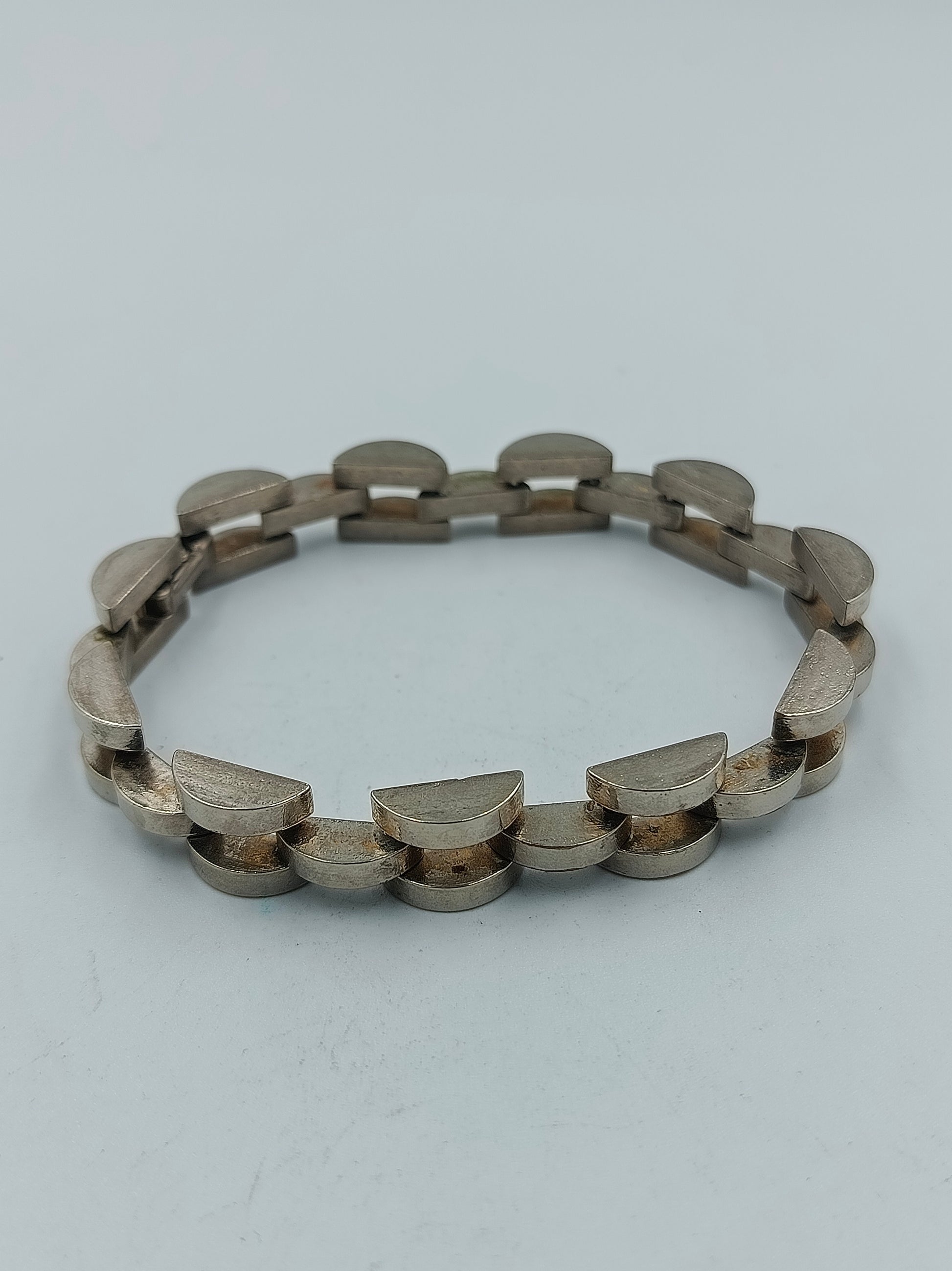 Auffälliges versilbertes Armband mit halbmondförmigen Gliedern Vintage Stil 20 cm
