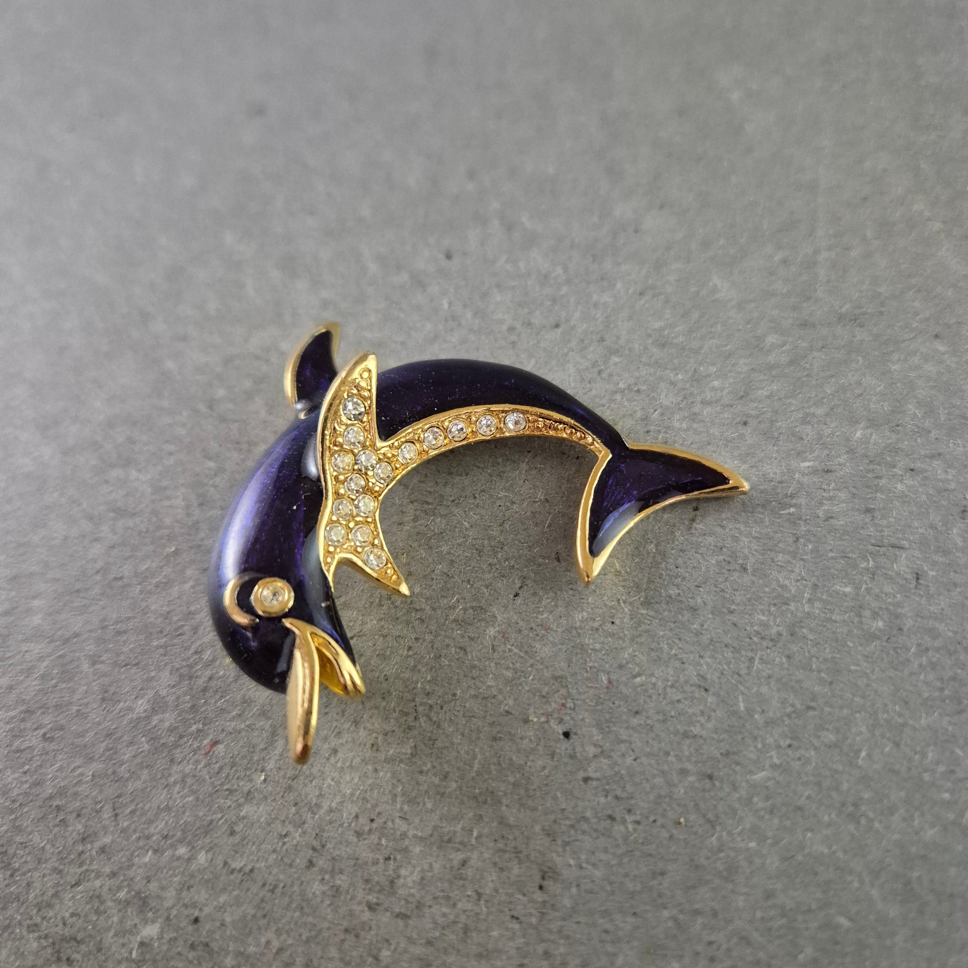 Verspielte Delfin-Brosche in Lila mit Strass und Goldoptik