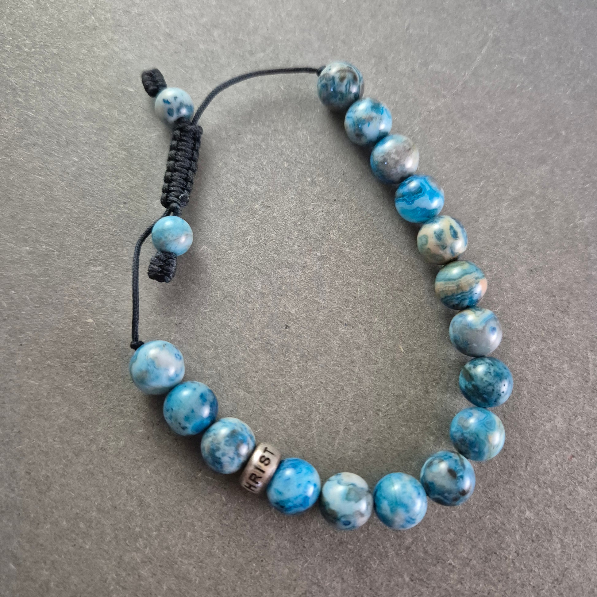 Verstellbares Stein Armband – Blaue Jaspis-Optik mit "CHARISMA"-Bead