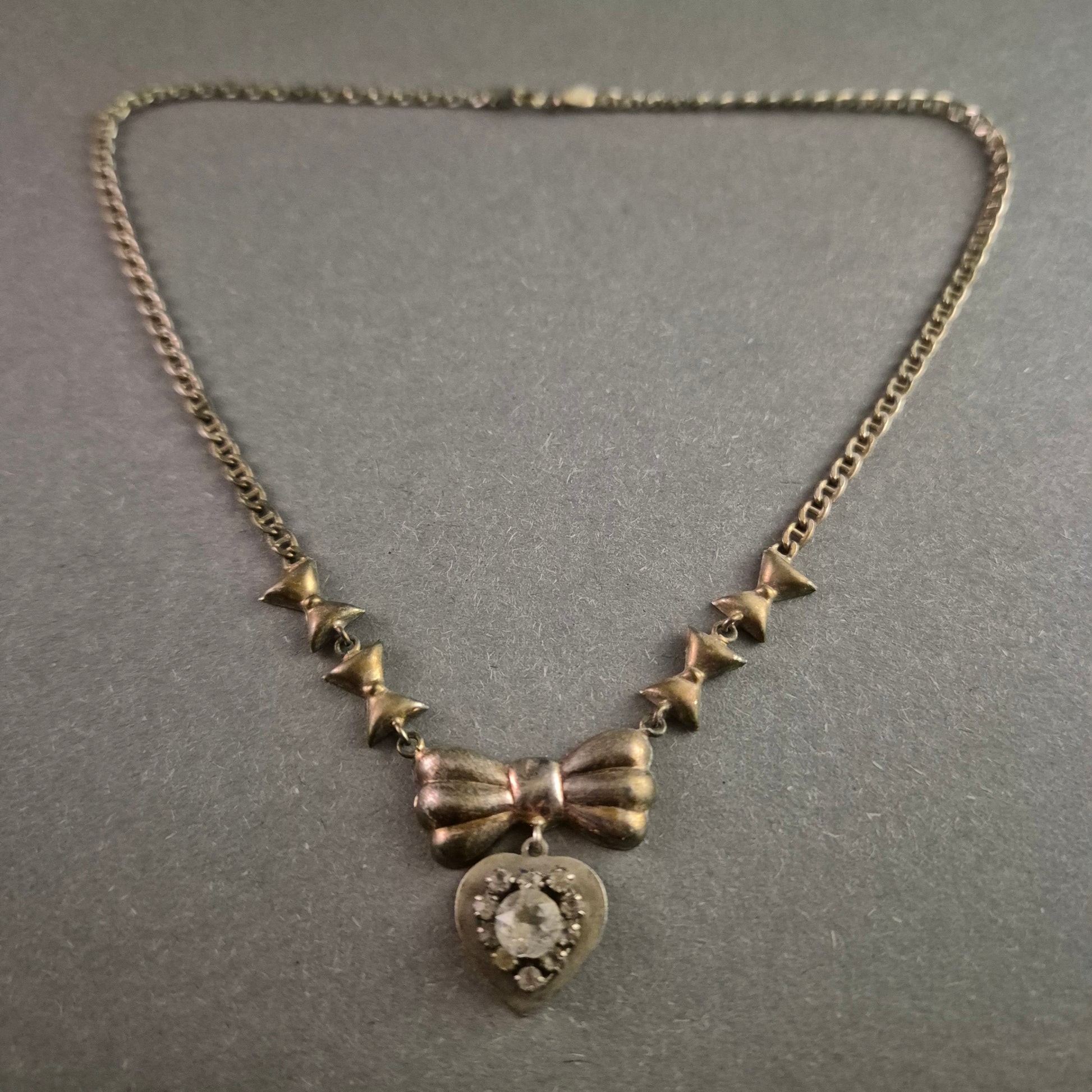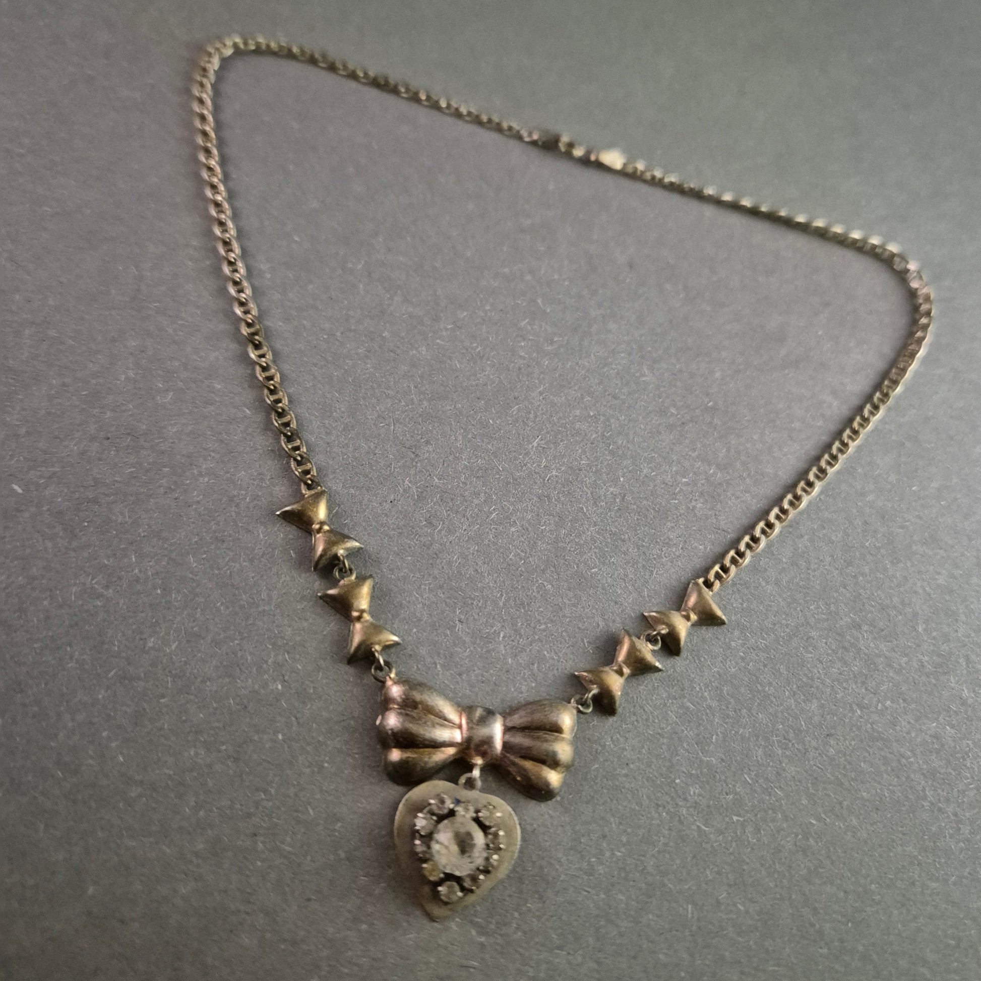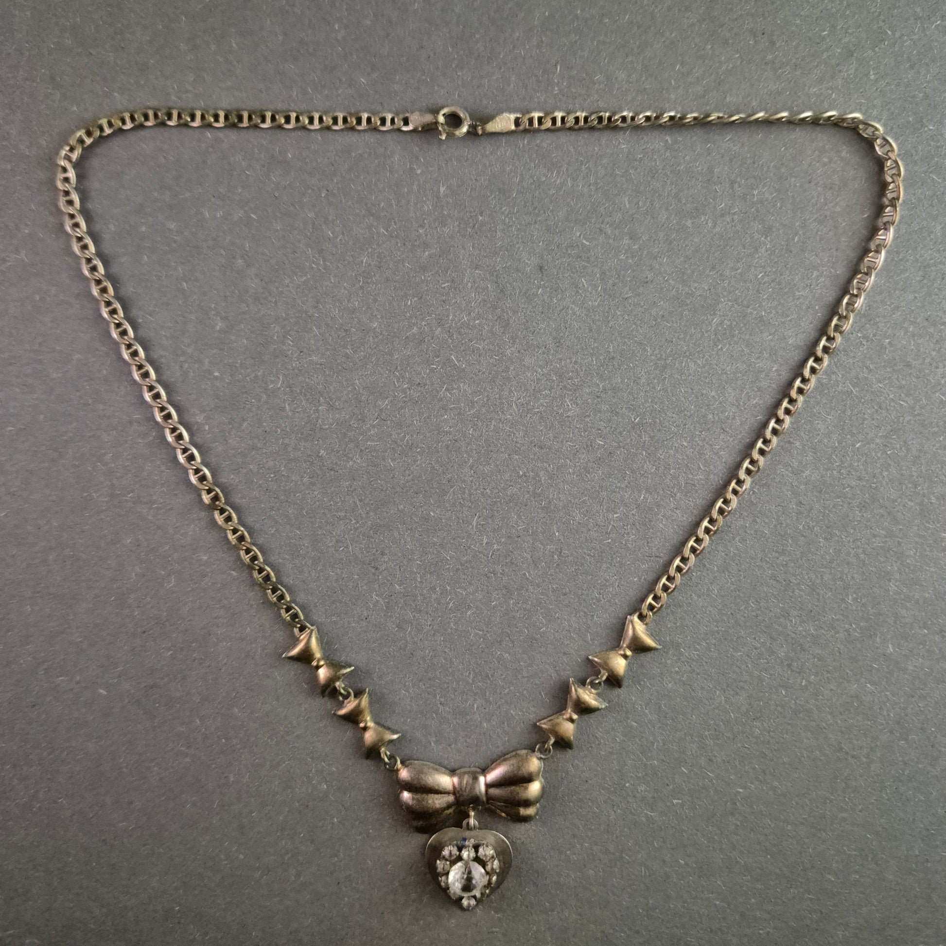 Vintage 925 Silberkette mit Schleifen & Herzanhänger – Elegante Romantik