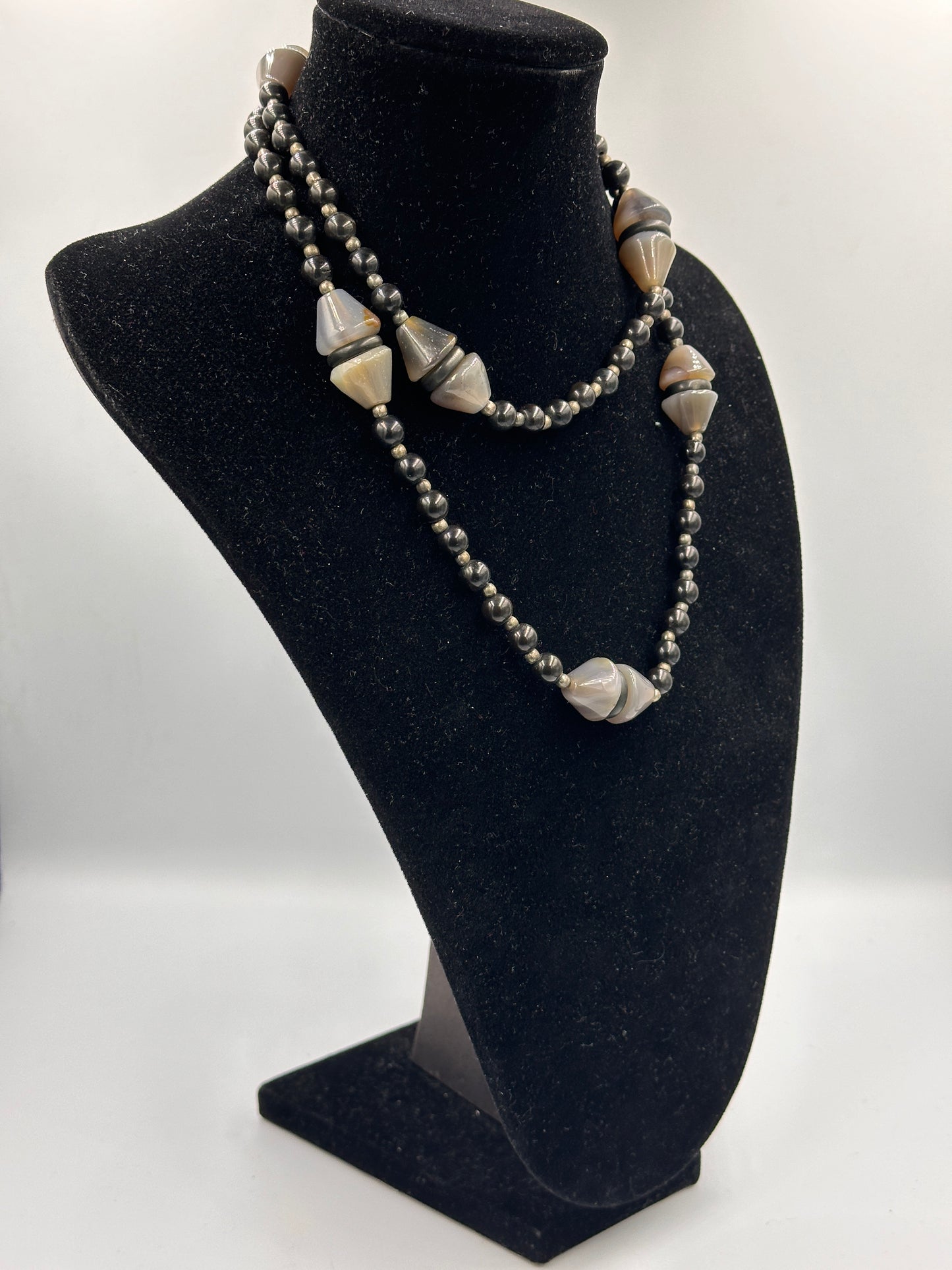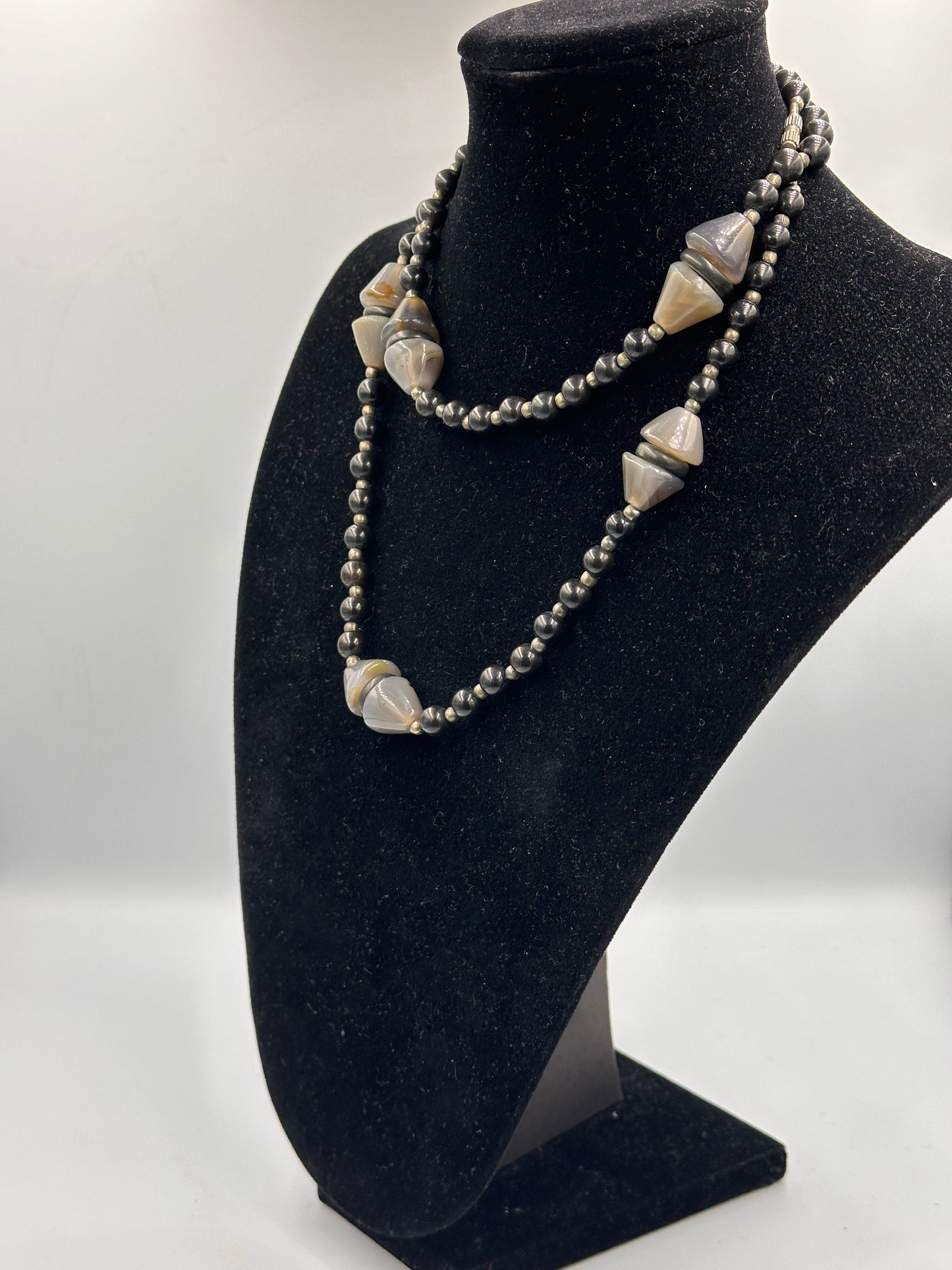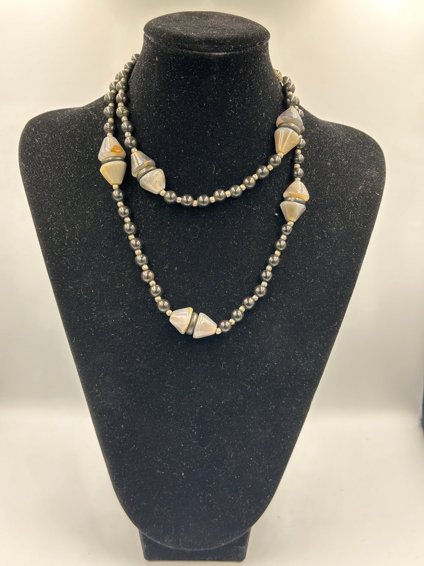 Vintage Afrika Perlenkette mit Onyx und Marmor