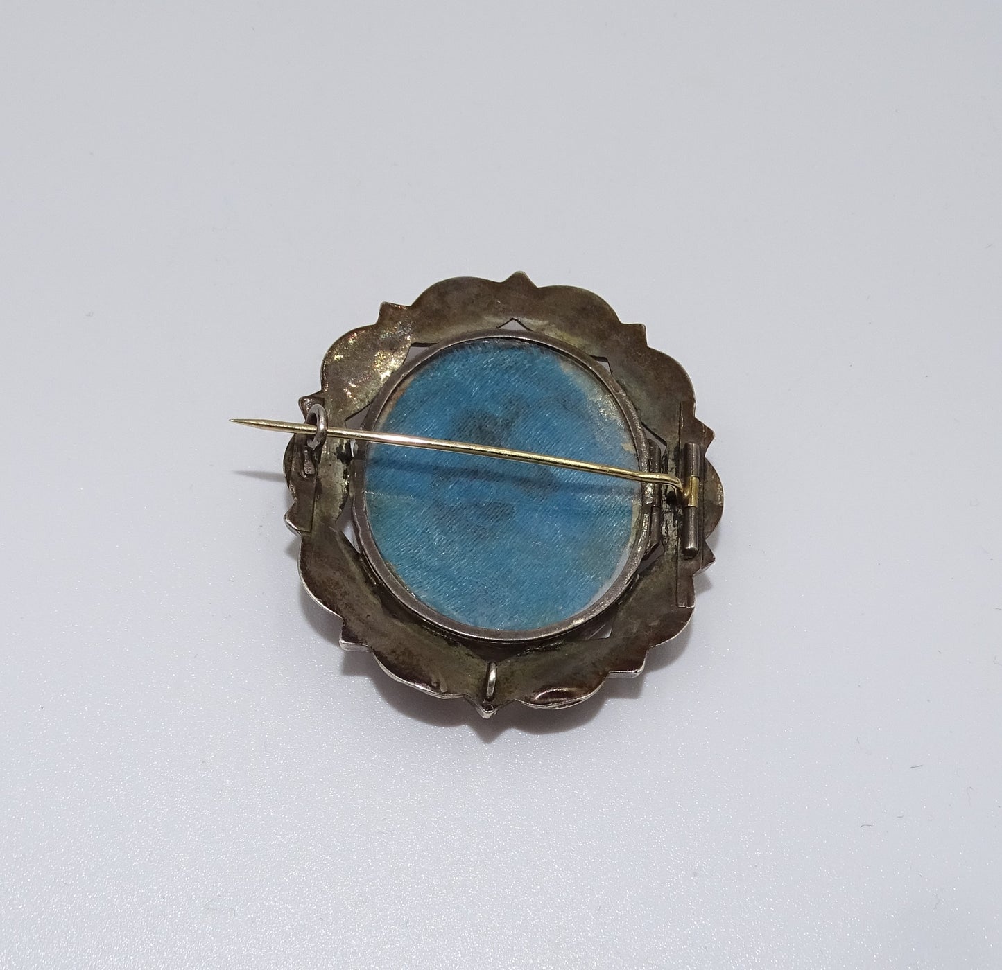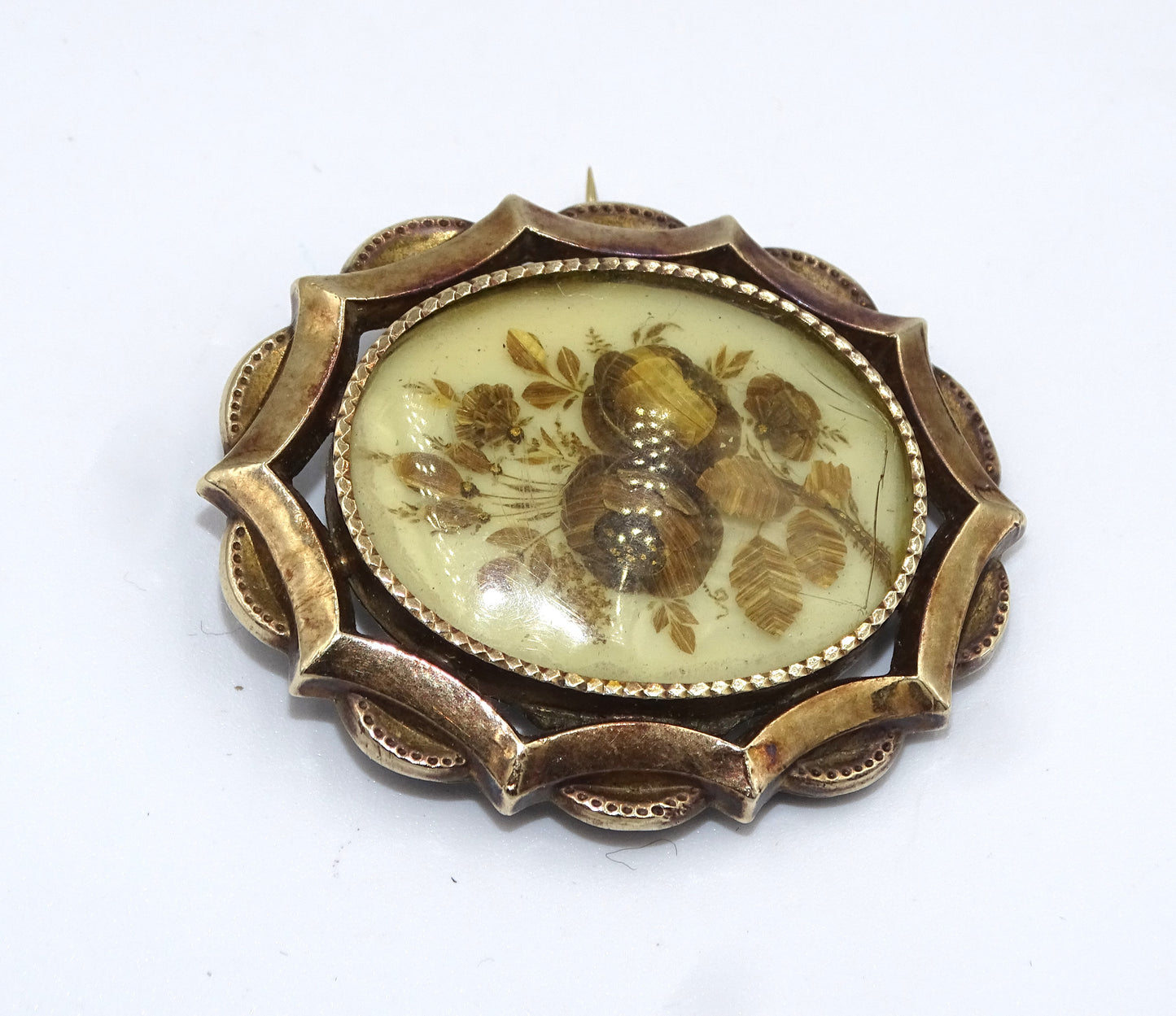 Vintage Anhänger / Brosche mit Vergoldung und getrockneten Blumen