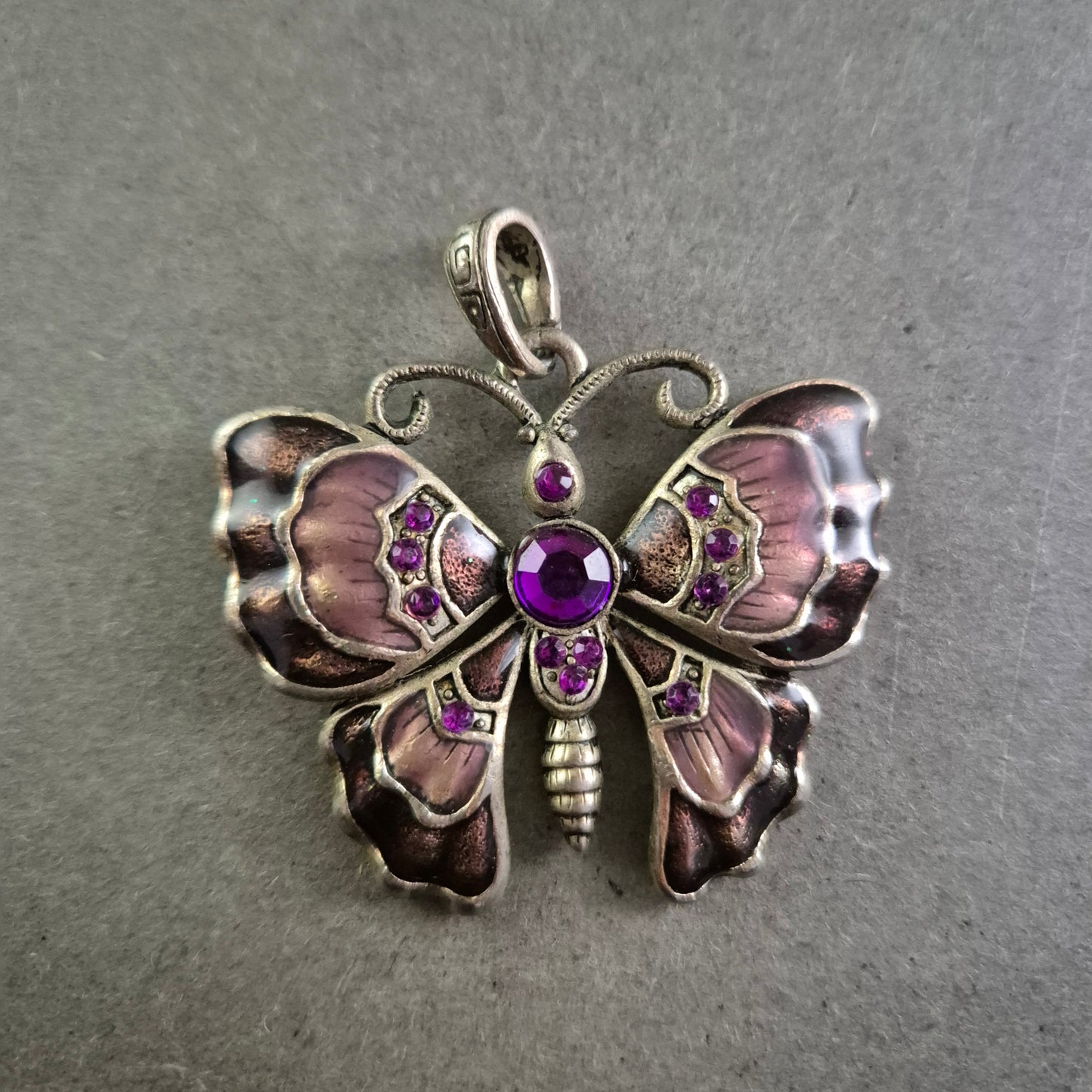 Vintage-Anhänger Schmetterling mit lila Steinen – Romantischer Look