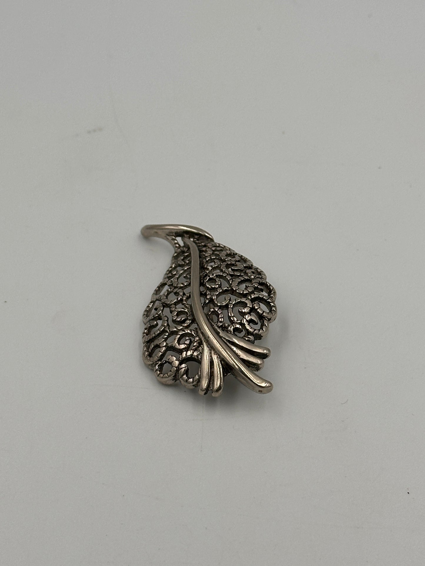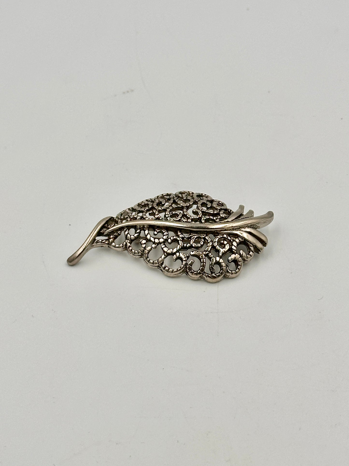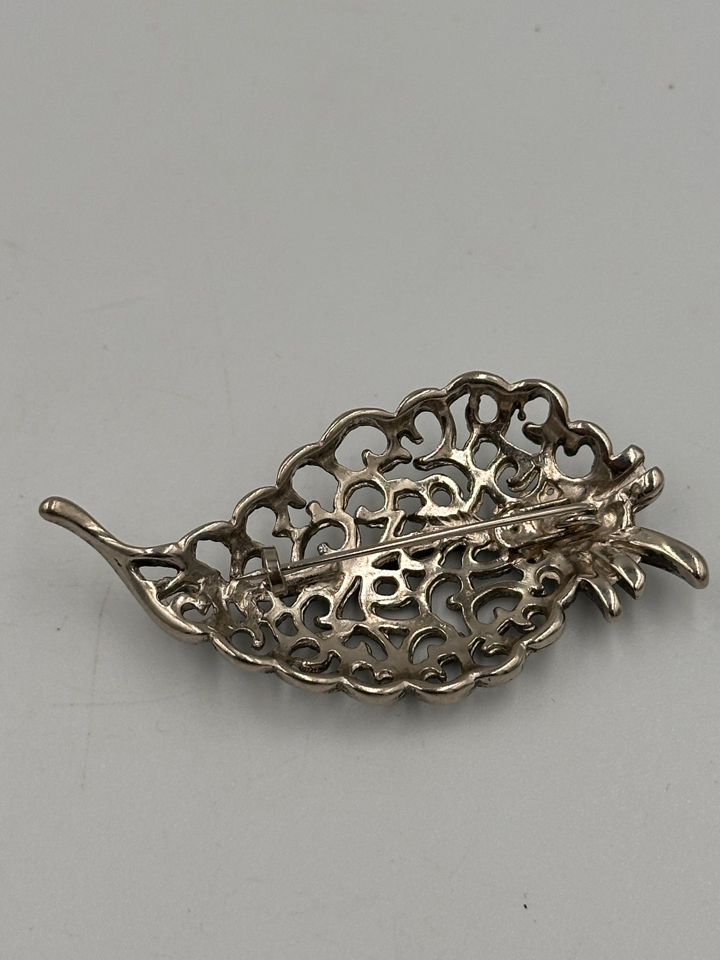 Verleihen Sie Ihrem Outfit einen Hauch von Retro-Chic mit dieser eleganten vintage Brosche in Blattform. Dieses Schmuckstück zeichnet sich durch seine sorgfältige Verarbeitung und zeitlose Schönheit aus, die jeden Look aufwertet.