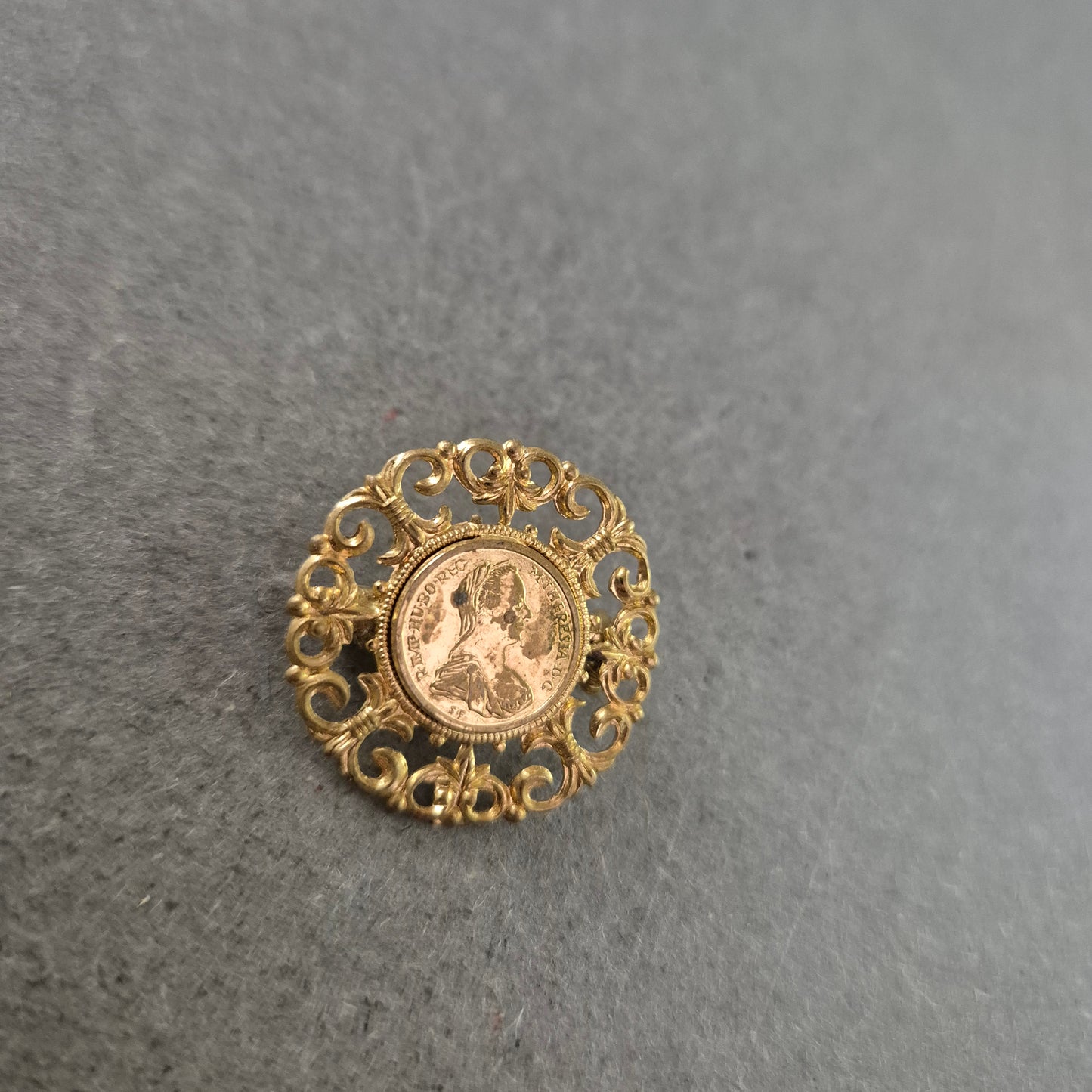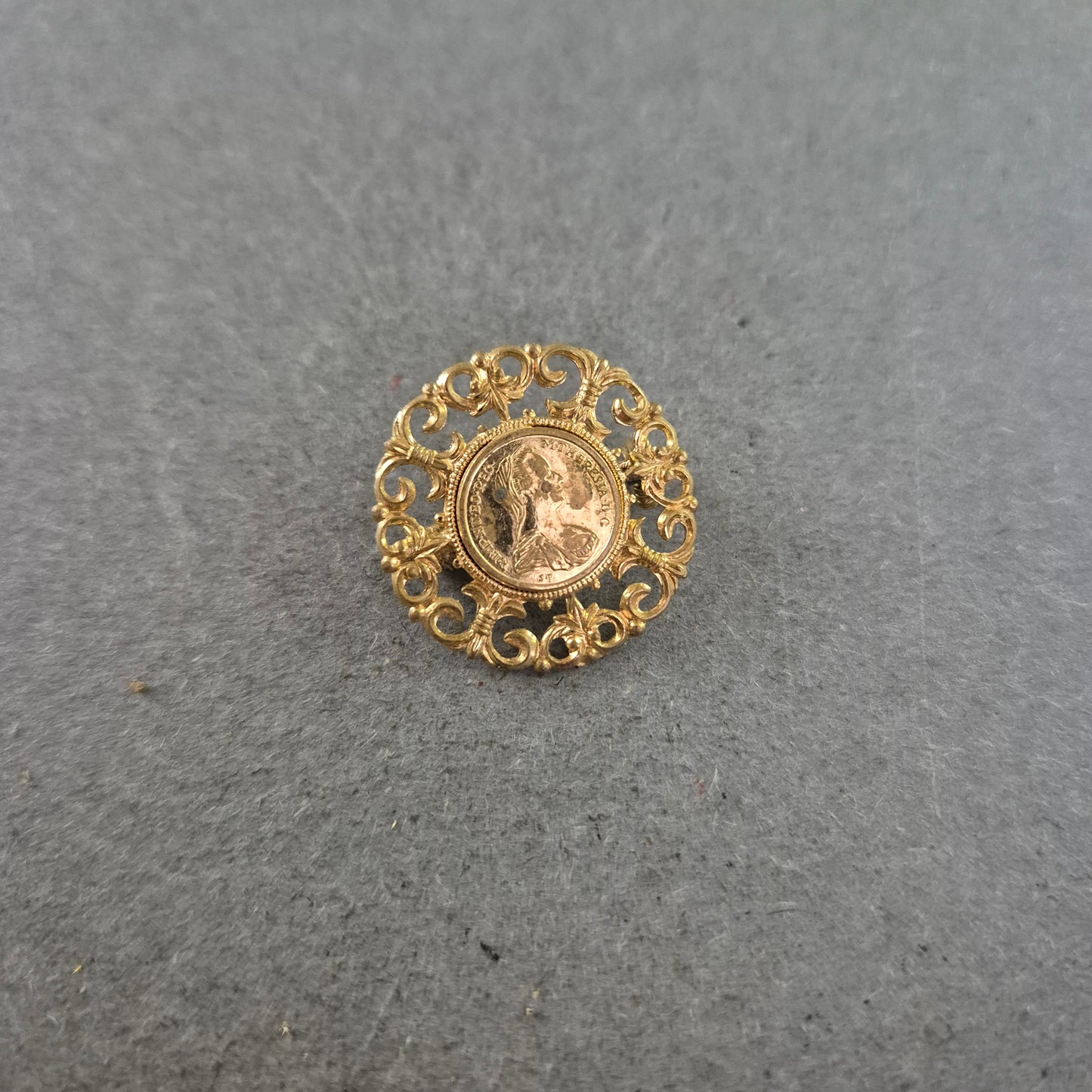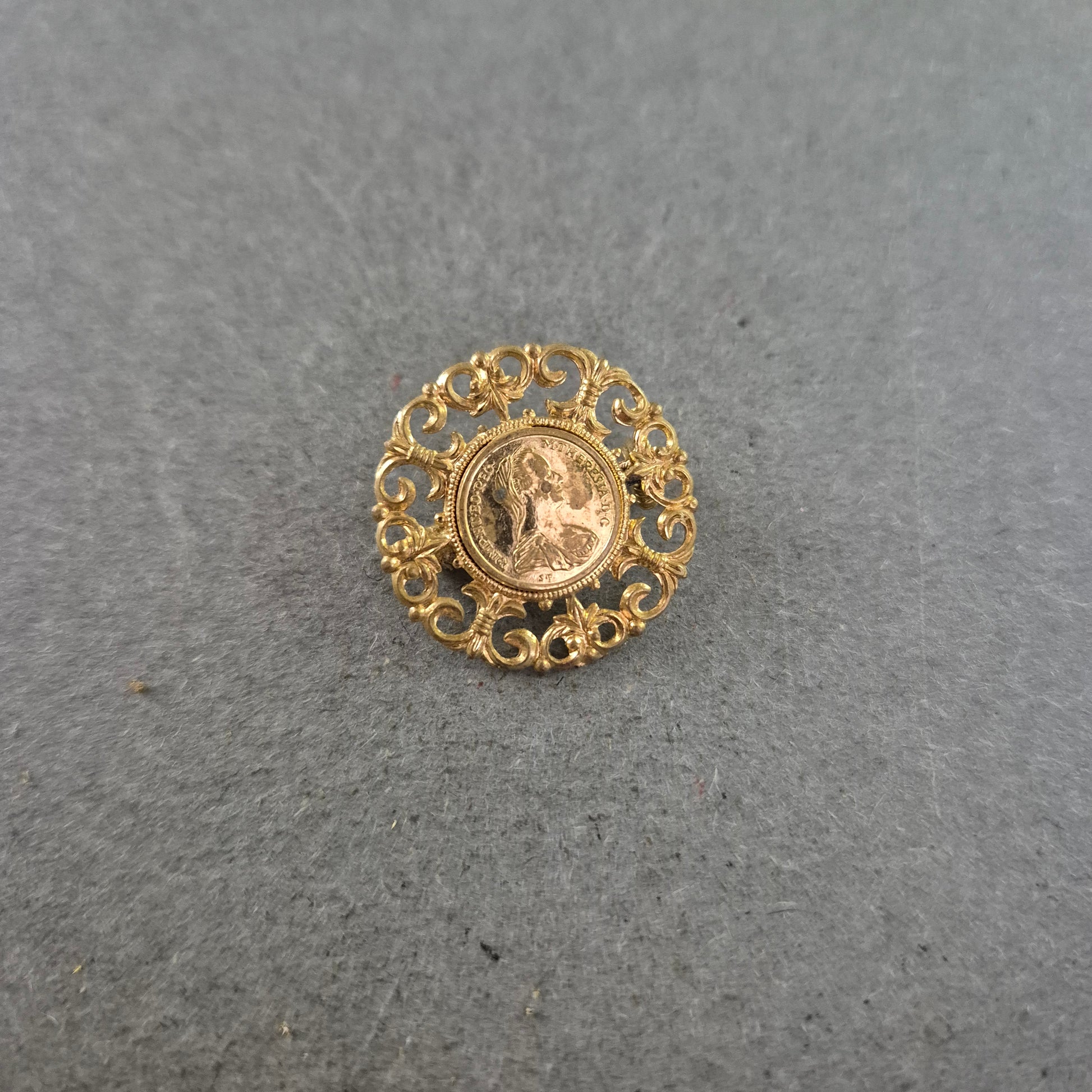 Vintage Brosche Gold – Filigranrahmen & Portrait Münze