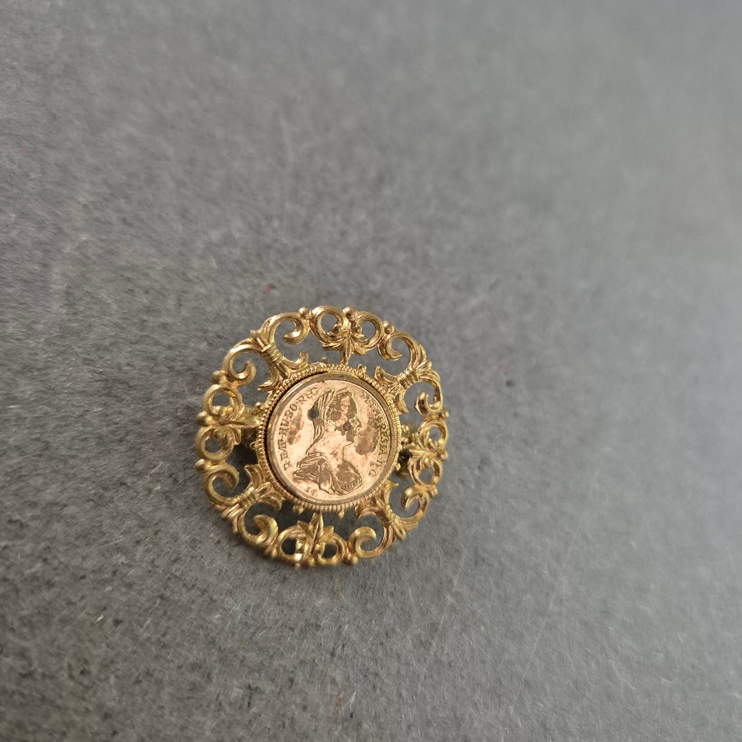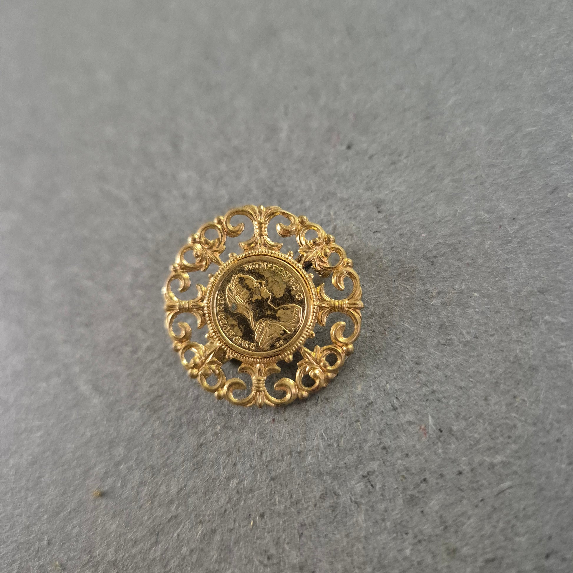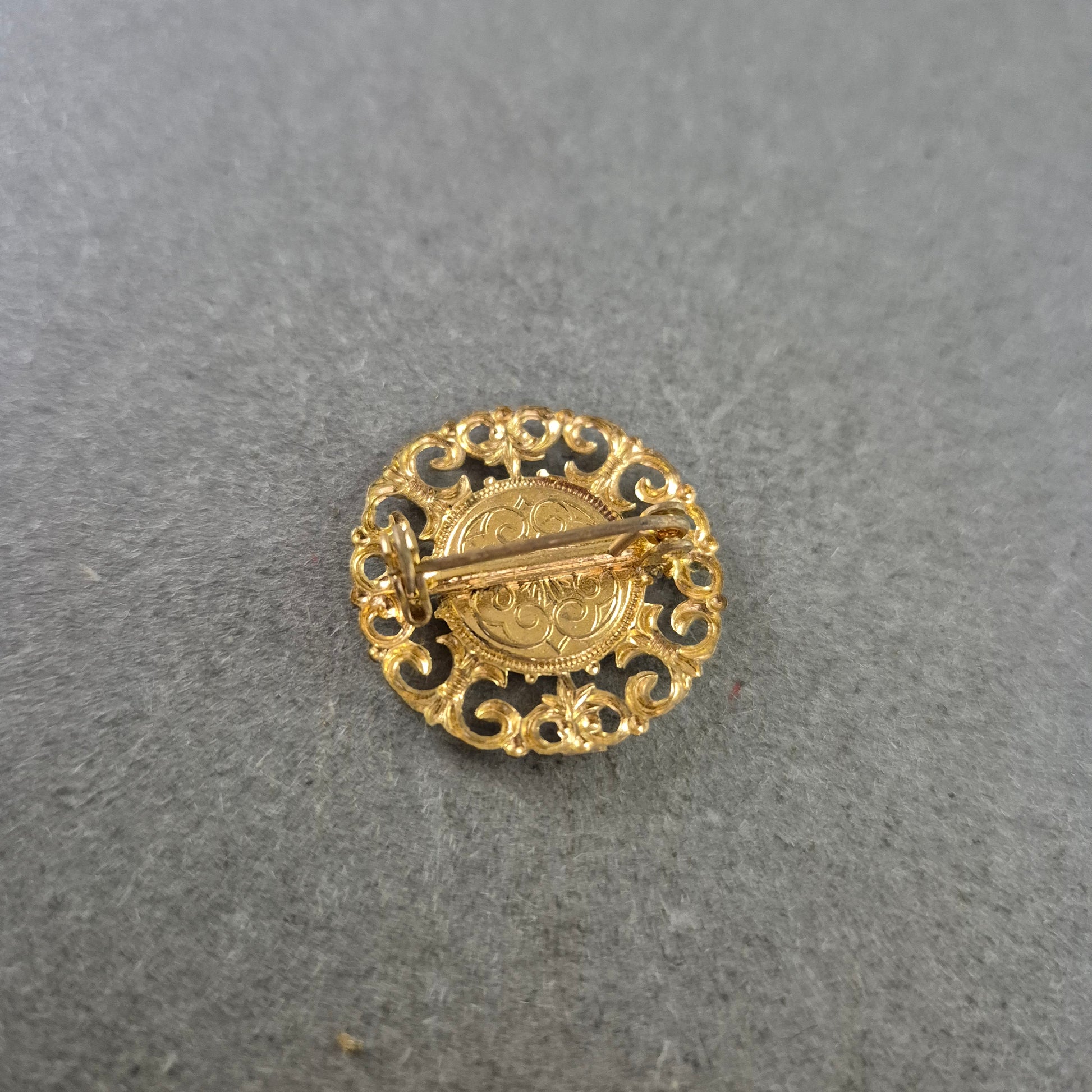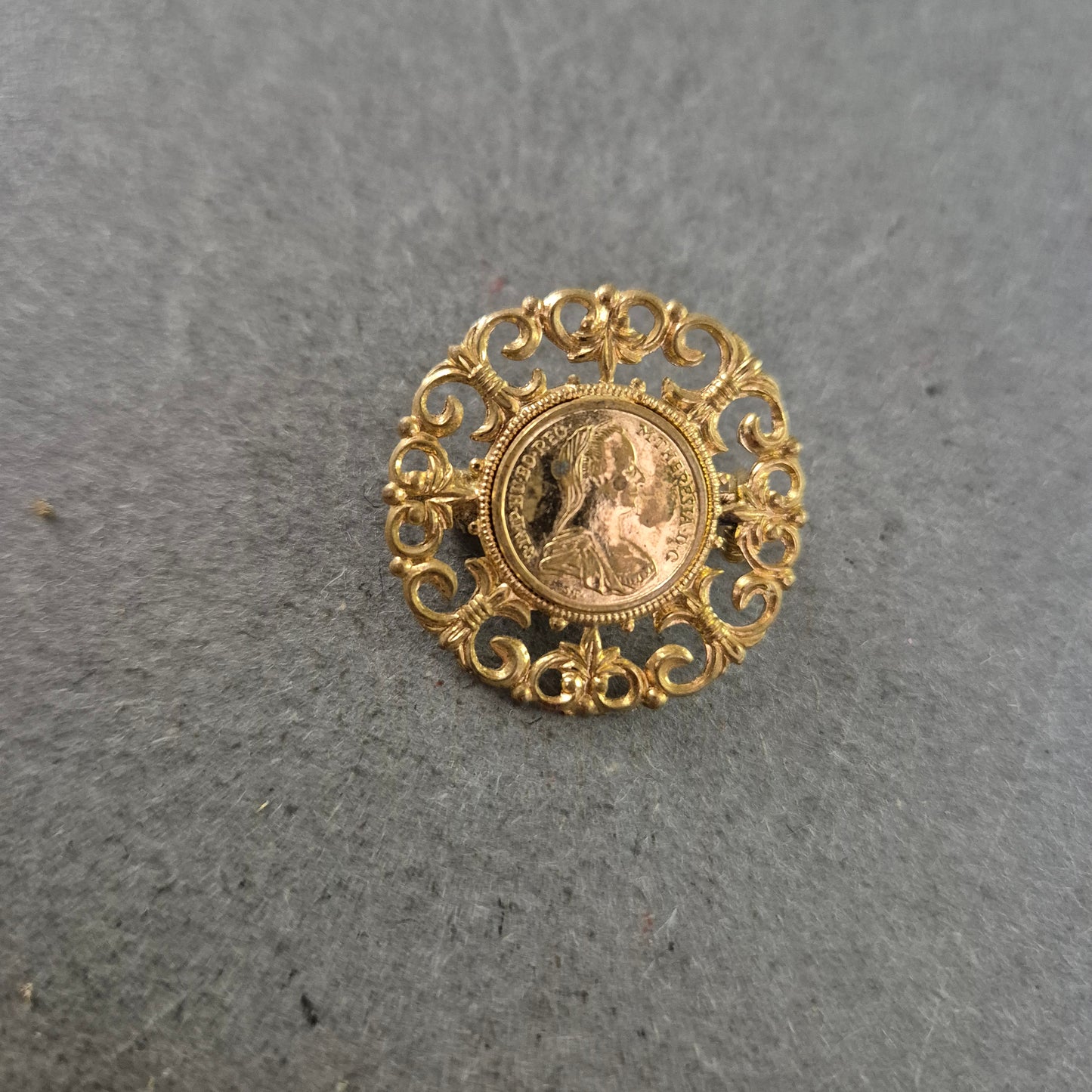 Vintage Brosche Gold – Filigranrahmen & Portrait Münze