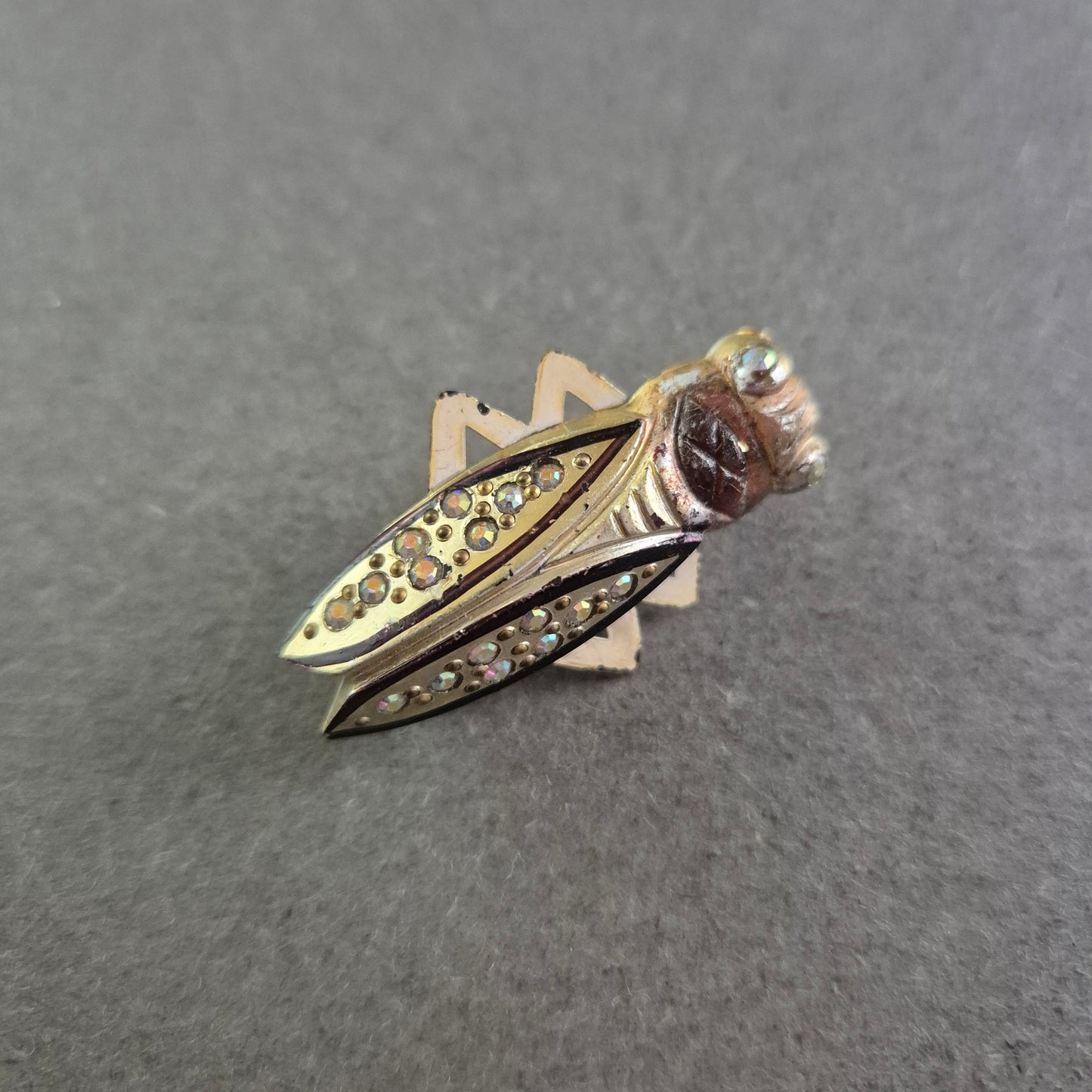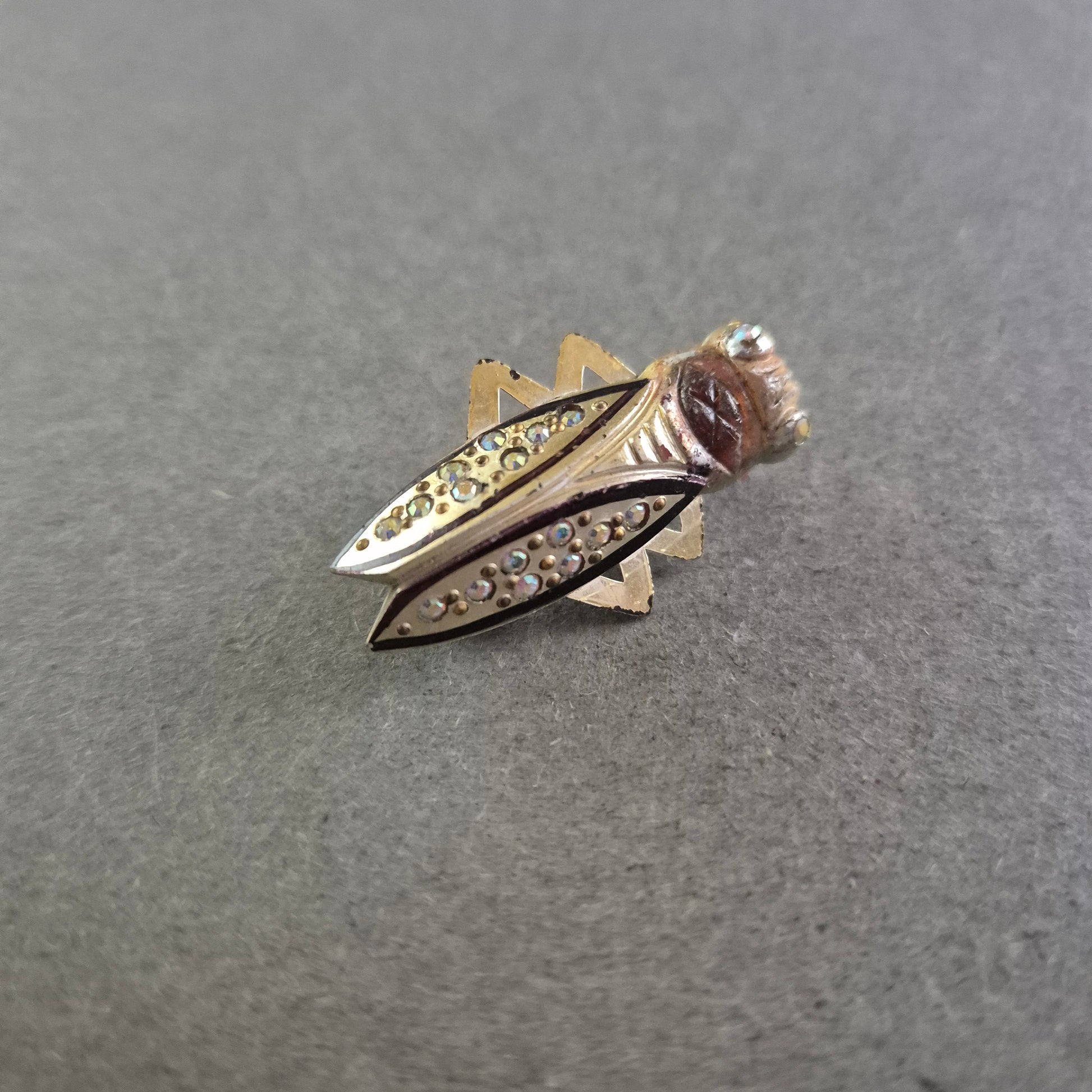 Vintage Brosche in Insektenform mit Strass und Emaille