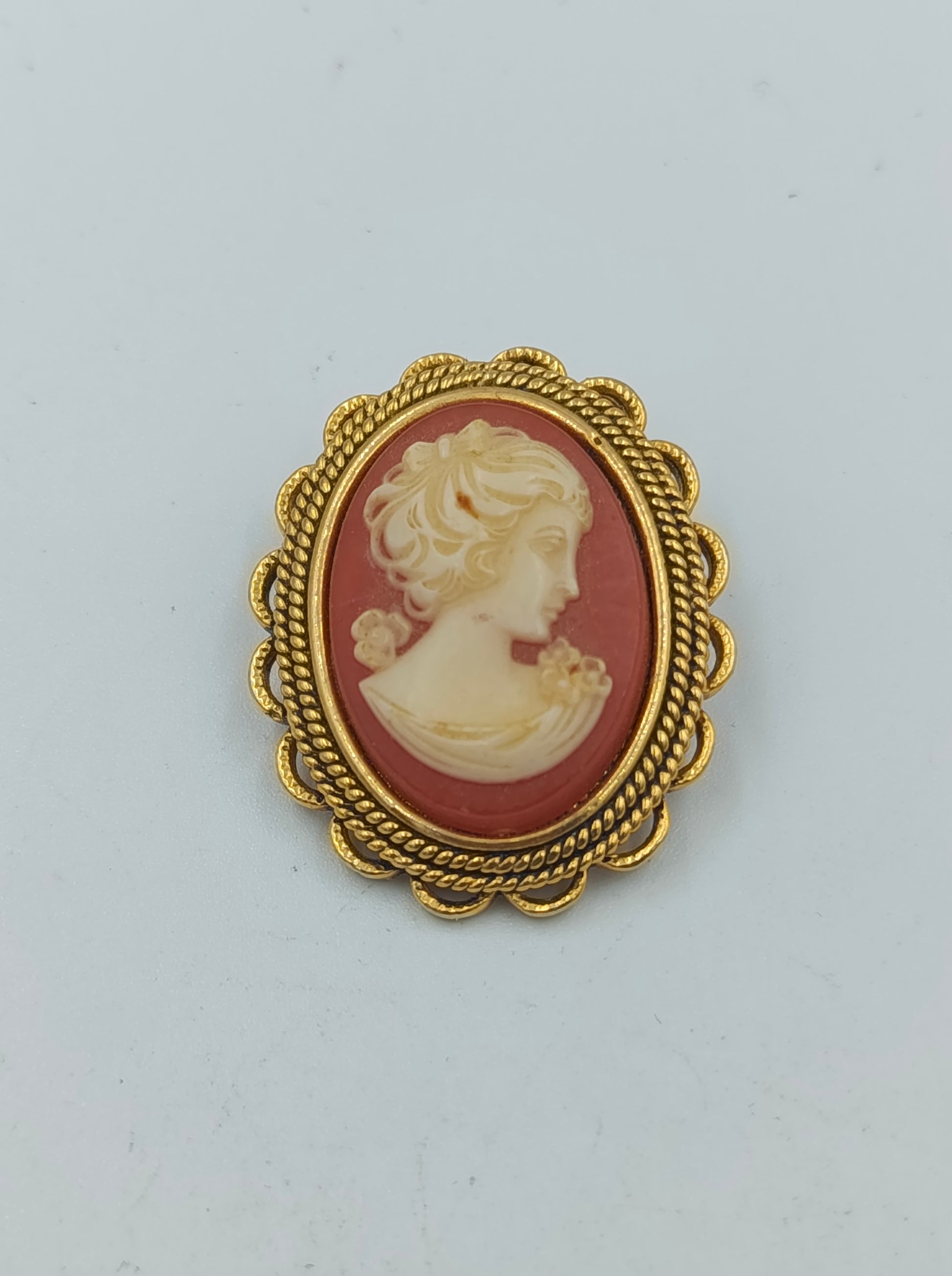 Vintage Brosche Kamee Dame goldfarben oval klassisch