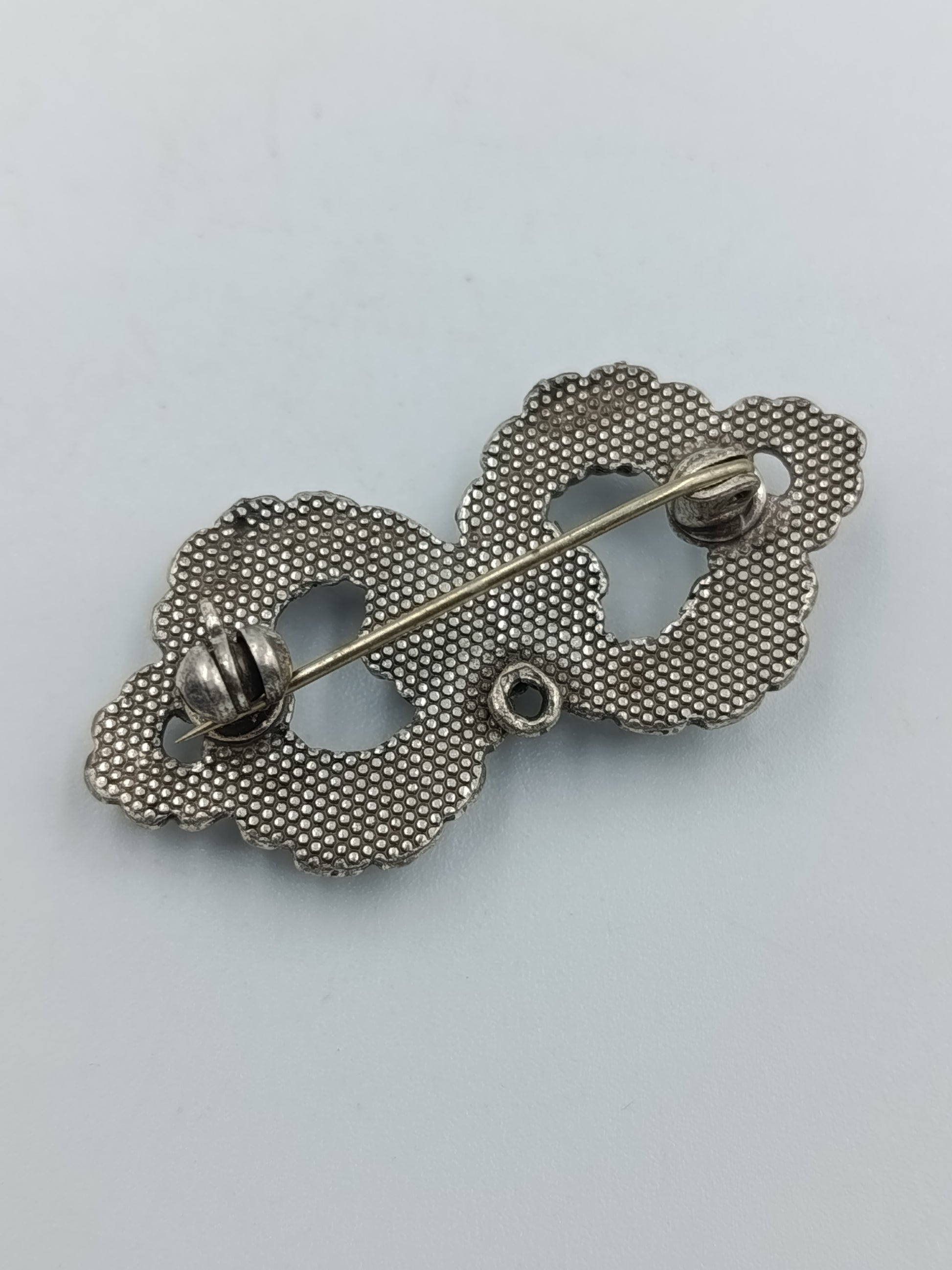 Dank ihres detailreichen Designs ist sie ein echter Blickfang und eignet sich ideal als Ergänzung zu klassischen Outfits oder als Sammlerstück für Liebhaber von nostalgischem Schmuck.