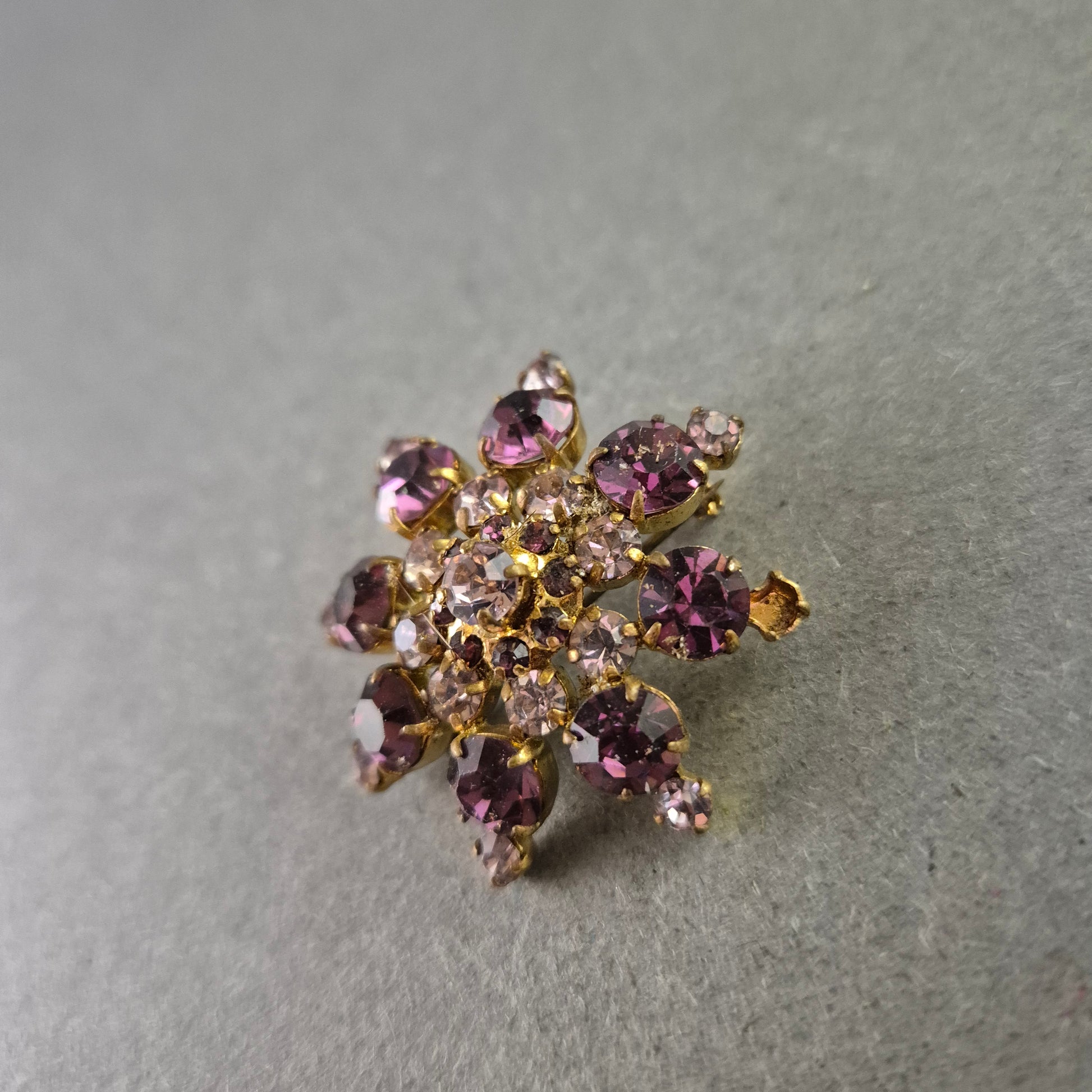 Vintage-Brosche mit lila Strasssteinen – Funkelnder Retro-Schmuck