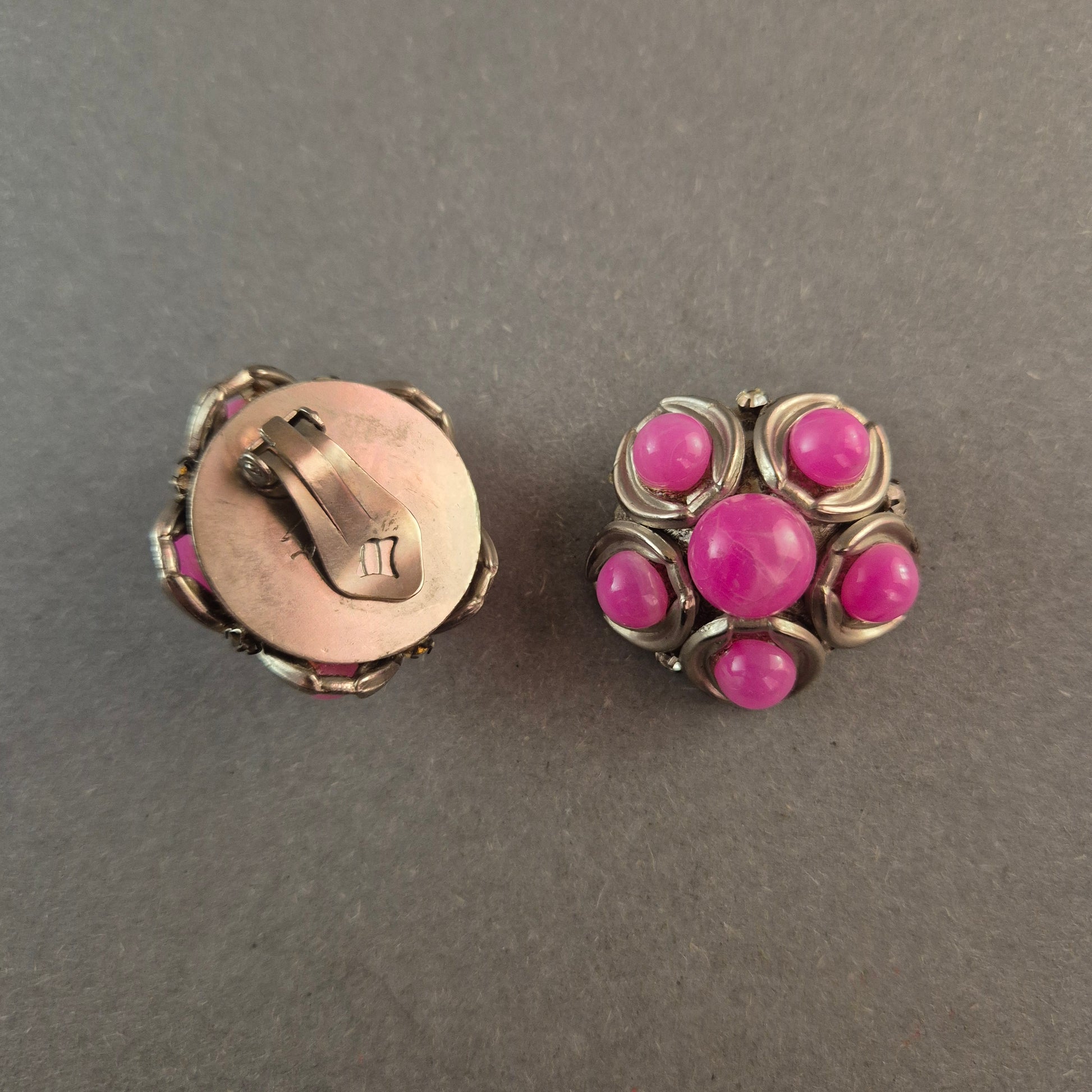Vintage-Clip-Ohrringe von Sonia – Silberfarben mit pinken Cabochons