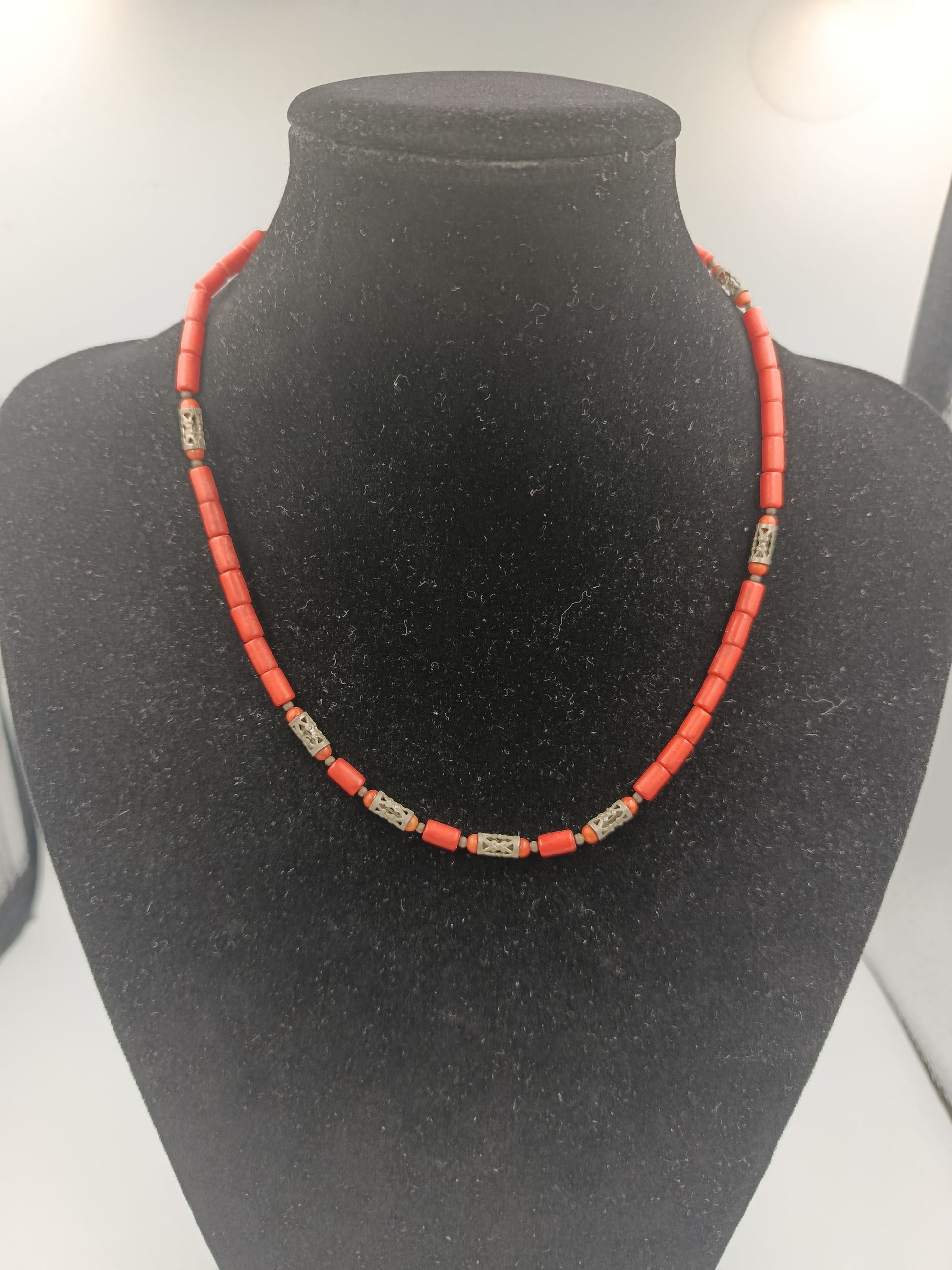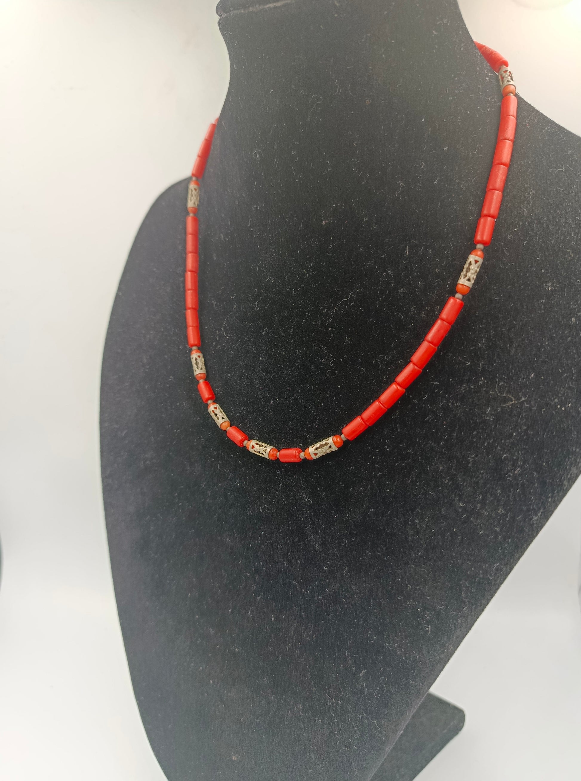Vintage-Collier mit roter Koralle und filigranen Silber-Elementen