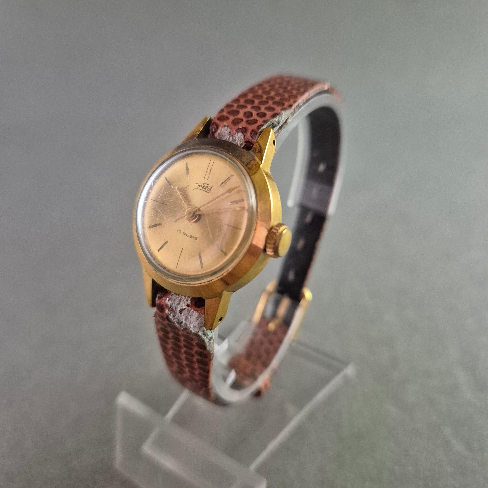 Vintage Damen Uhr ZARIA 17 Rubis mit Gold und Krokoband