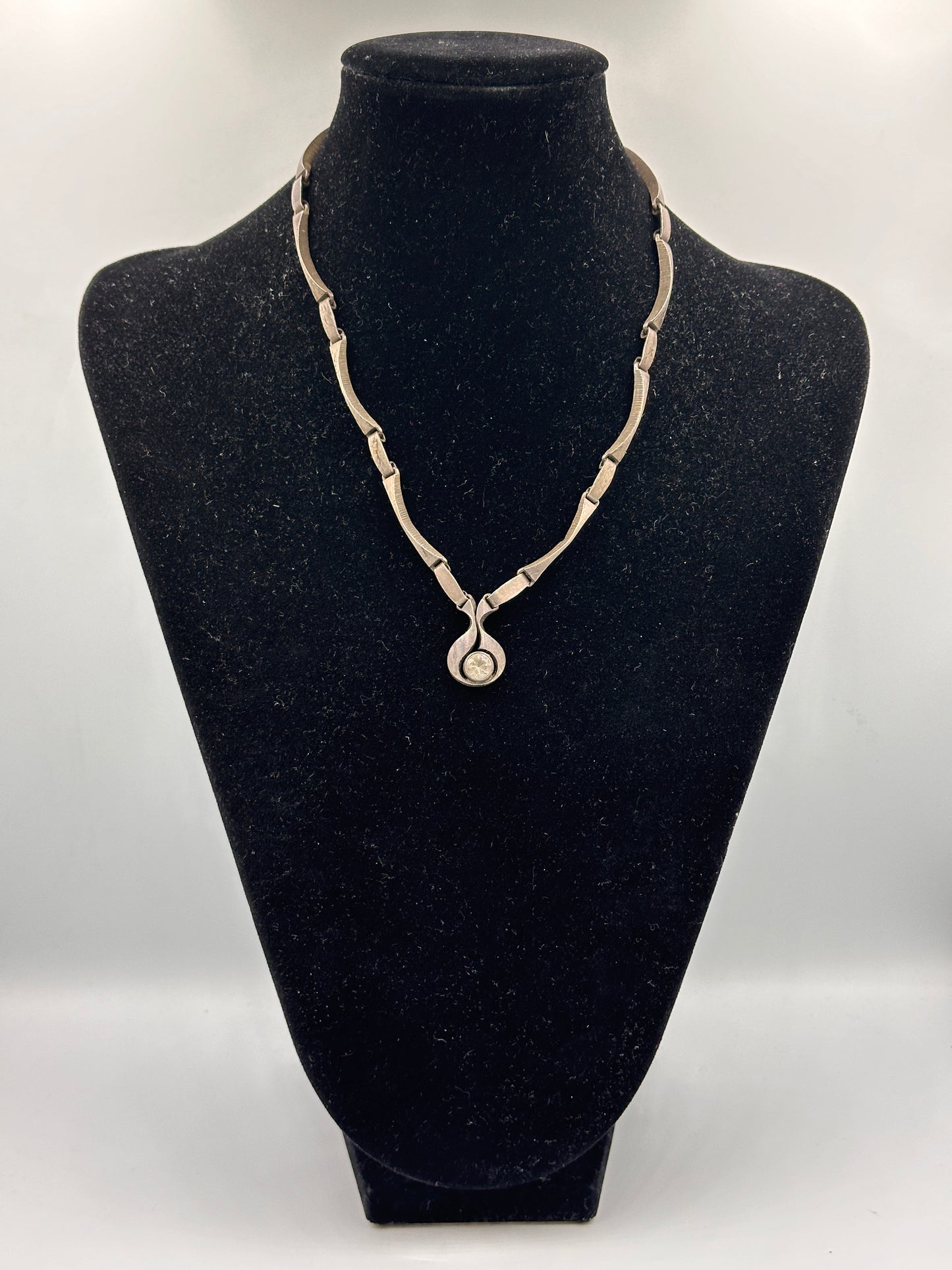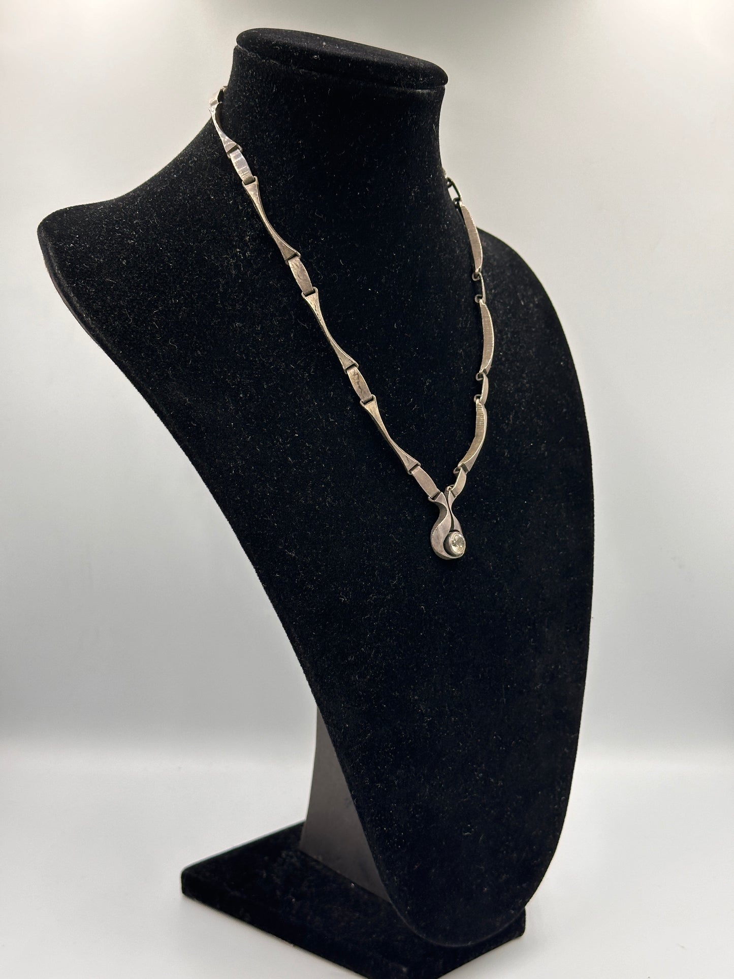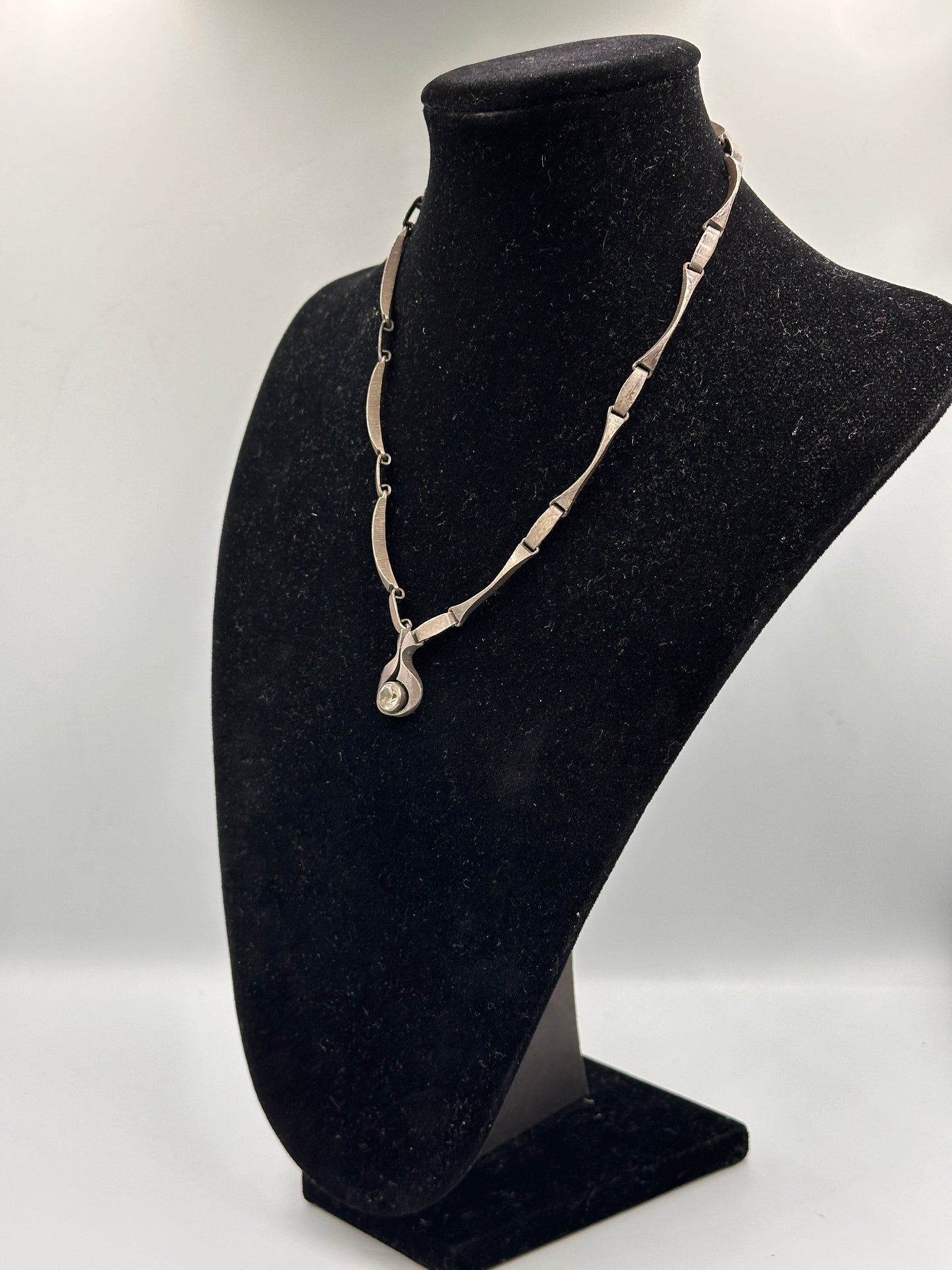 Vintage Designer Silber 925 Halskette mit Glaskristall Anhänger