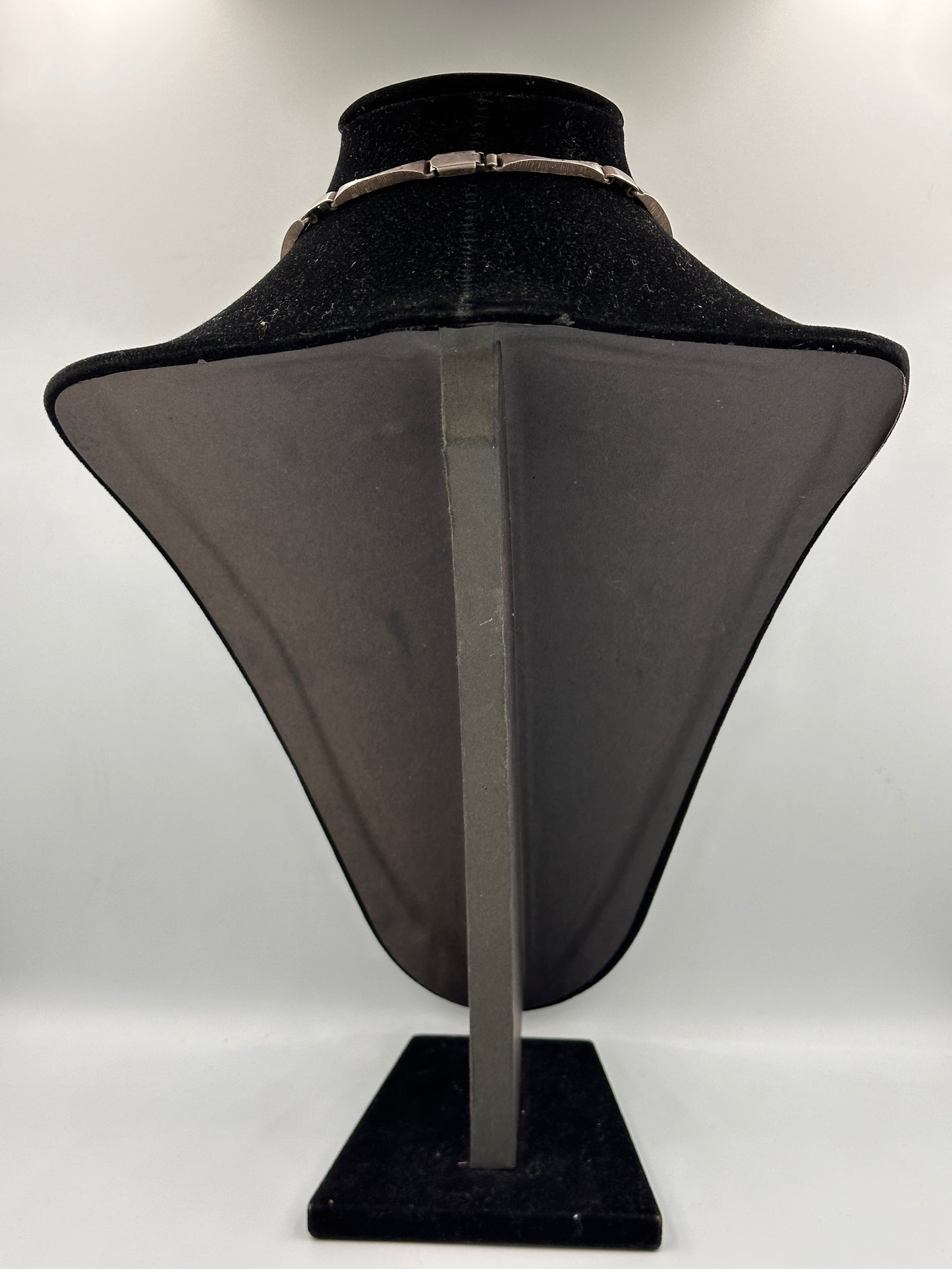 Diese elegante Vintage-Halskette aus 925er Silber besticht mit einem kunstvollen Glaskristall-Anhänger. Sie ist ein wahres Schmuckstück für Liebhaberinnen klassischer Eleganz.