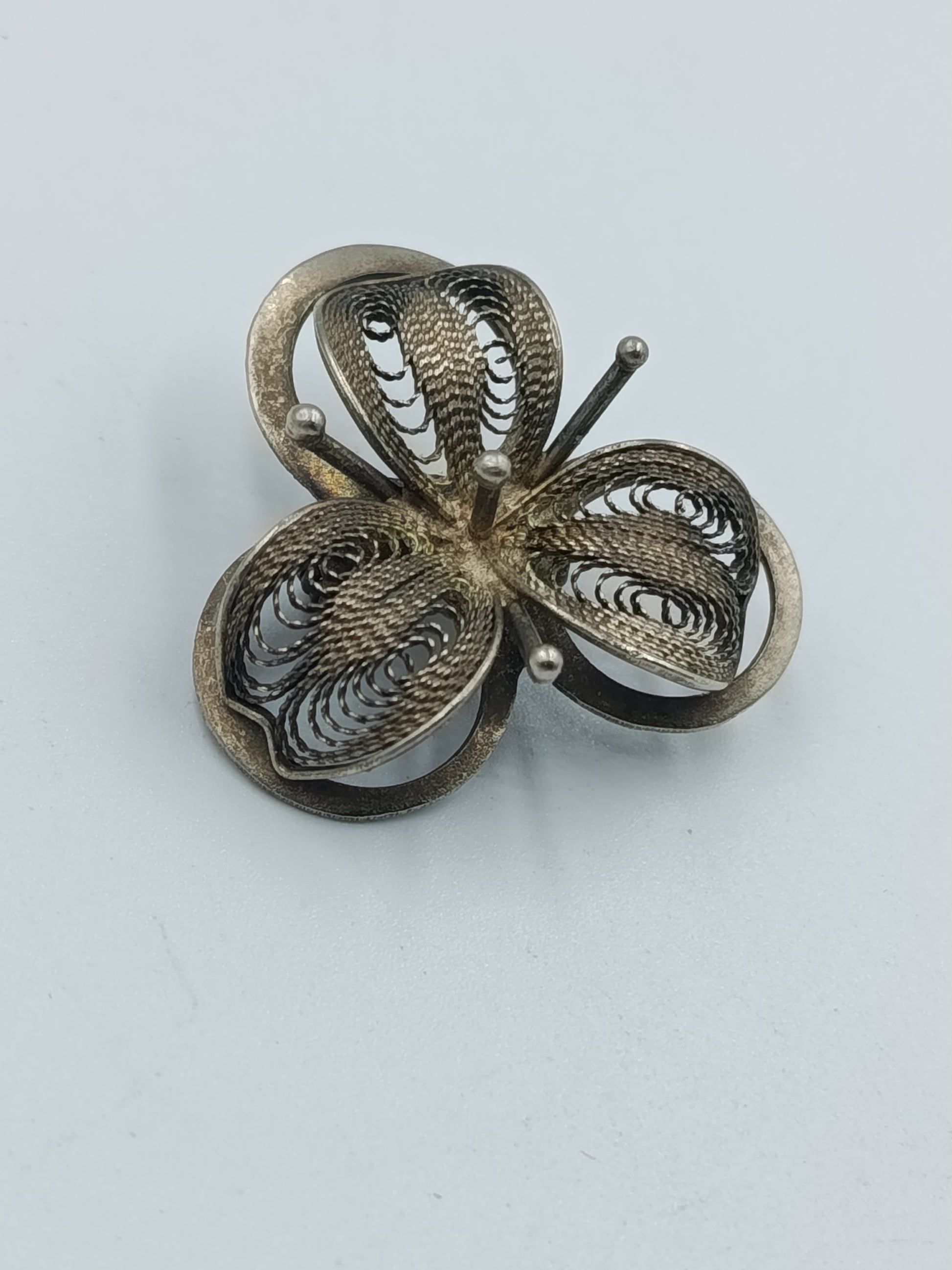 Vintage Filigran-Schmetterlingsbrosche aus Silber