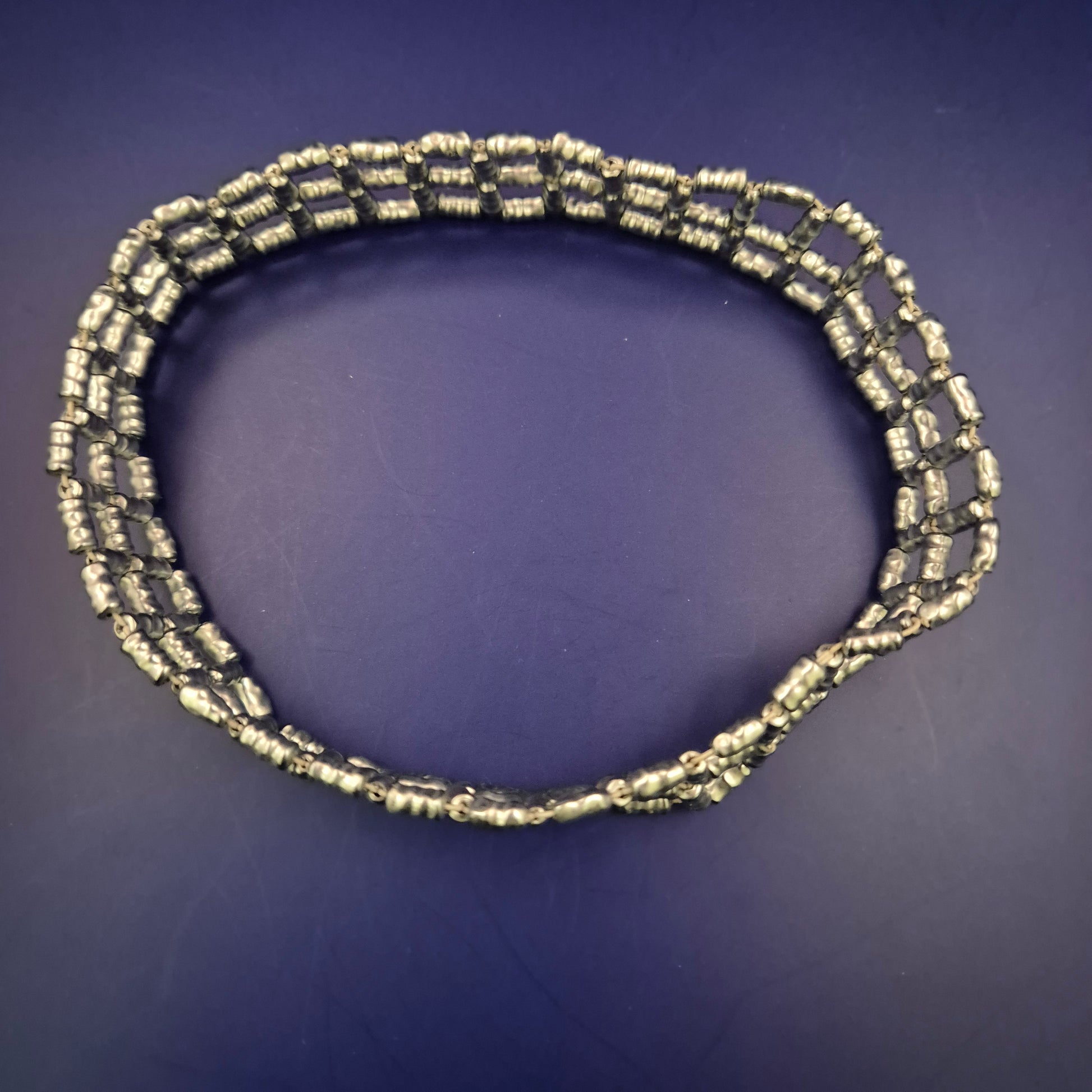 Vintage Glasperlen Collier – Silberfarbenes Netzdesign