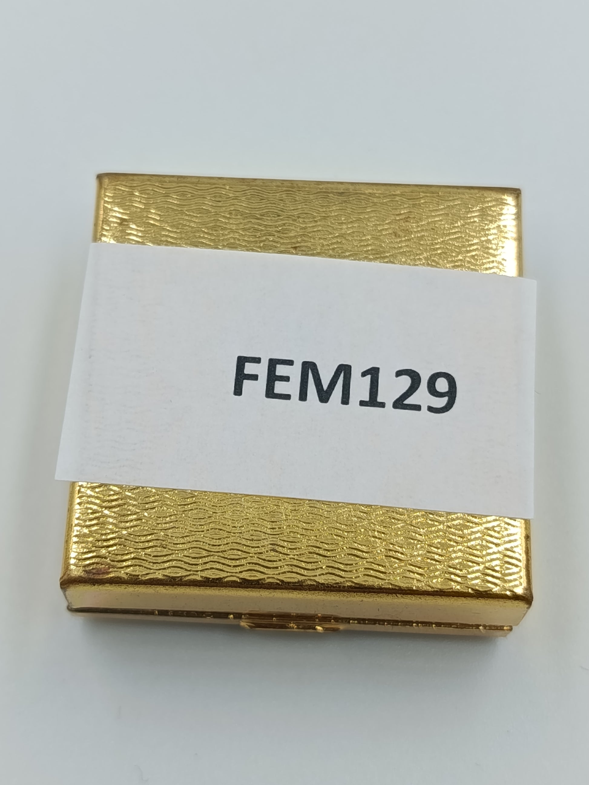 Elegante, quadratische Puderdose aus Metall mit goldfarbener Oberfläche und fein gearbeiteter Rosen-Stickerei auf schwarzem Stoffdeckel. Ein wunderschönes Sammlerstück oder dekoratives Accessoire, das den Charme vergangener Zeiten widerspiegelt.