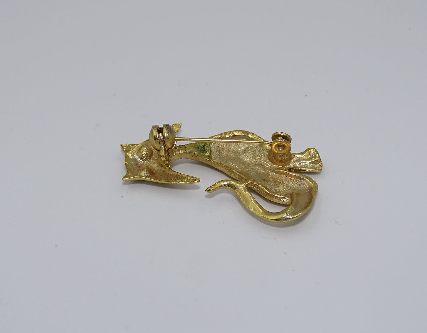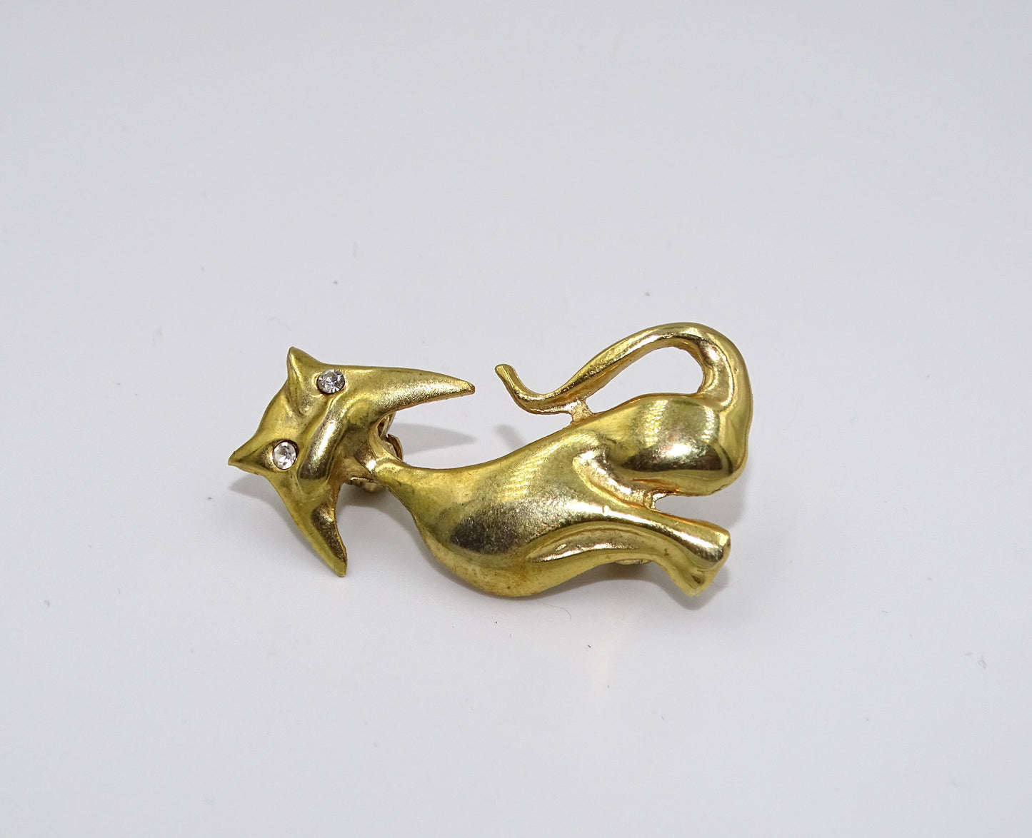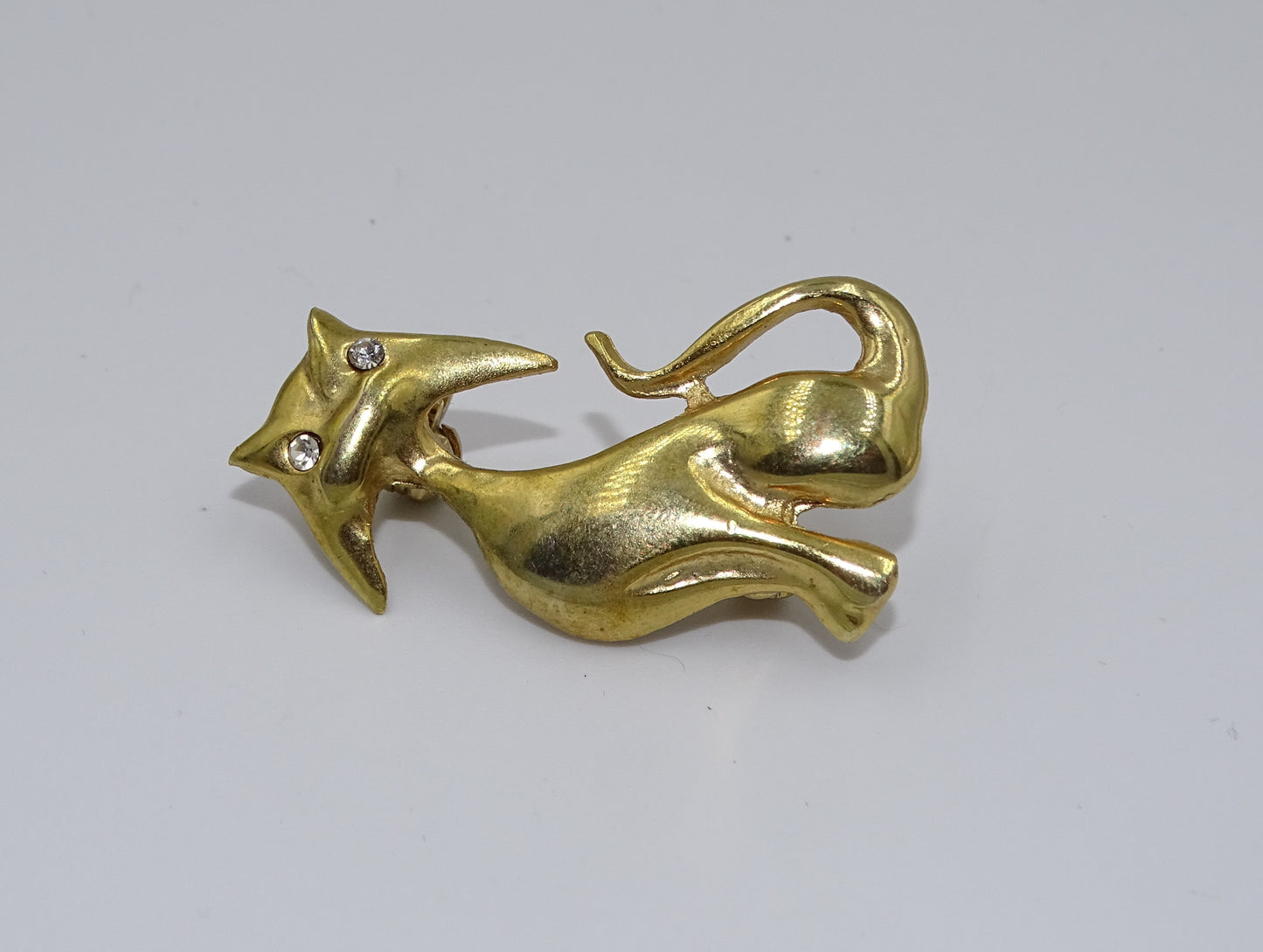 • 1 x Vintage Goldfarbige Zirkonia-Steine Katzenform Brosche