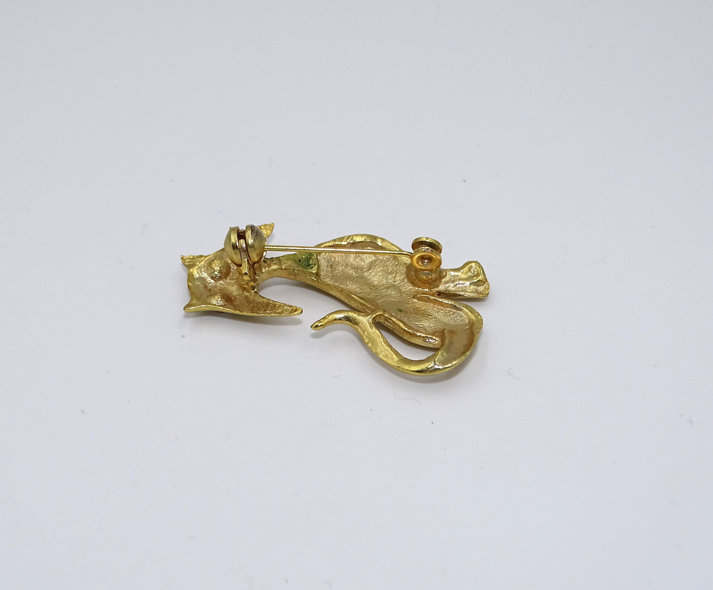 Vintage Goldfarbige Zirkonia-Steine Katzenform Brosche
