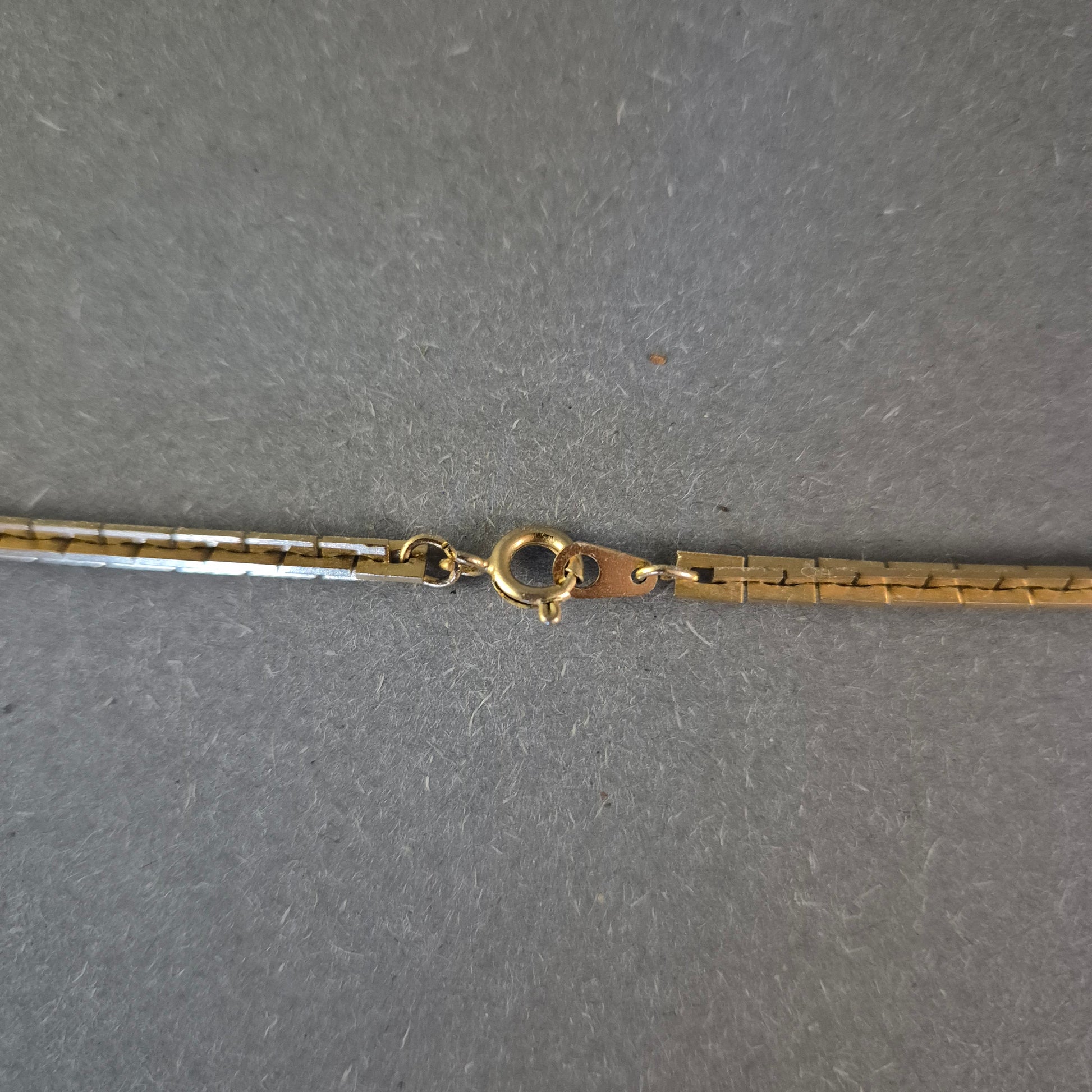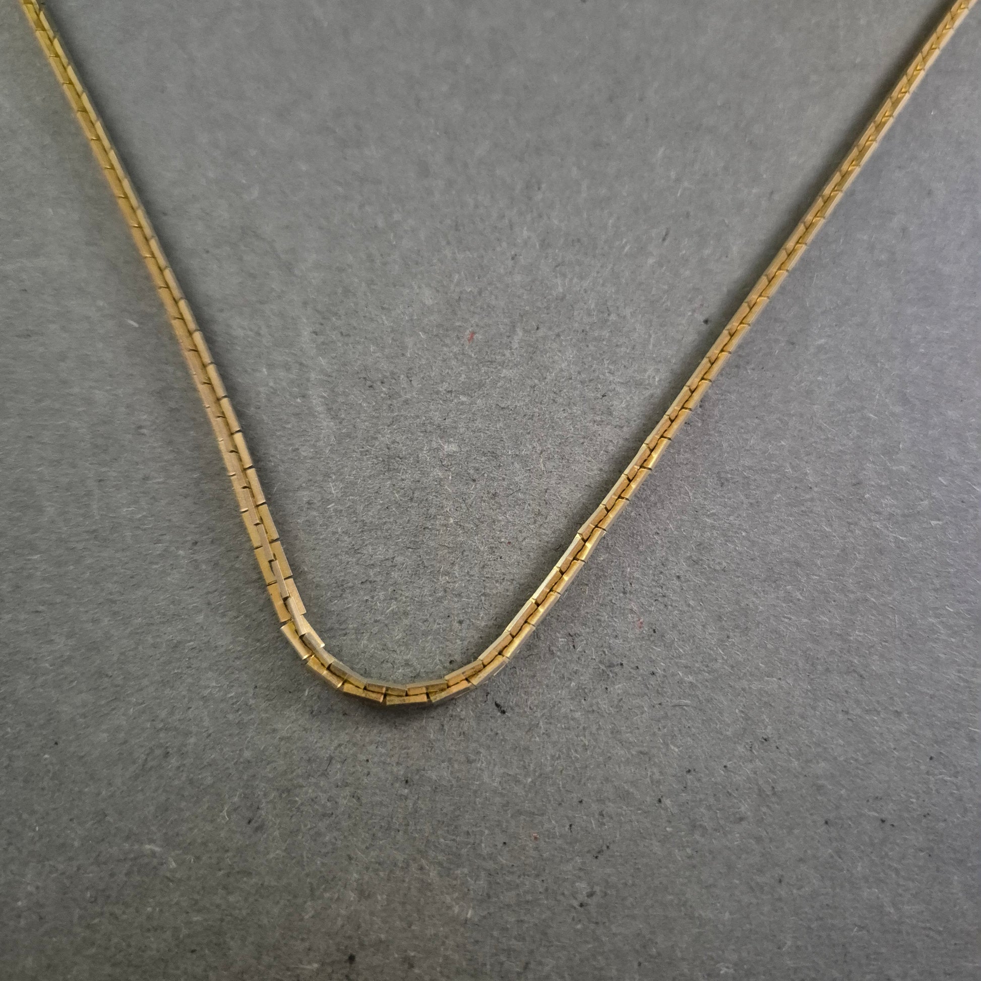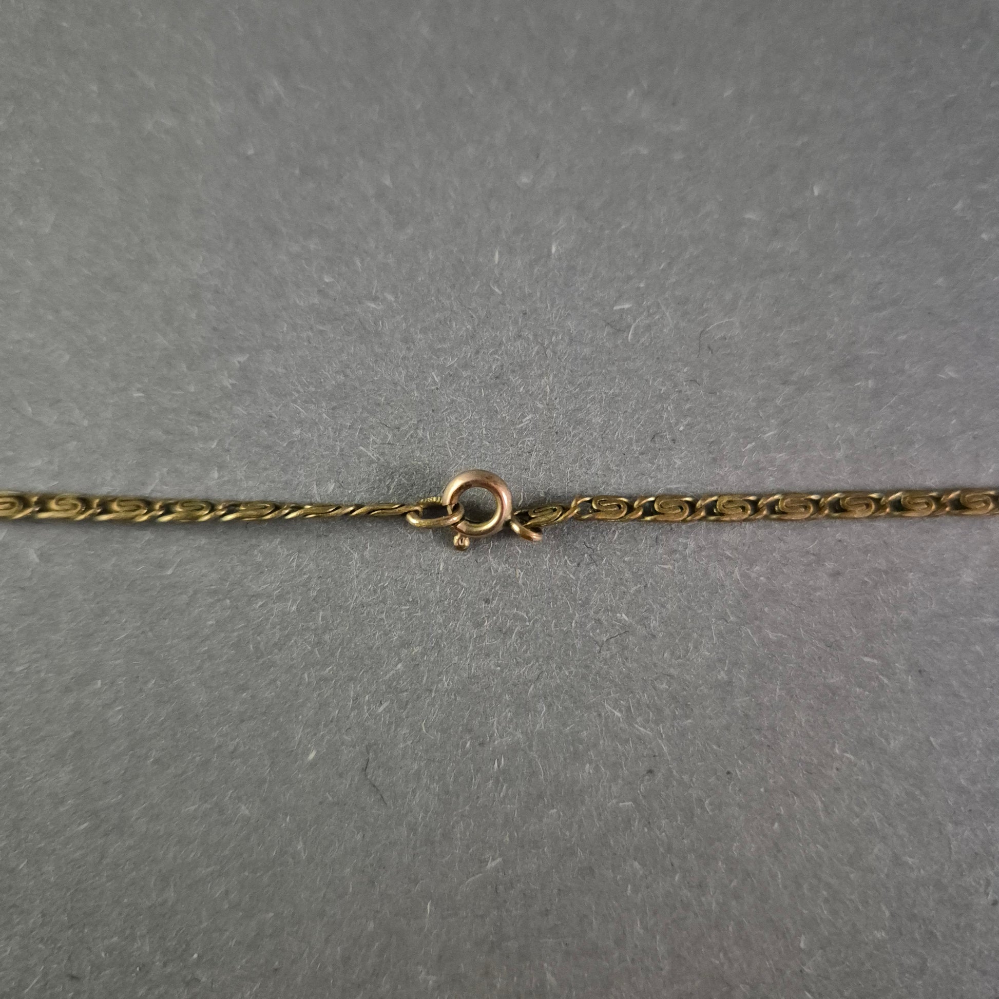 Diese zarte Vintage-Halskette besticht durch ihr feines Gliederdesign in vergoldeter Ausführung. Die schlichte Eleganz der Kette macht sie zu einem vielseitigen Schmuckstück, das sowohl solo als auch in Kombination mit einem Anhänger getragen werden kann. Ihr dezenter Glanz sorgt für einen stilvollen Akzent zu jedem Outfit – perfekt für Alltag und besondere Anlässe.