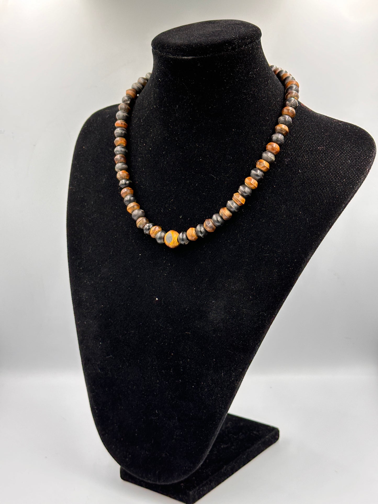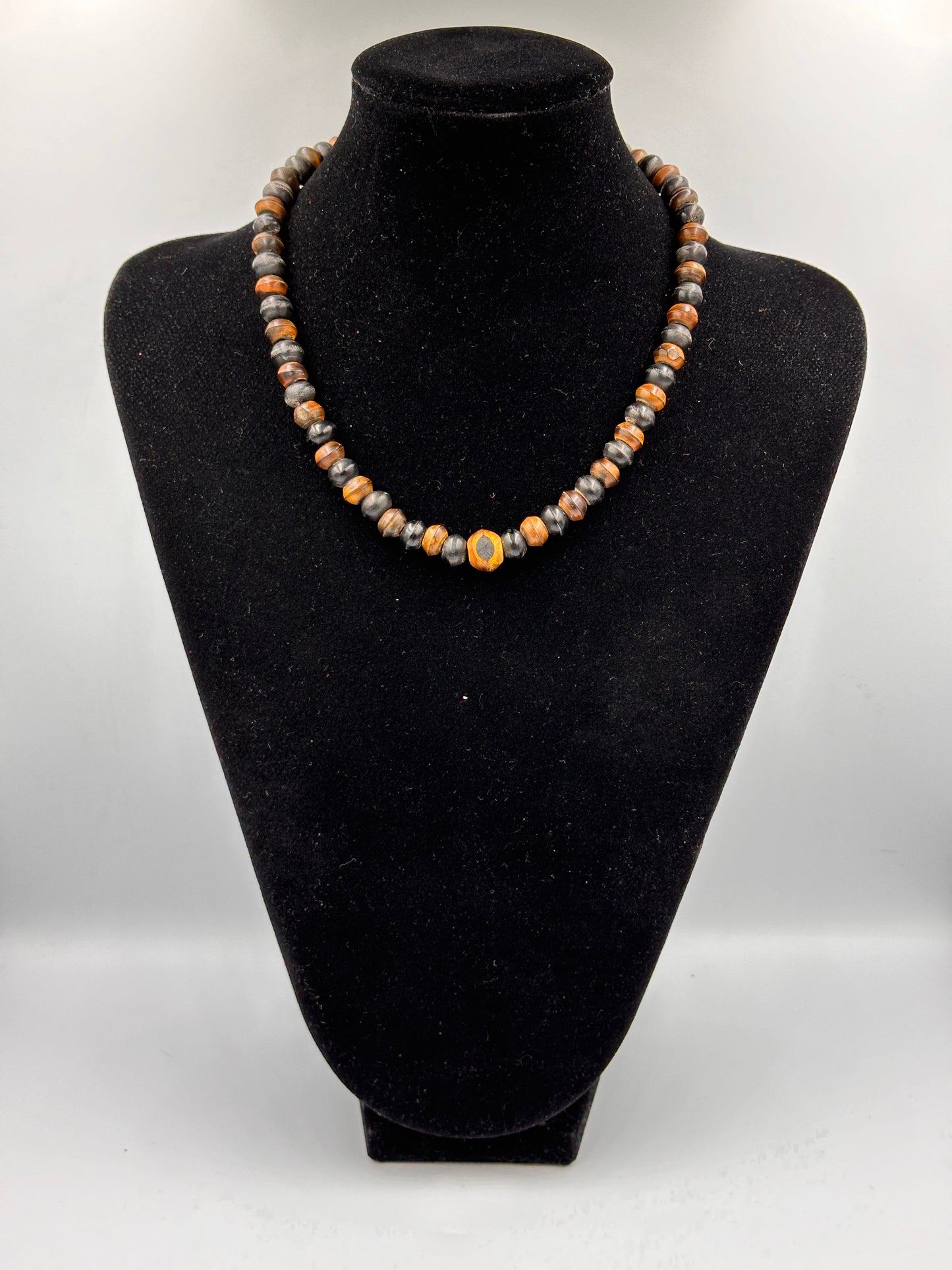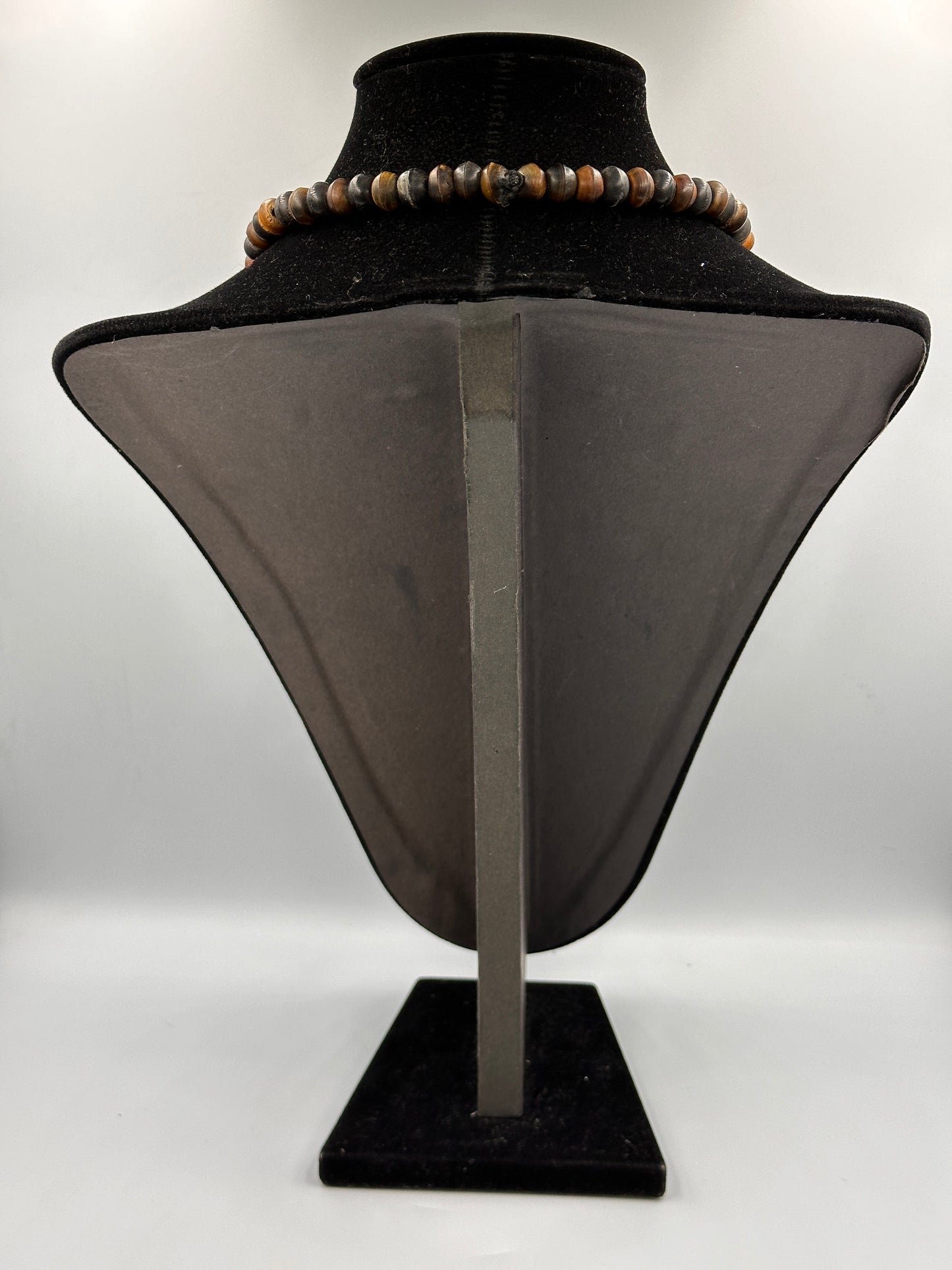 Diese stilvolle Vintage Halskette aus Holz ist ein echtes Schmuckstück für Liebhaber von Retro-Designs. Das einzigartige, natürliche Material verleiht der Kette einen rustikalen Charme, der jedes Outfit aufwertet. Mit ihrem zeitlosen Design ist sie sowohl für den Alltag als auch für besondere Anlässe geeignet. Die Kette ist handgefertigt und besticht durch ihre individuelle Maserung und warme Farbgebung.