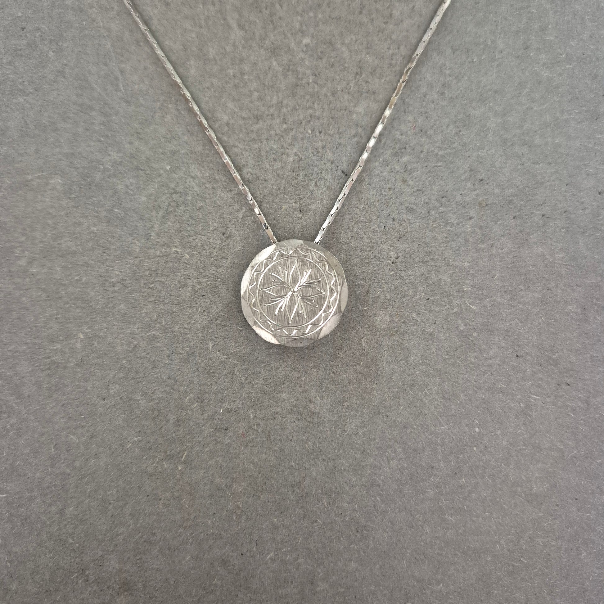 Vintage Kette mit rundem Anhänger – Graviertes Muster