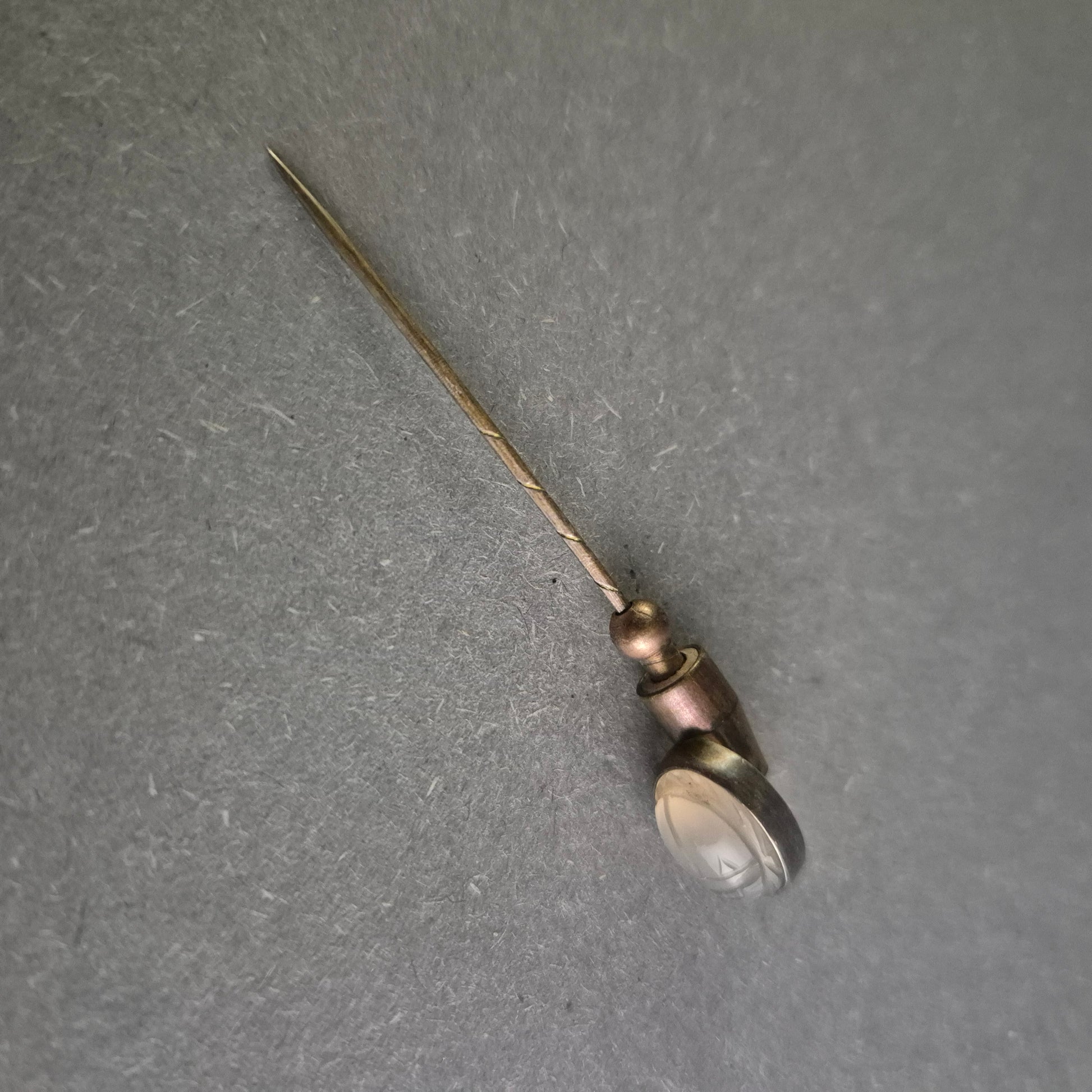 Diese klassische Vintage-Krawattennadel besticht durch ihr minimalistisches Design und eine feine Gravur auf der runden Kopfplatte. Gefertigt aus hochwertigem Silber, verleiht sie jedem Anzug einen eleganten und stilvollen Akzent. Die dezente Patina betont den nostalgischen Charme und macht die Nadel zu einem zeitlosen Accessoire für besondere Anlässe oder den stilvollen Alltag.