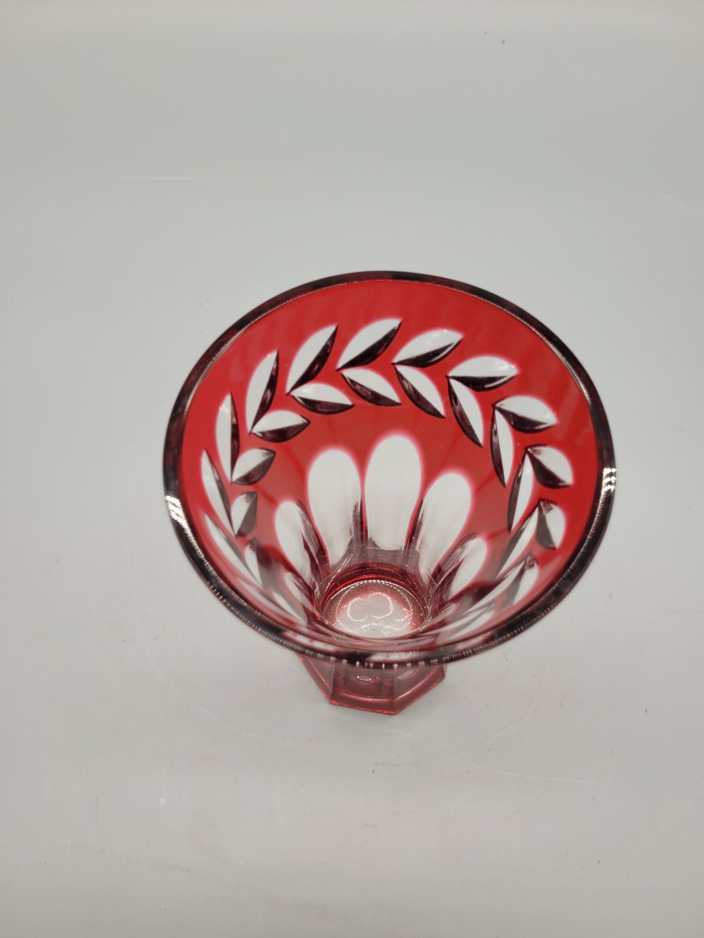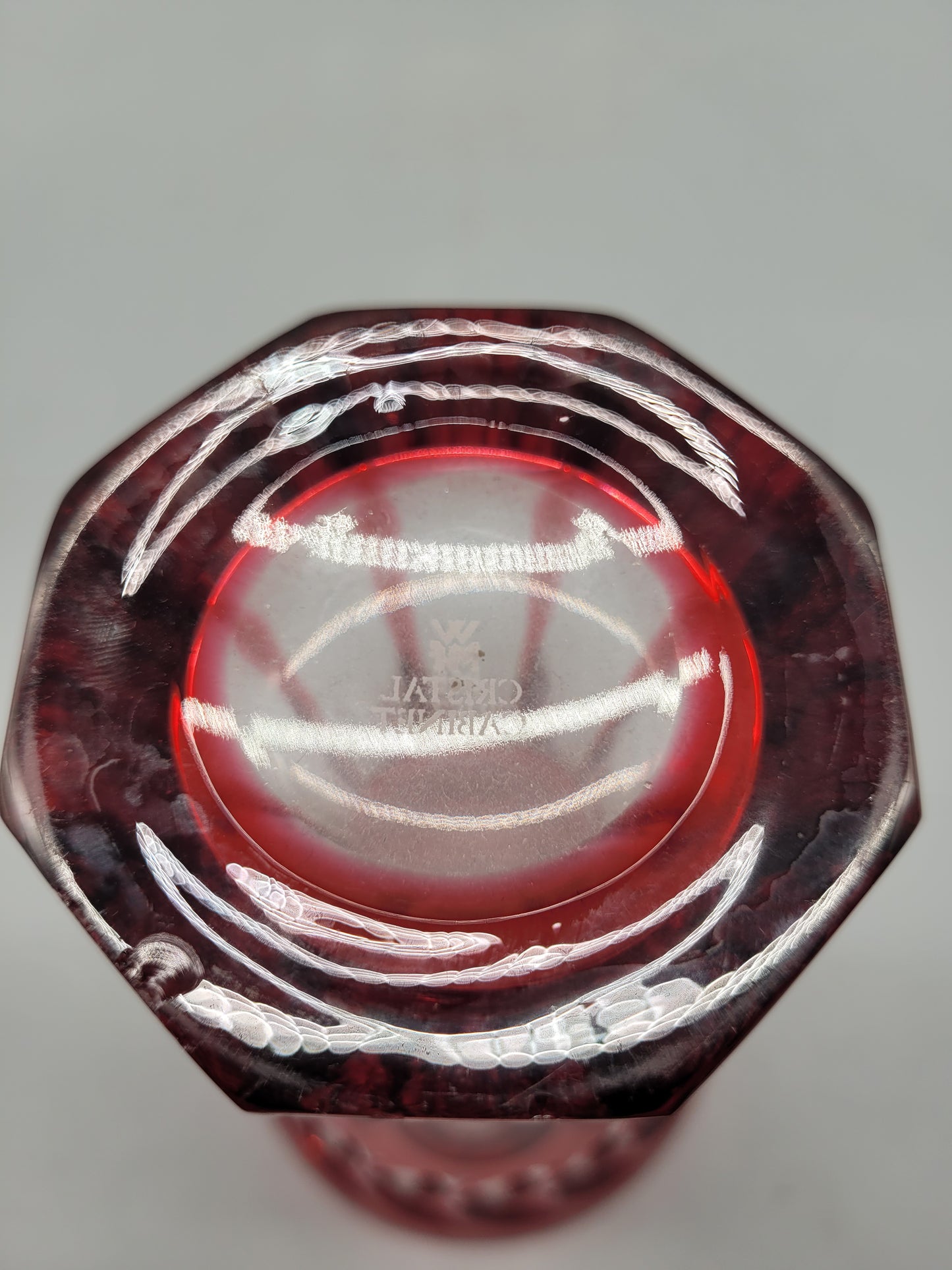 Diese exquisite Kristallvase von WMF aus der Cabinet-Serie vereint elegantes Weinrot mit transparenten Details. Die Vase besticht durch ihre hochwertige Verarbeitung und ihr klassisches Design, das den Charme vergangener Zeiten widerspiegelt. Perfekt geeignet für stilvolle Dekorationen, bringt sie einen Hauch von Vintage-Ästhetik in jeden Raum.