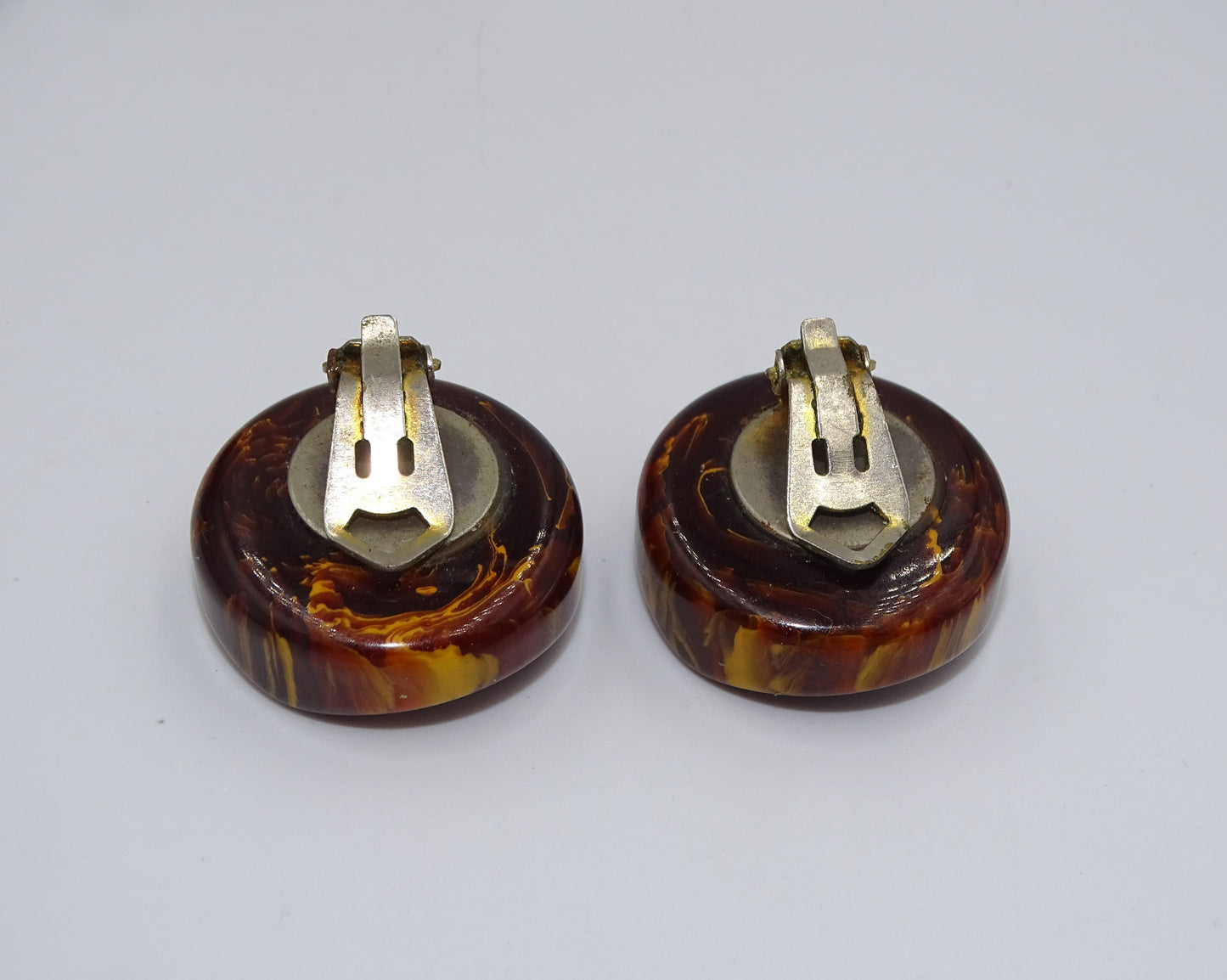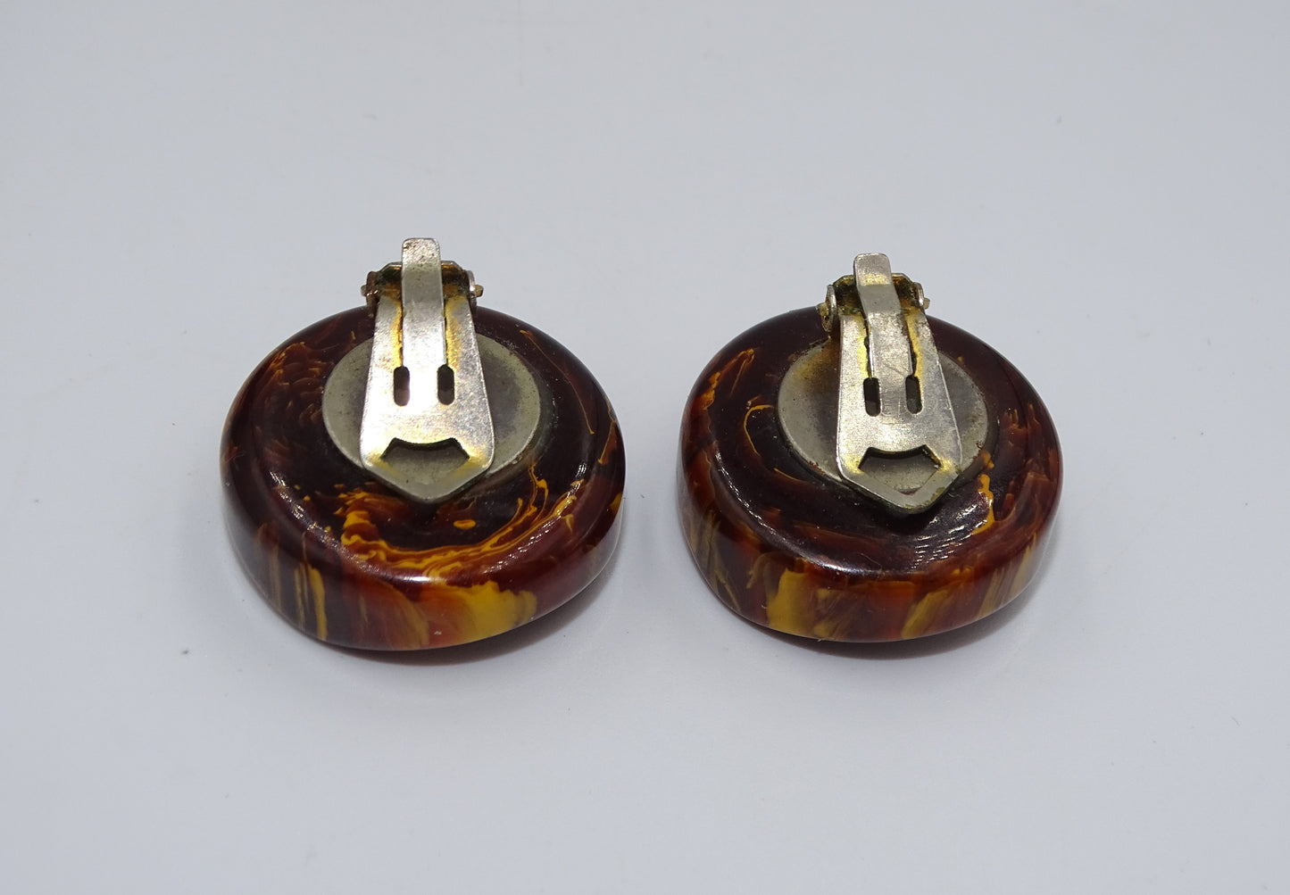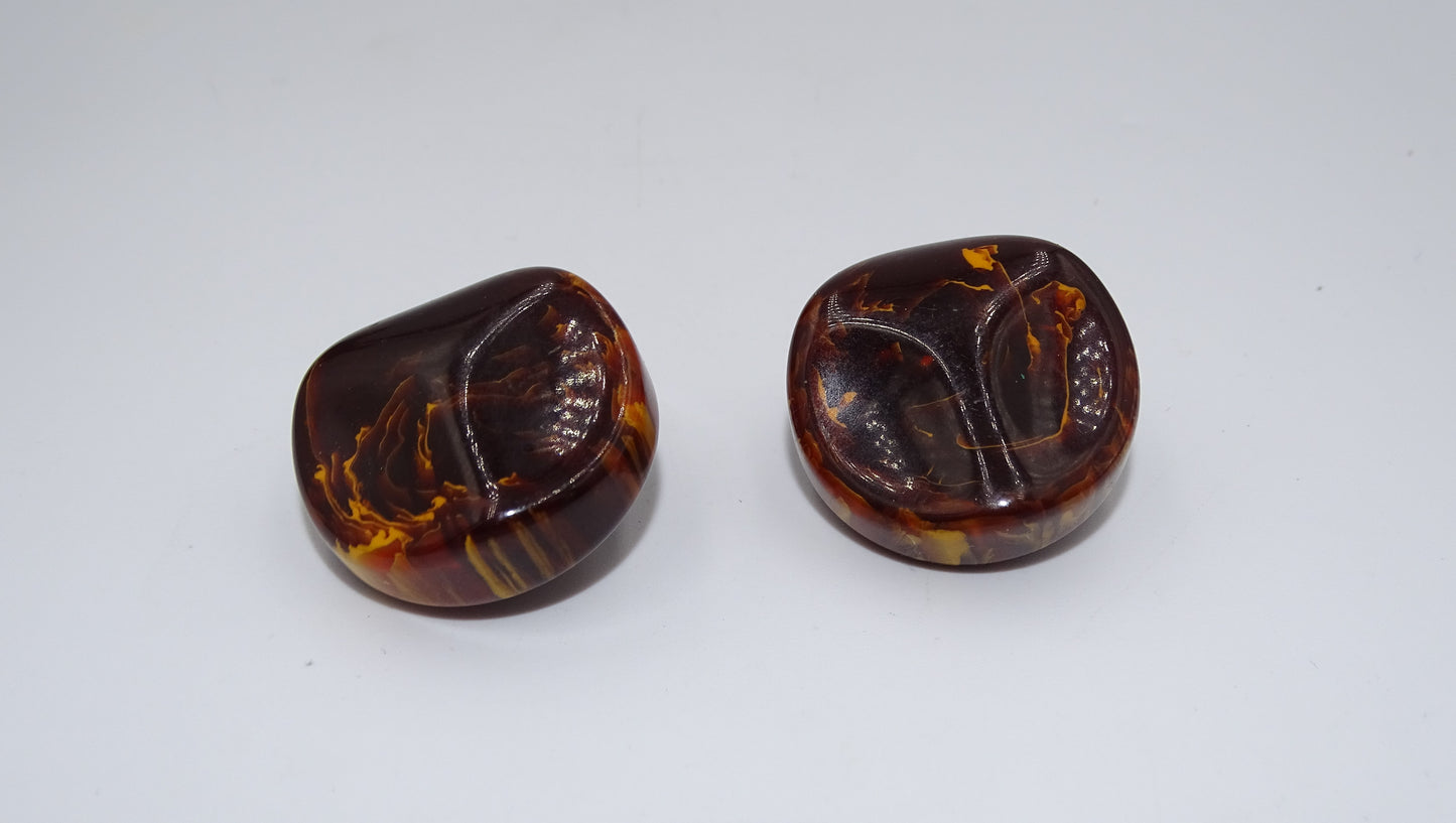 Vintage Kunststoff Ohrclips in Bernsteinoptik