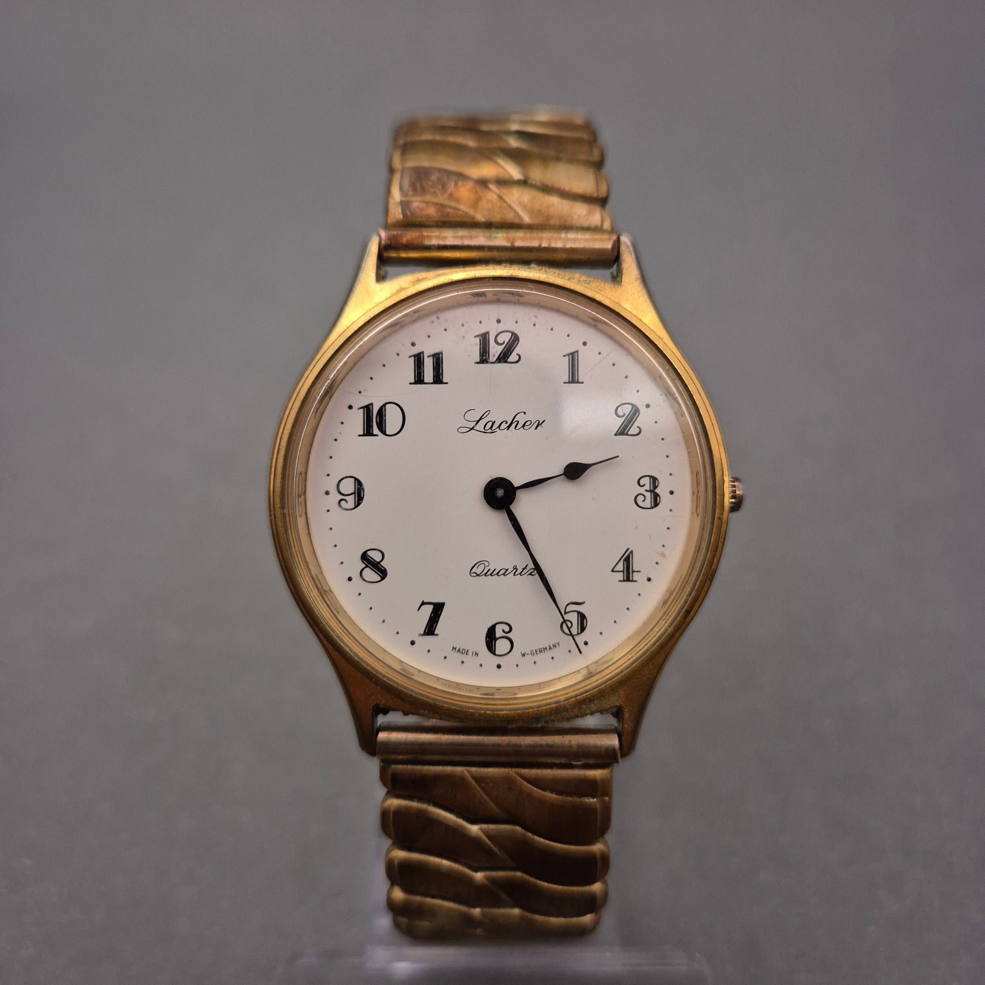Vintage Lacher Damen Uhr – Goldfarbenes Zugarmband & W-Germany