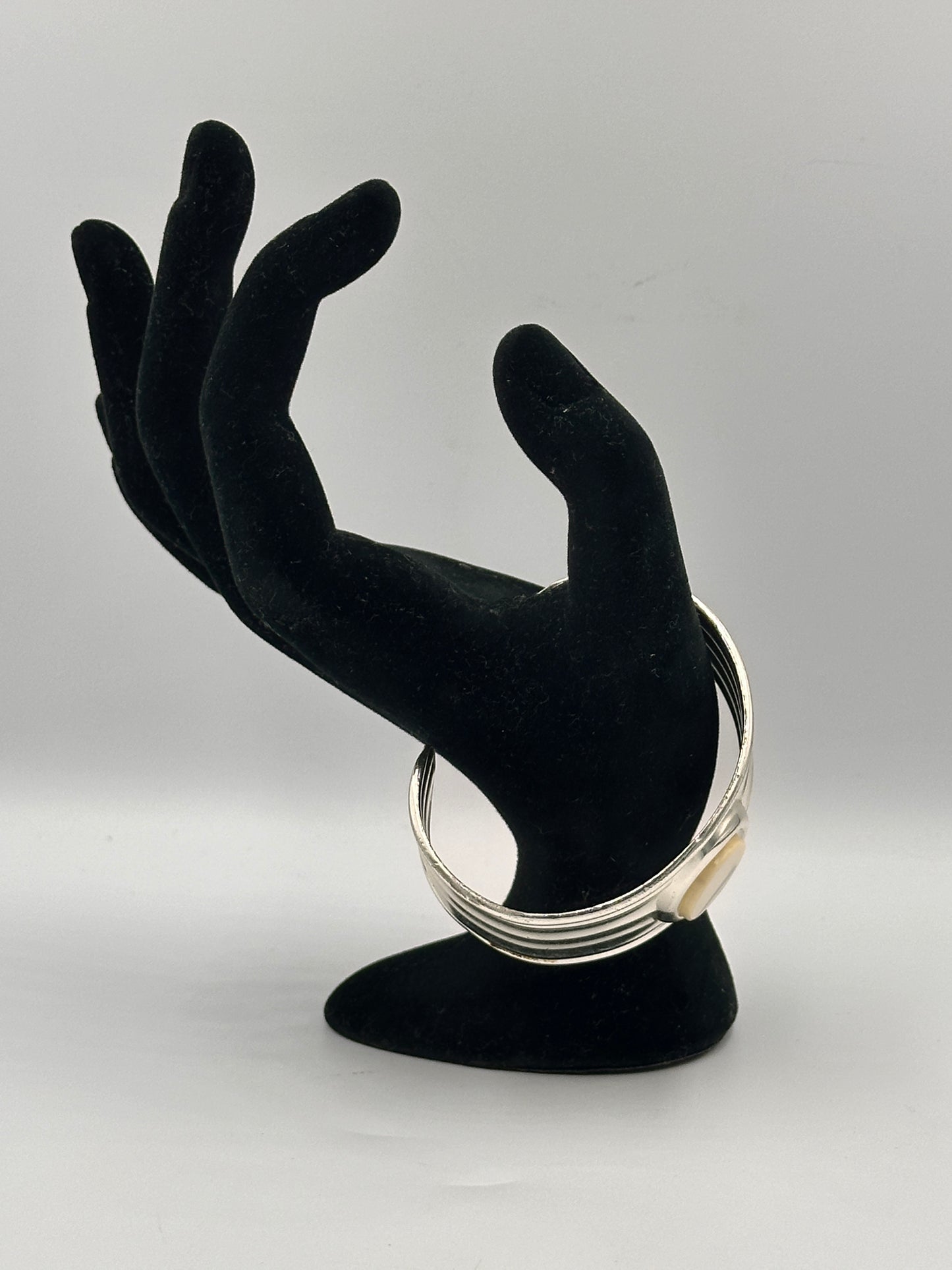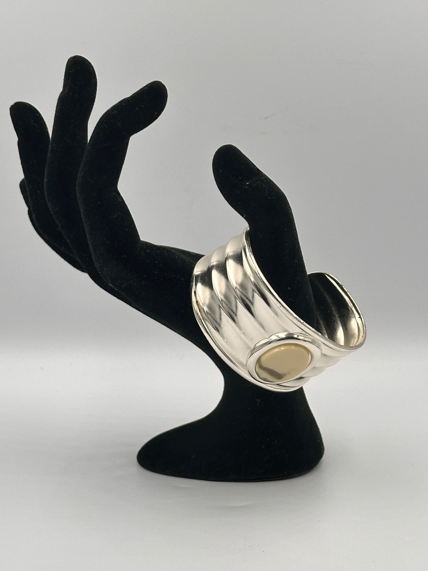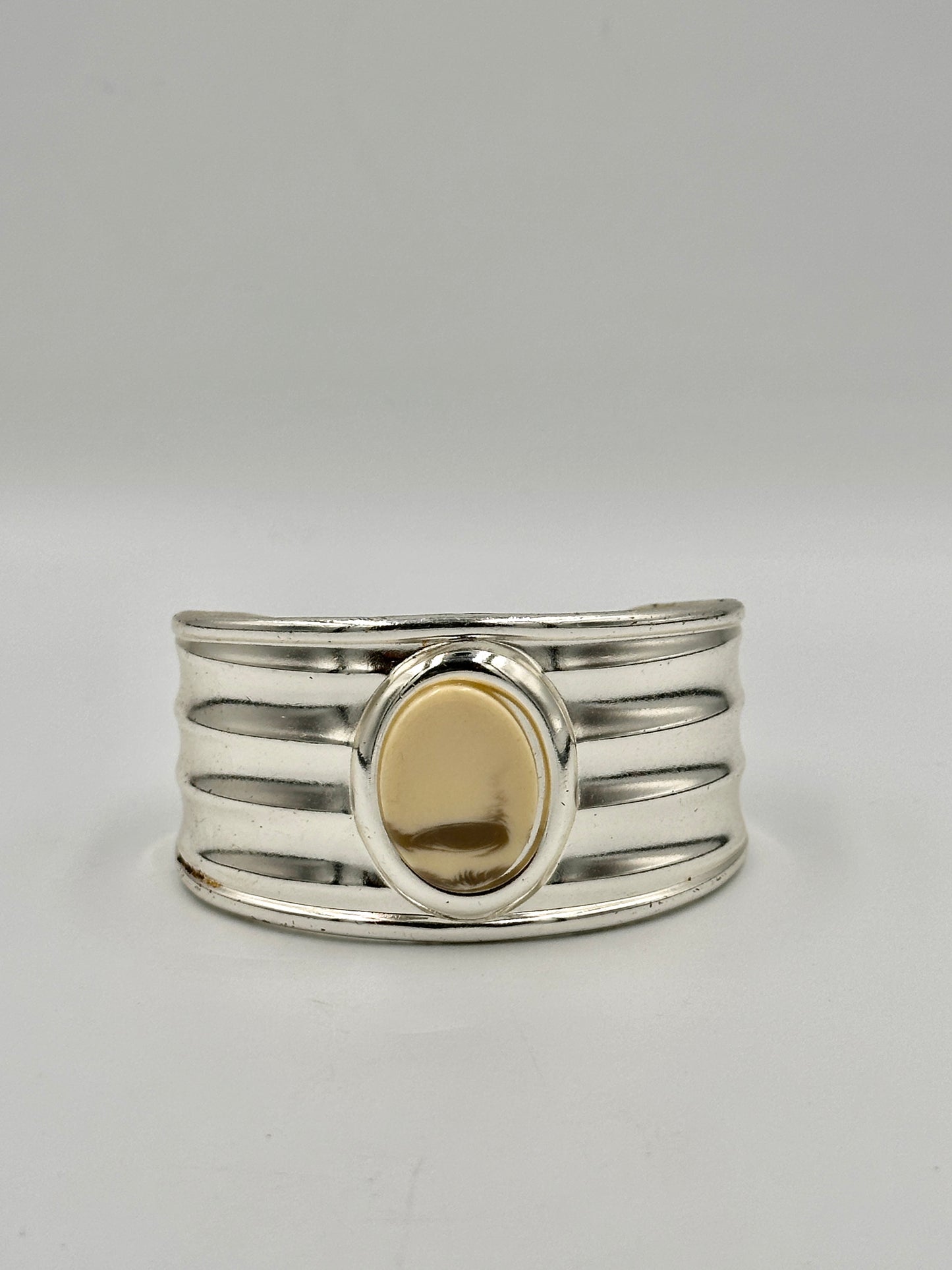 Vintage Manschettenarmband aus Edelstahl mit weißem Edelstein